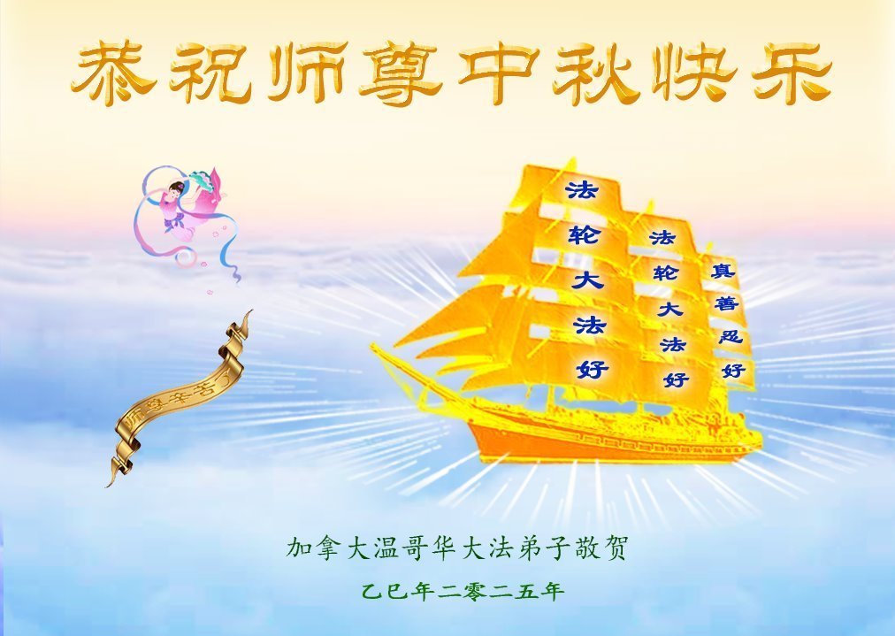 加拿大蒙特利爾、多倫多、渥太華、埃德蒙頓、卡爾加裏、溫哥華、魁北克、紅鹿市、愛德華王子島等地大法弟子恭祝師尊中秋好!