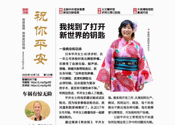 我鄰居85歲了,她在兩年前突發高血壓掉到地上,癱瘓了,在醫院裏大小便失禁,她幾乎絕望了。我教她敬念法輪大法好,她照做了,結果不久就康復了!