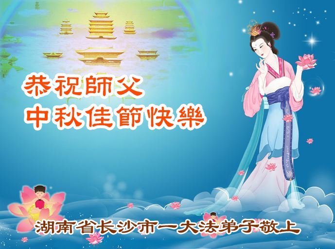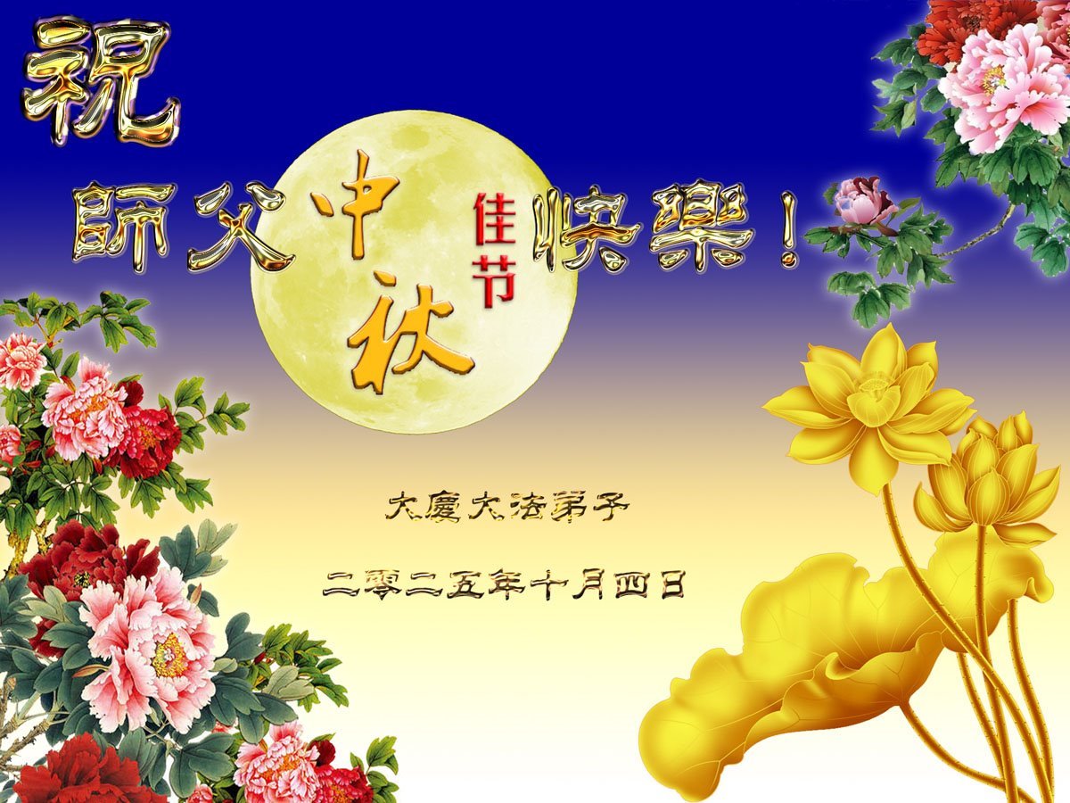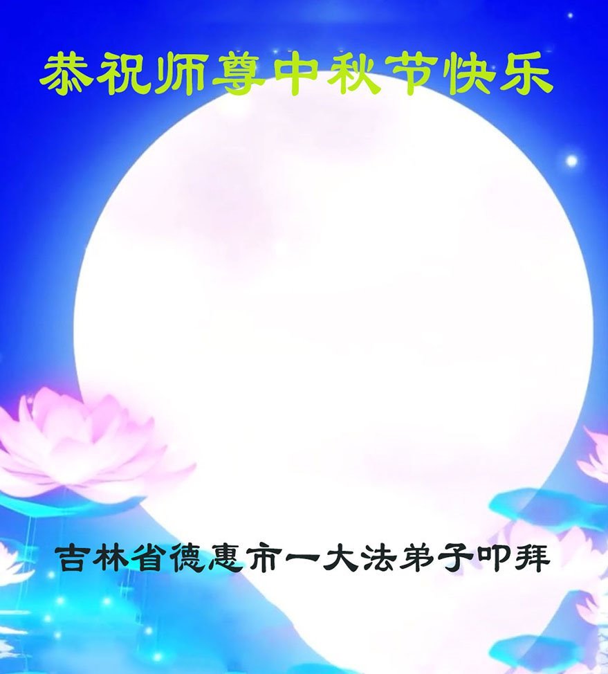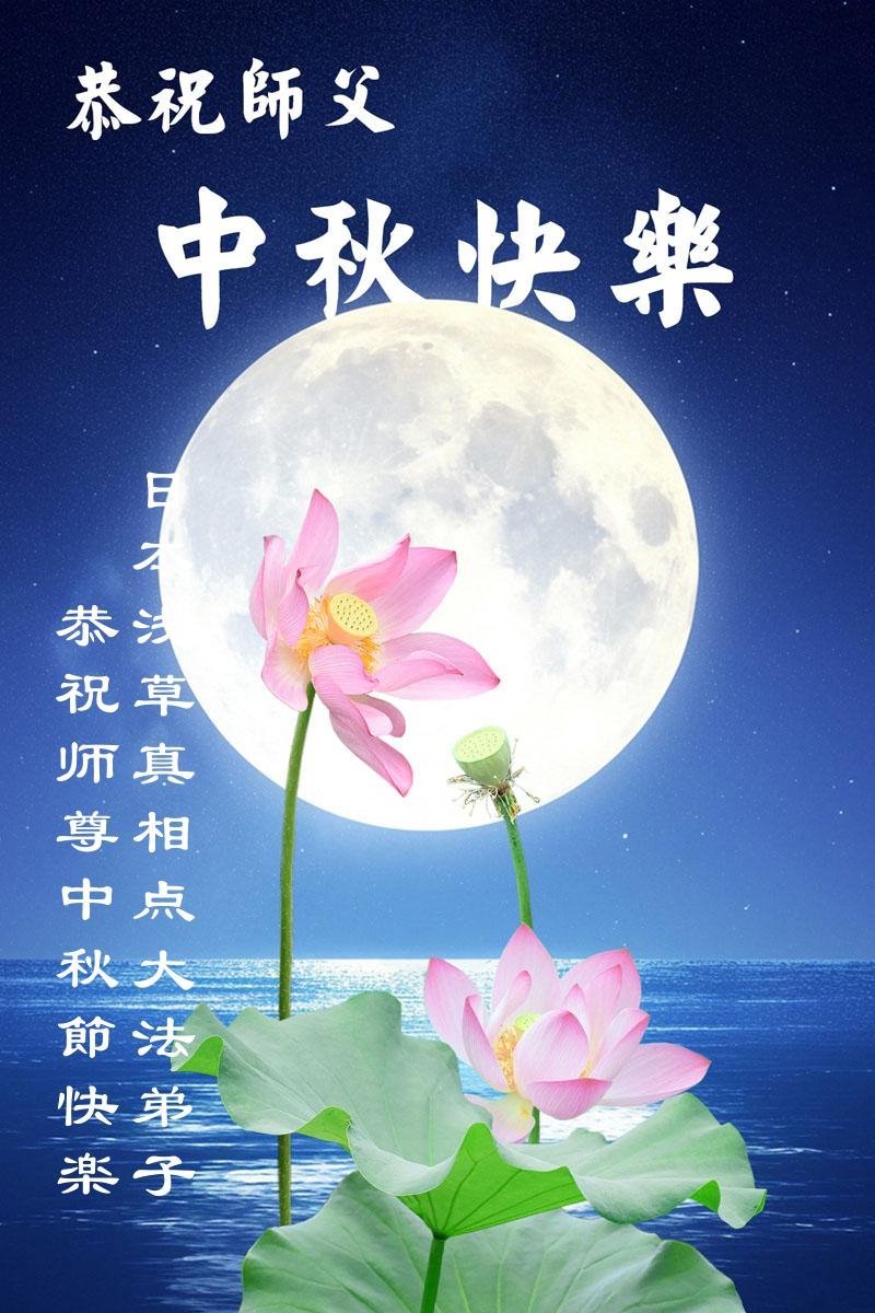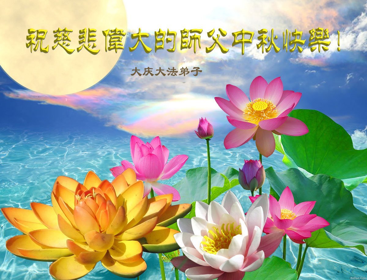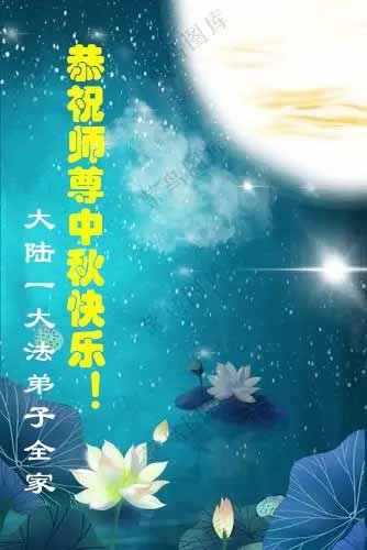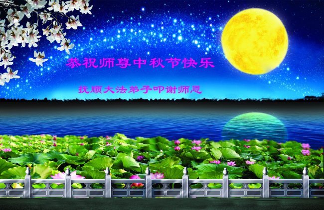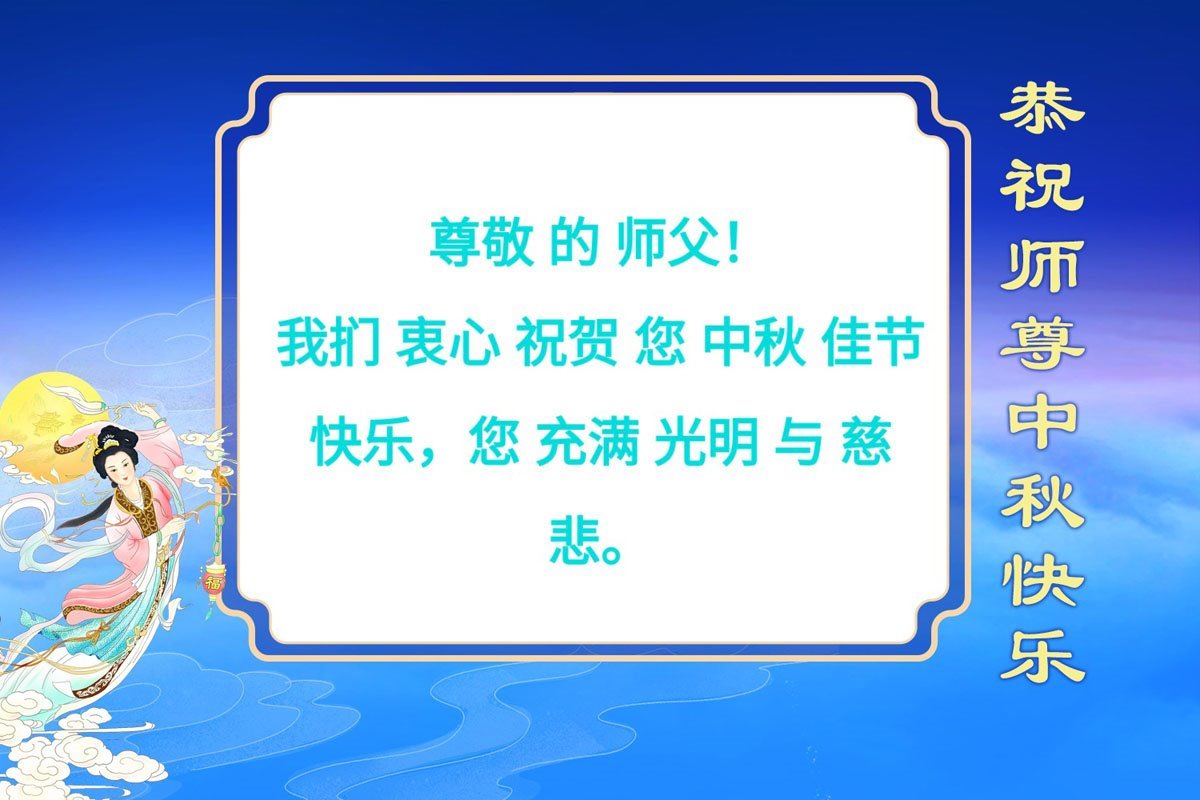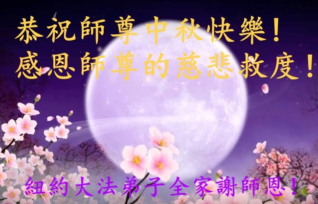 恭祝慈悲偉大的師父中秋節快樂!祝願全體大法弟子在修煉中堅守誓言,助師救度眾生,隨師父一起回歸真正的家園。(譯文)