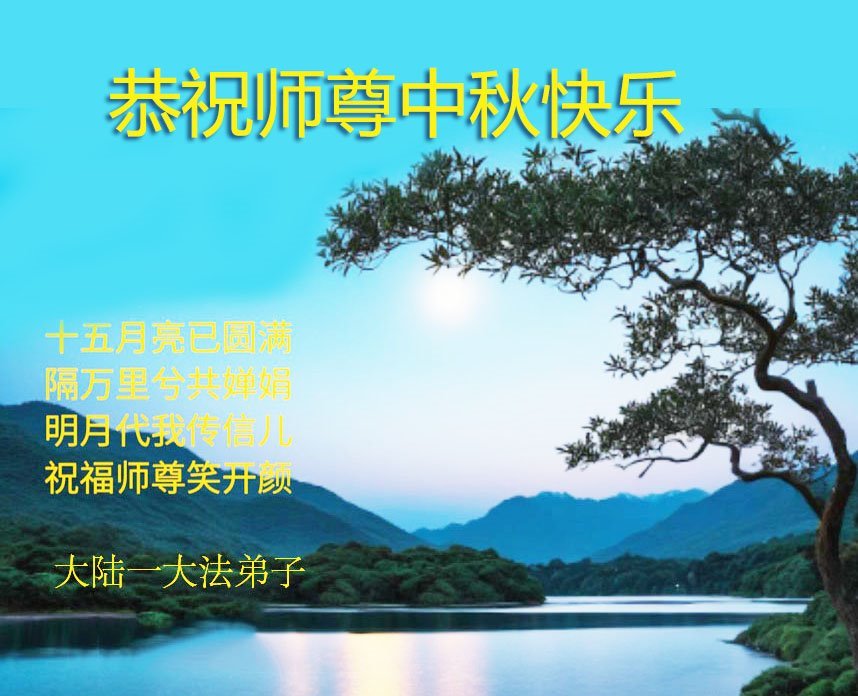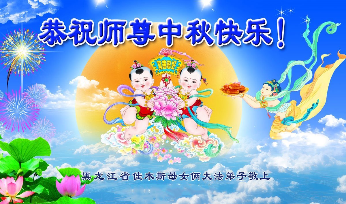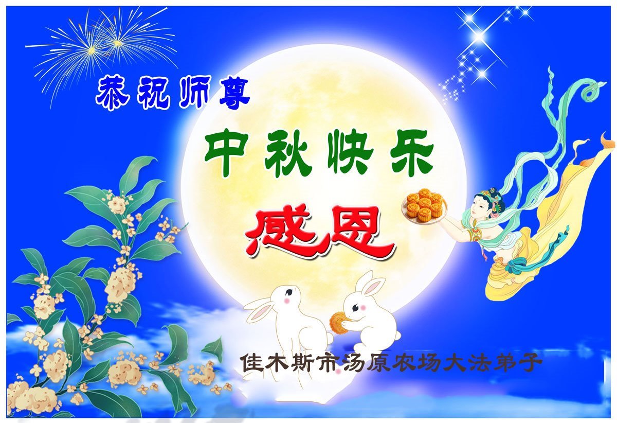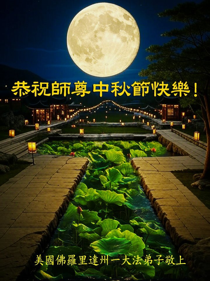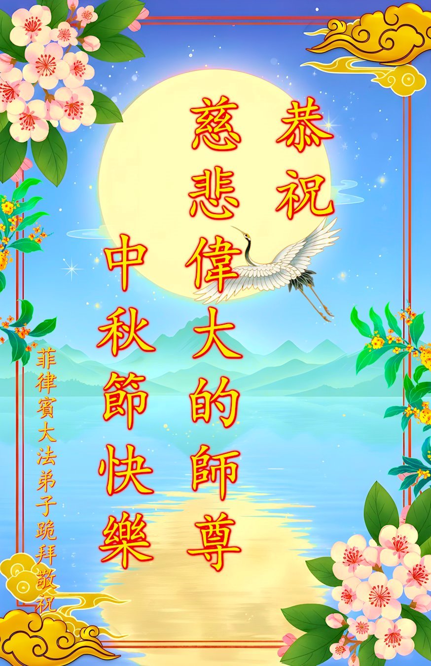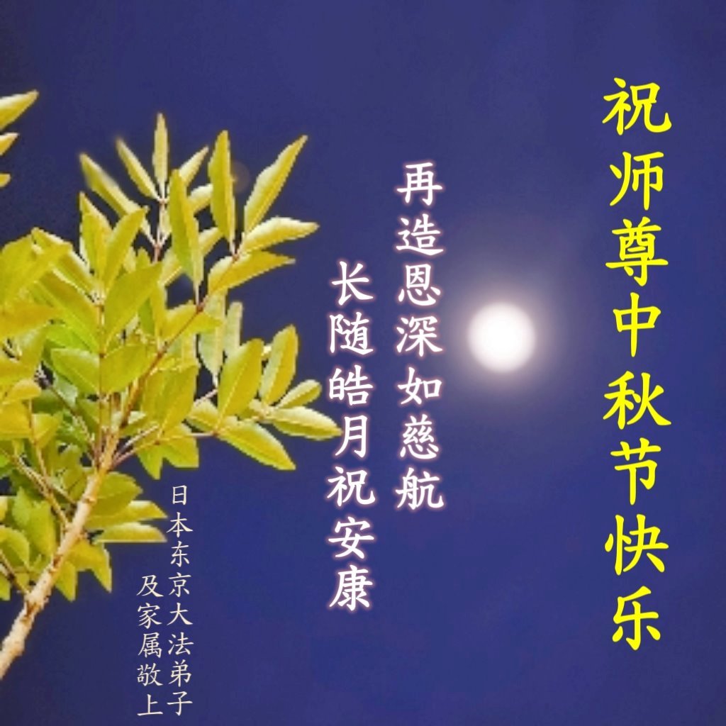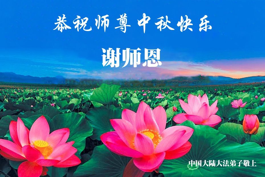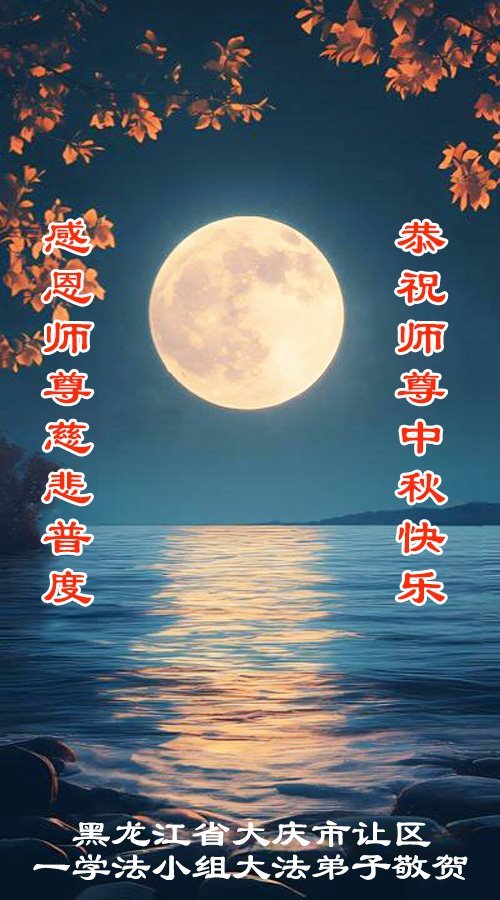 恭祝慈悲偉大的師父中秋節快樂!祝願全體大法弟子在修煉中堅守誓言,助師救度眾生,隨師父一起回歸真正的家園。(譯文)
