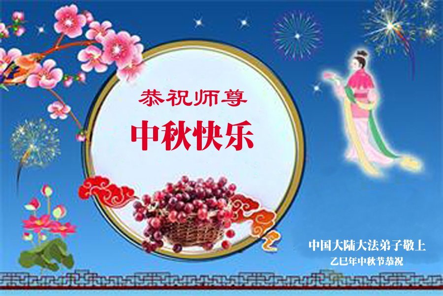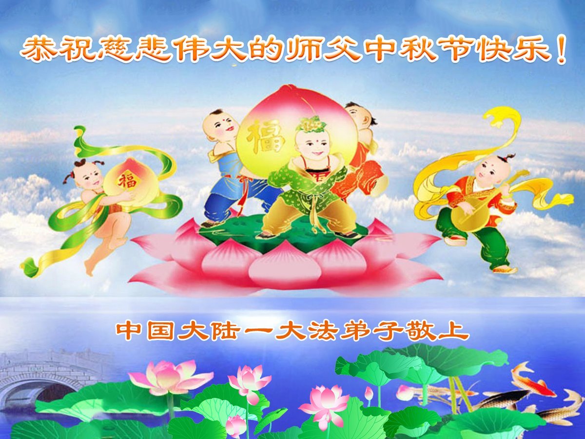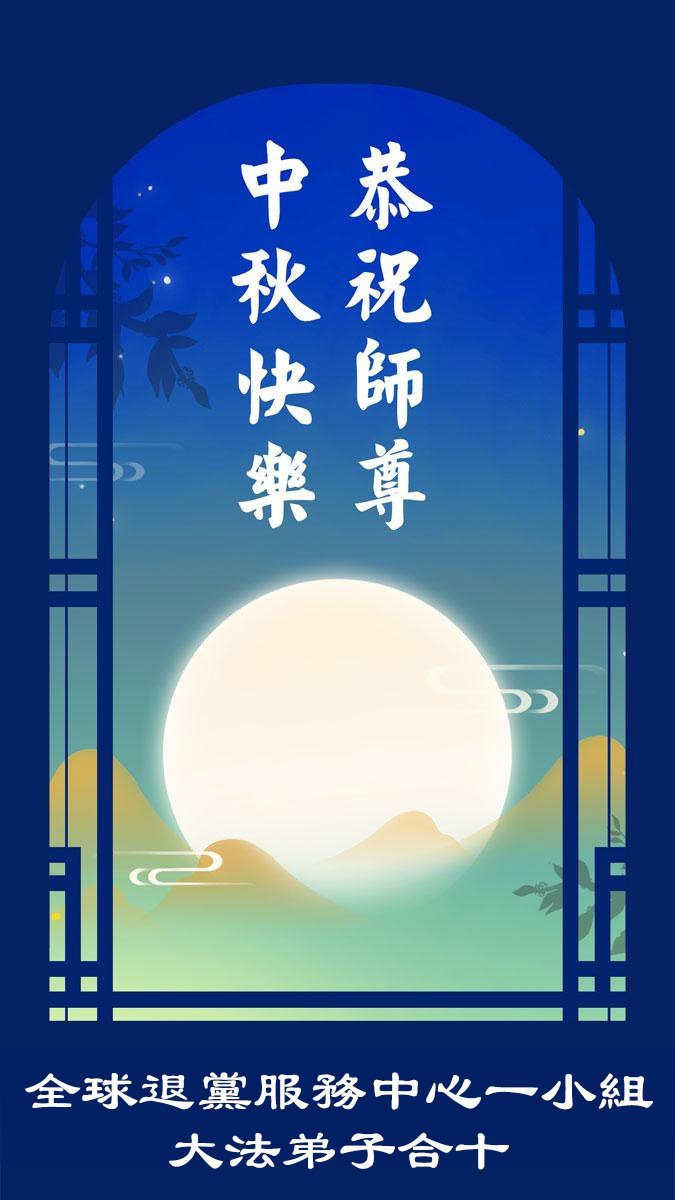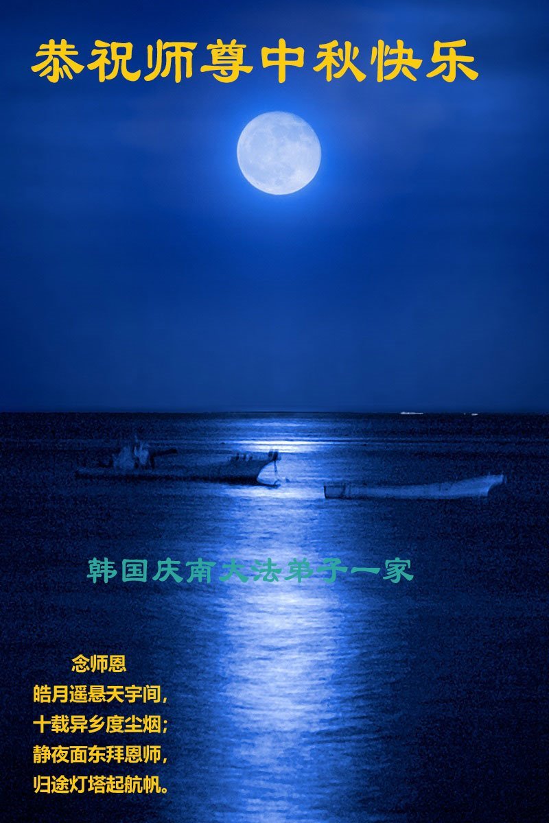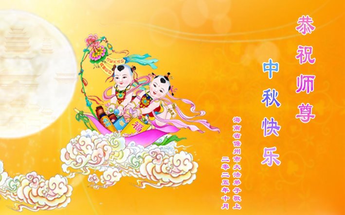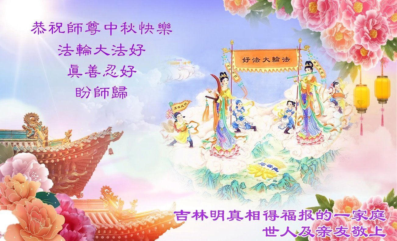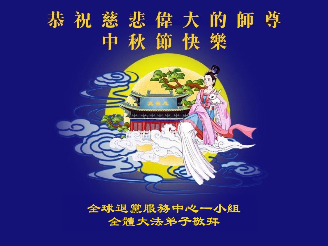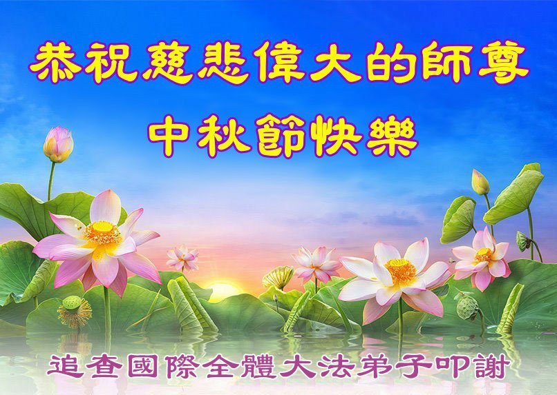 恭祝慈悲偉大的師父中秋節快樂!祝願全體大法弟子在修煉中堅守誓言,助師救度眾生,隨師父一起回歸真正的家園。(譯文)