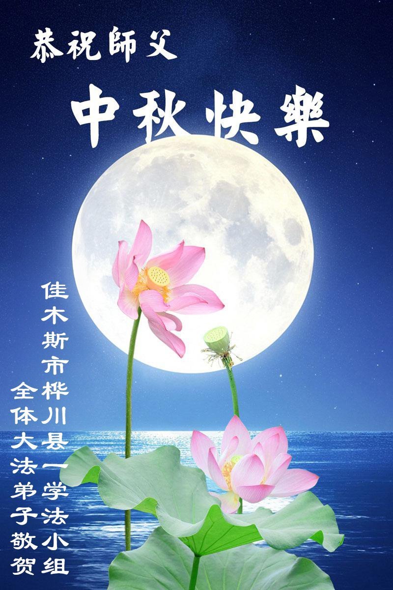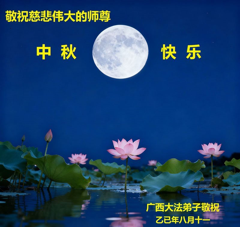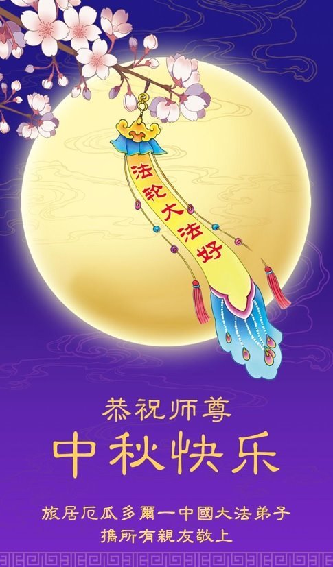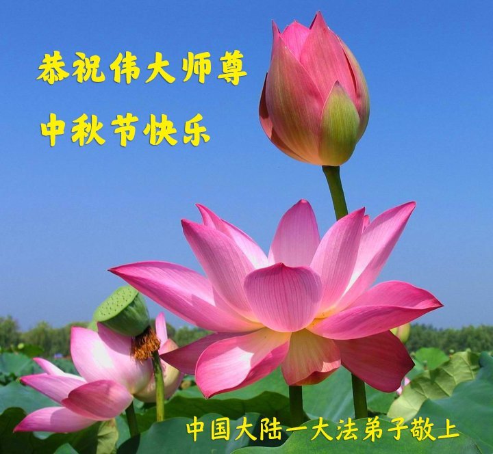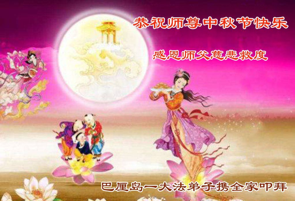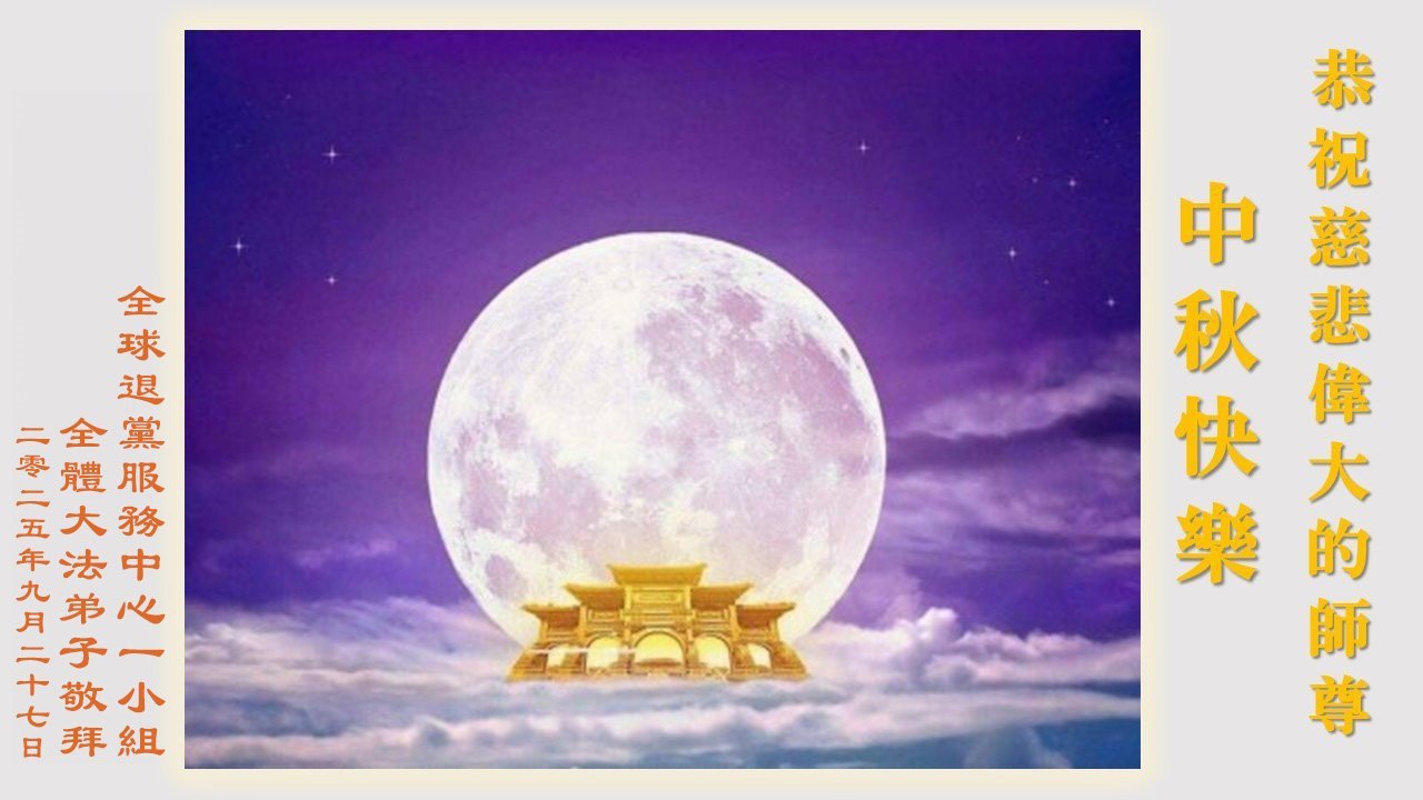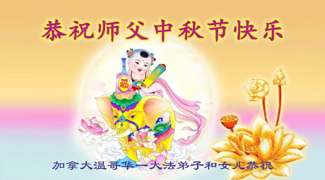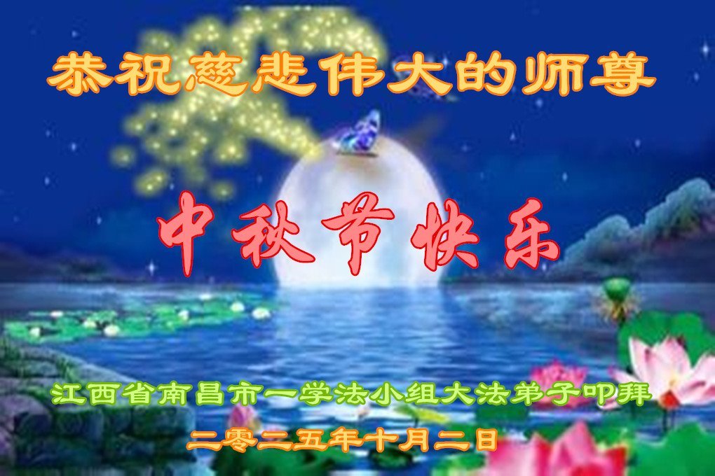 恭祝慈悲偉大的師父中秋節快樂!祝願全體大法弟子在修煉中堅守誓言,助師救度眾生,隨師父一起回歸真正的家園。(譯文)