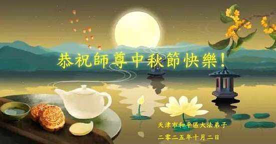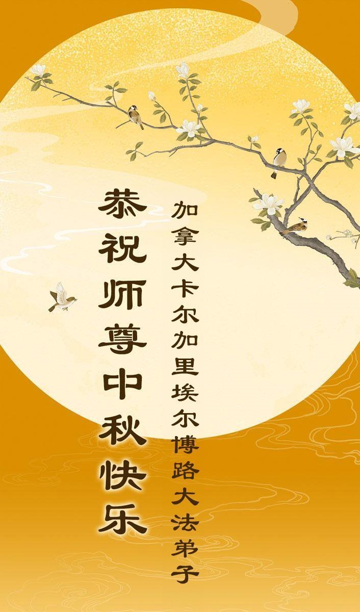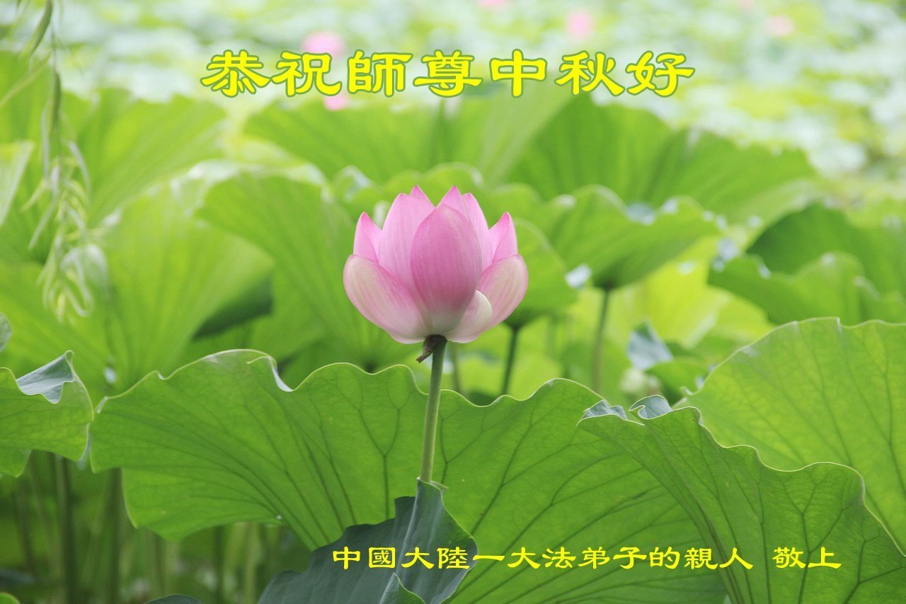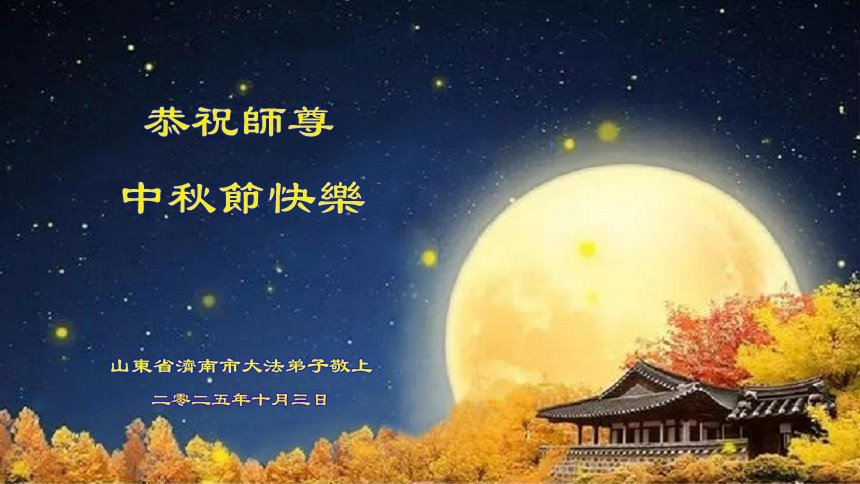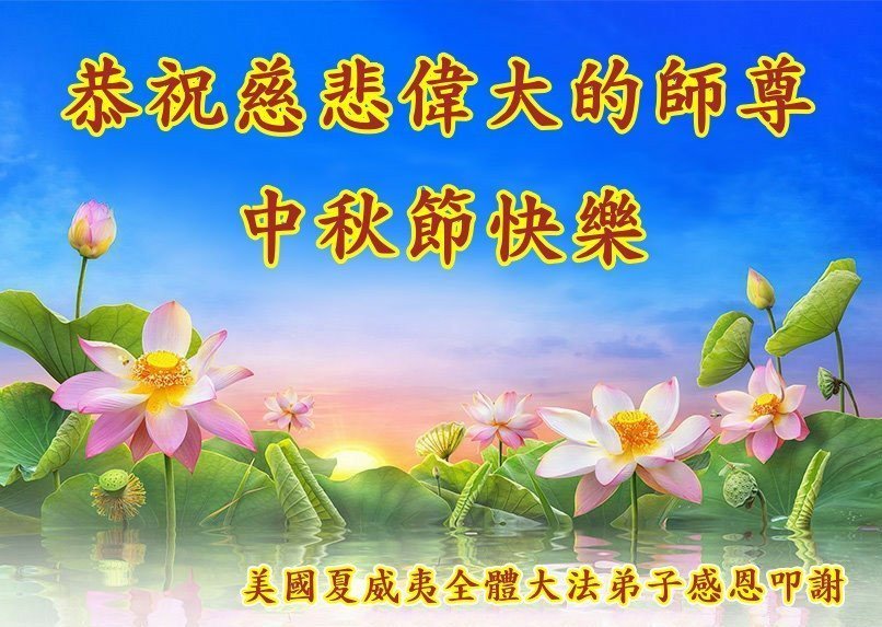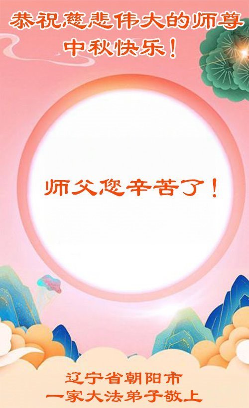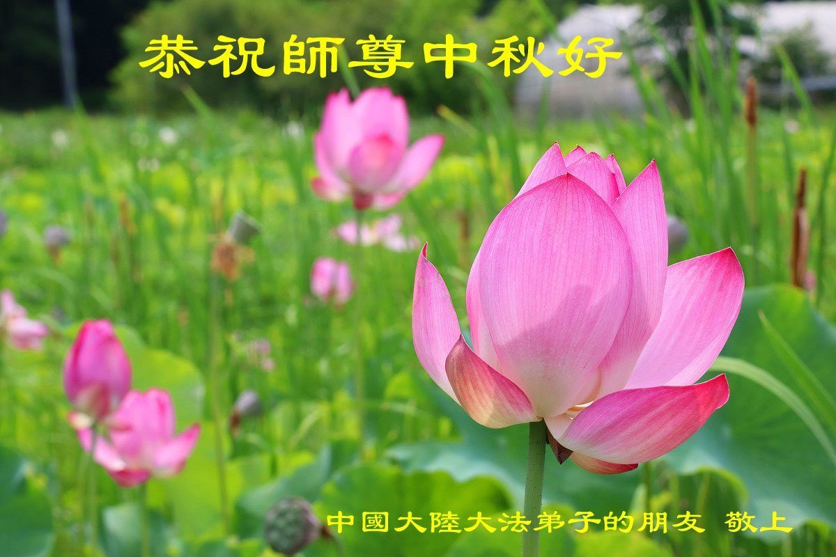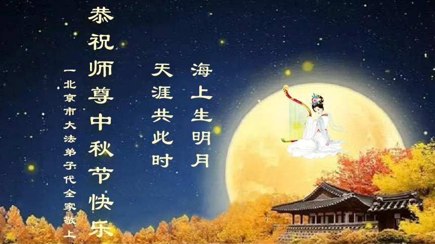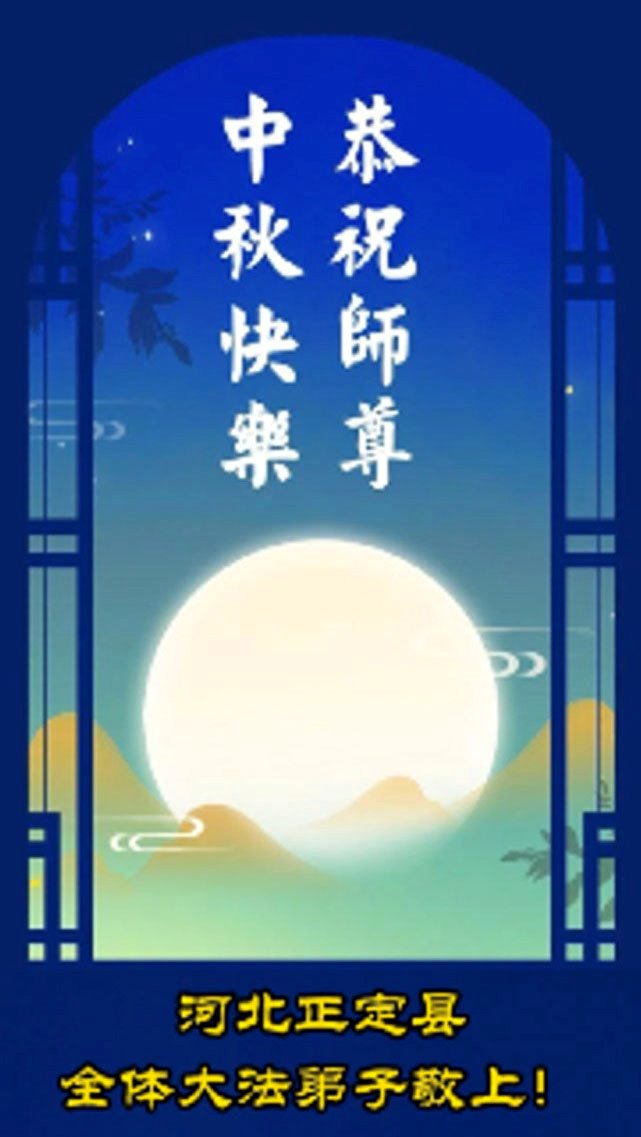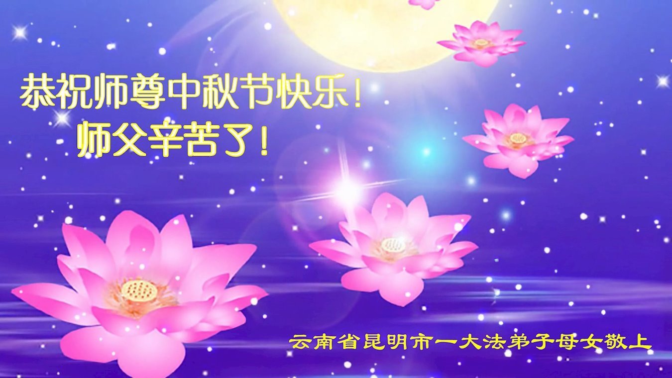 恭祝慈悲偉大的師父中秋節快樂!祝願全體大法弟子在修煉中堅守誓言,助師救度眾生,隨師父一起回歸真正的家園。(譯文)