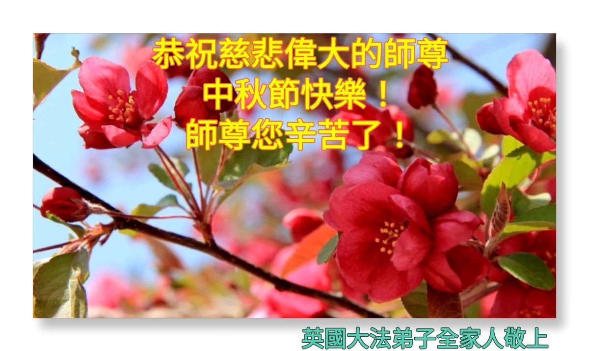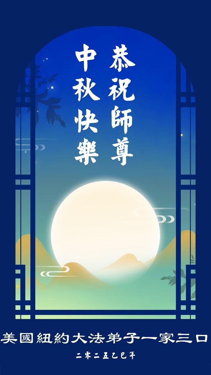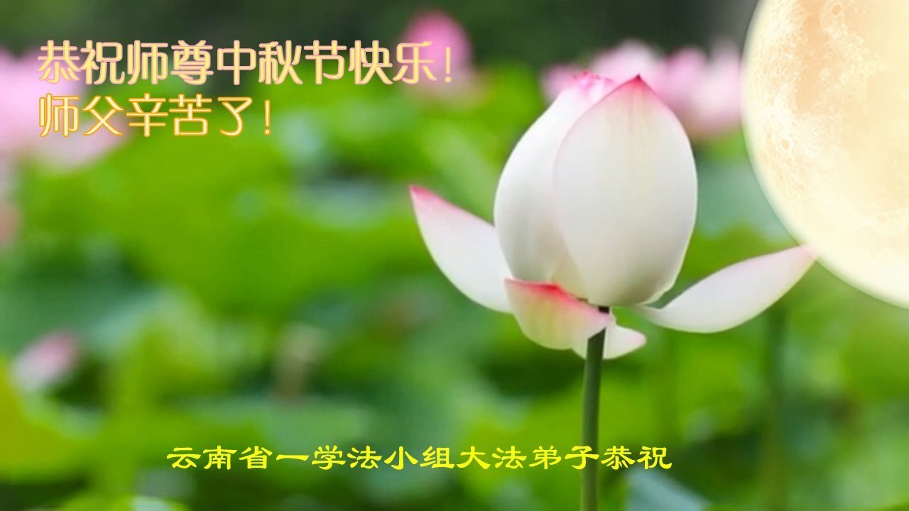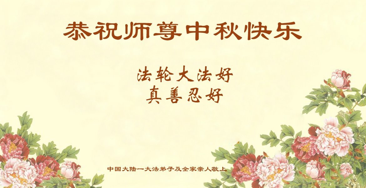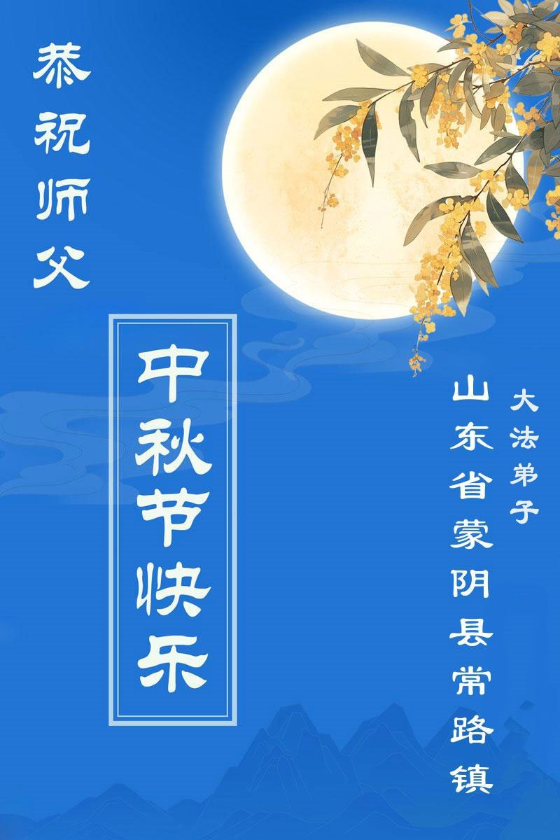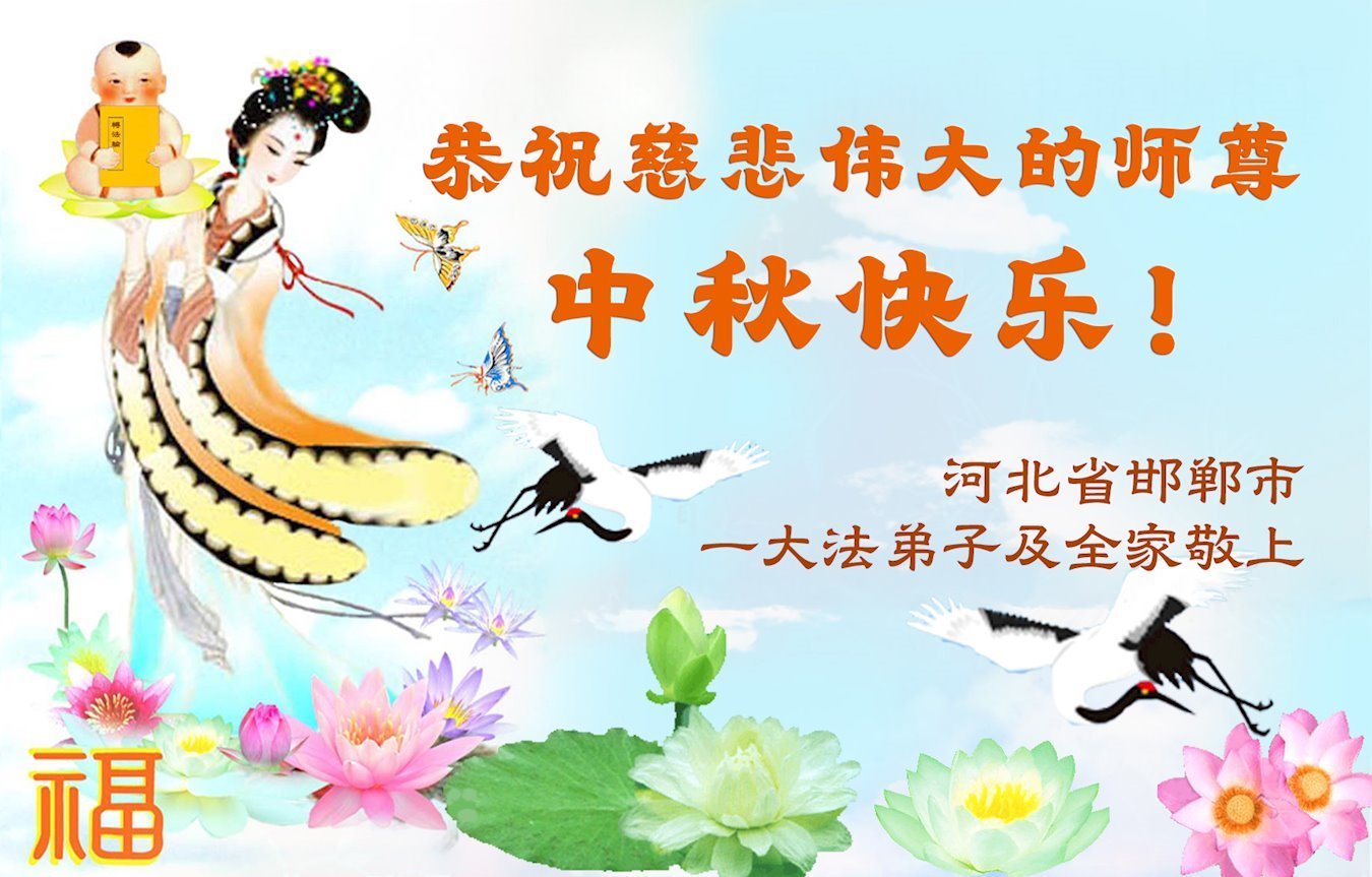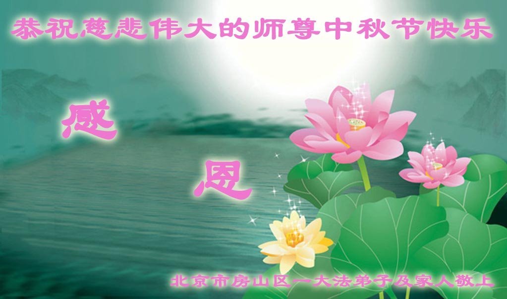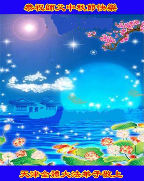 恭祝慈悲偉大的師父中秋節快樂!祝願全體大法弟子在修煉中堅守誓言,助師救度眾生,隨師父一起回歸真正的家園。(譯文)