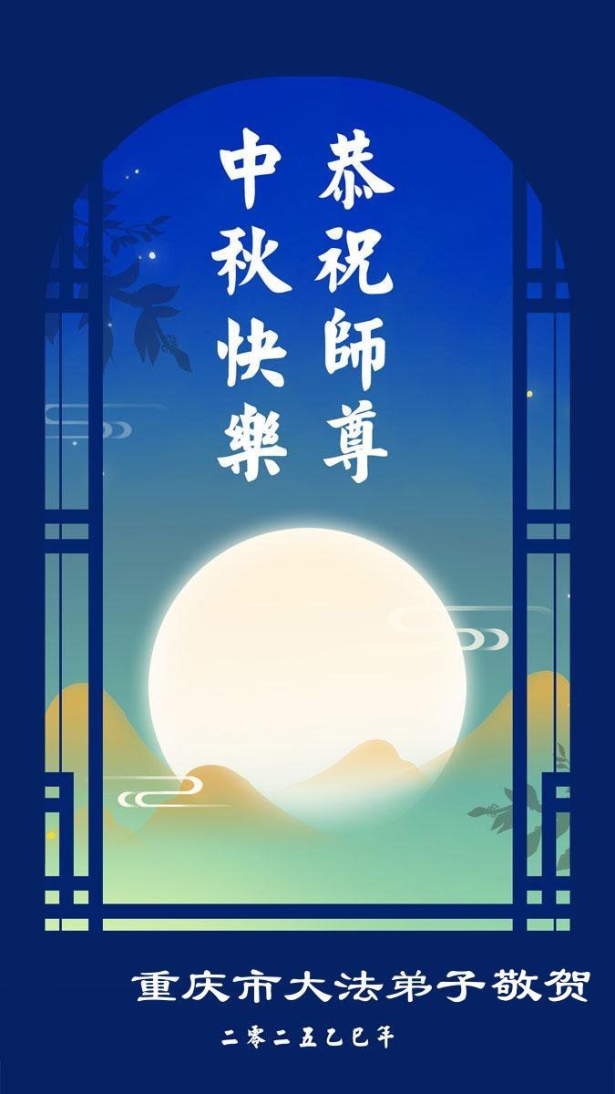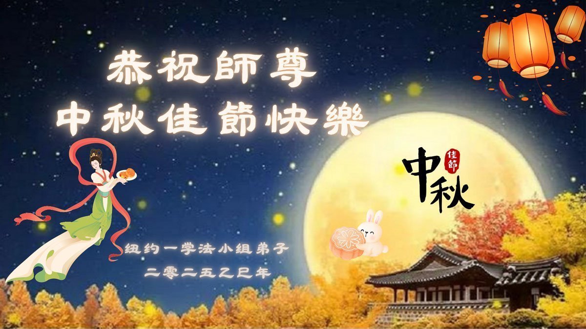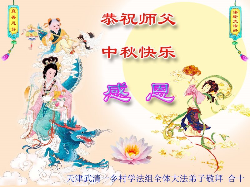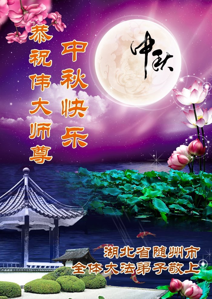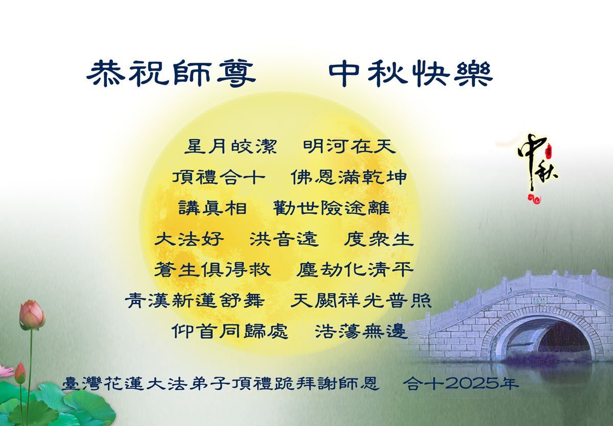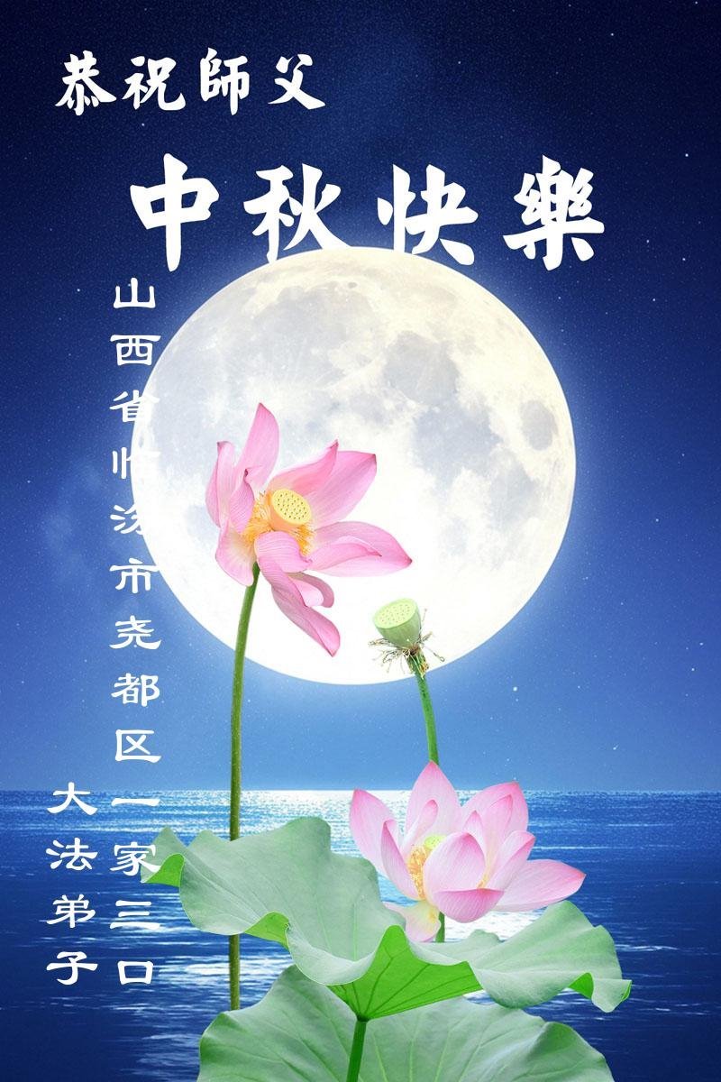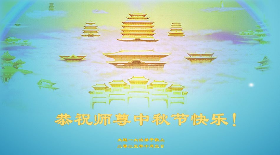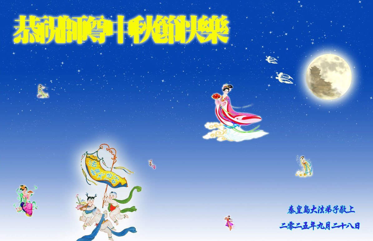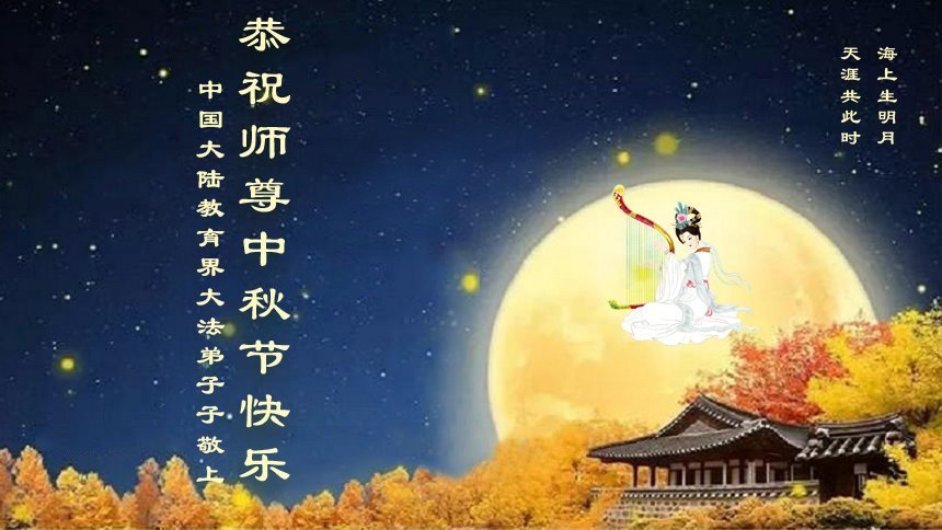 恭祝慈悲偉大的師父中秋節快樂!祝願全體大法弟子在修煉中堅守誓言,助師救度眾生,隨師父一起回歸真正的家園。(譯文)