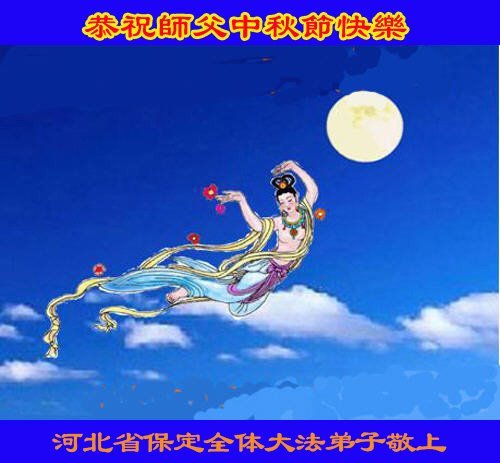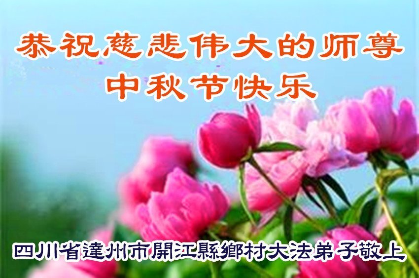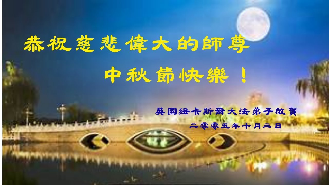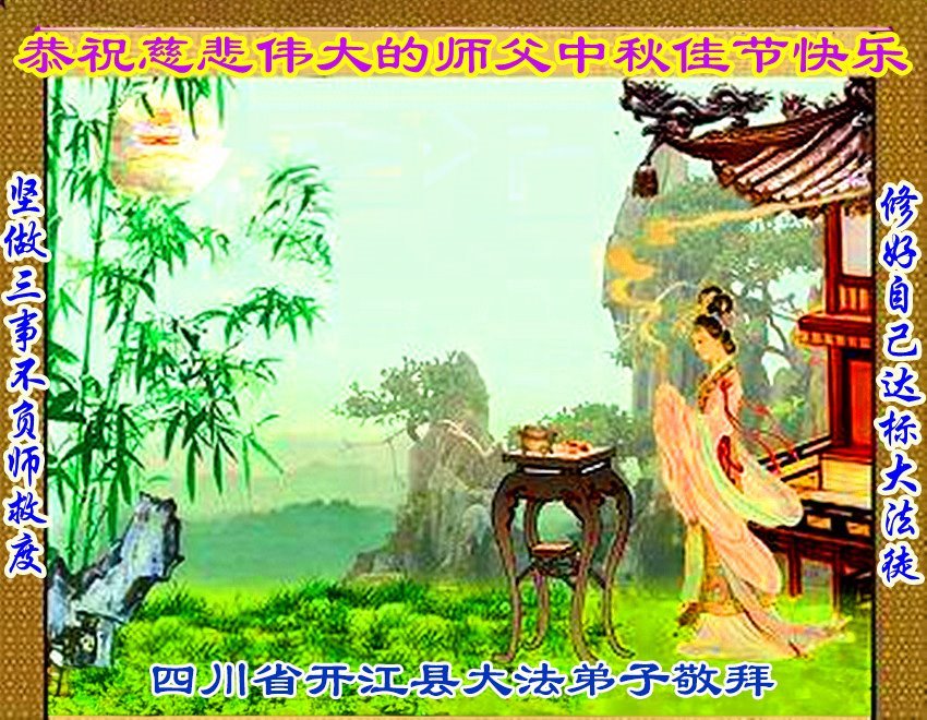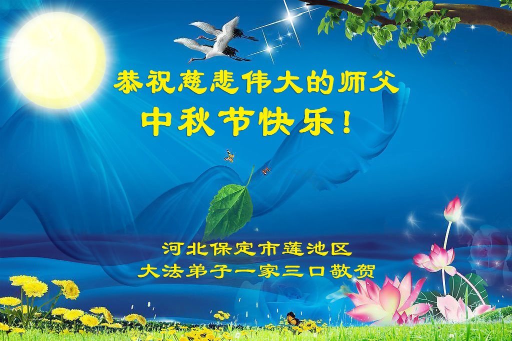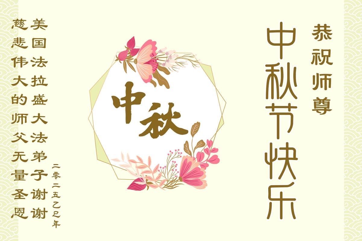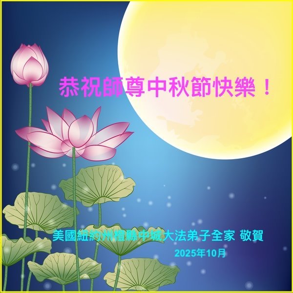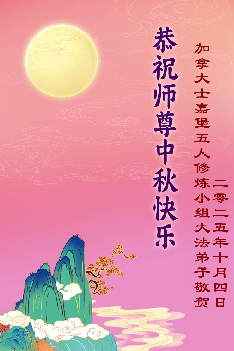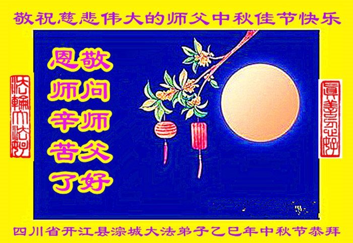 恭祝慈悲偉大的師父中秋節快樂!祝願全體大法弟子在修煉中堅守誓言,助師救度眾生,隨師父一起回歸真正的家園。(譯文)