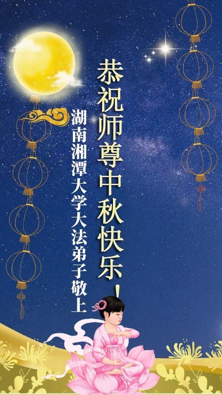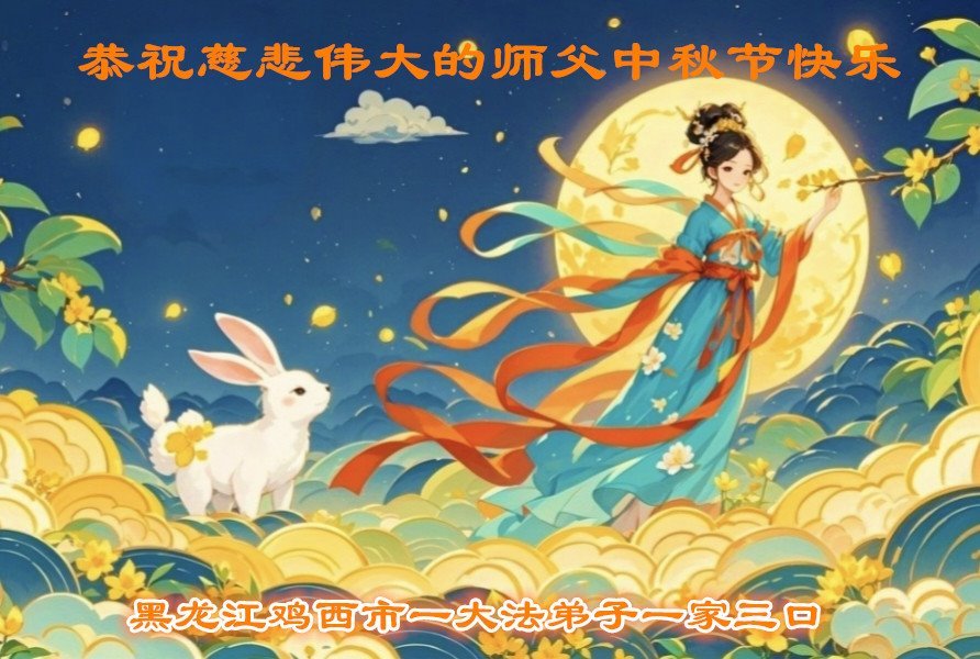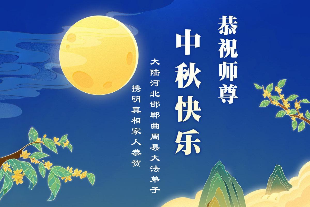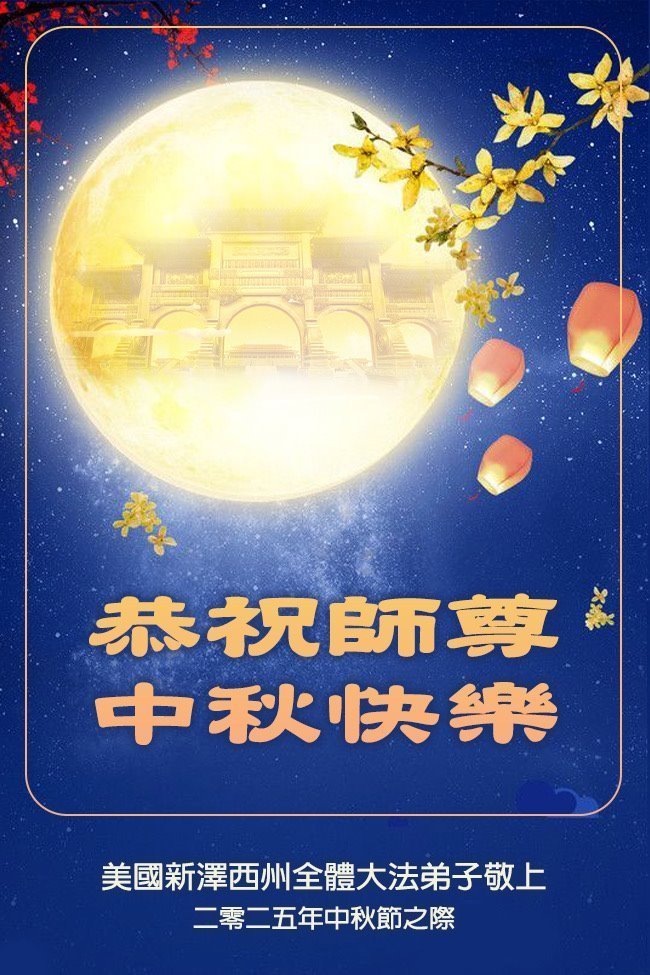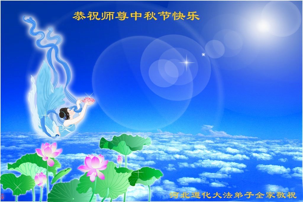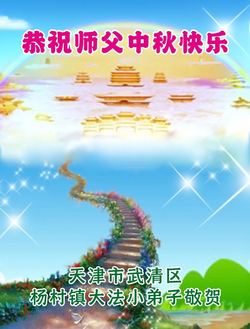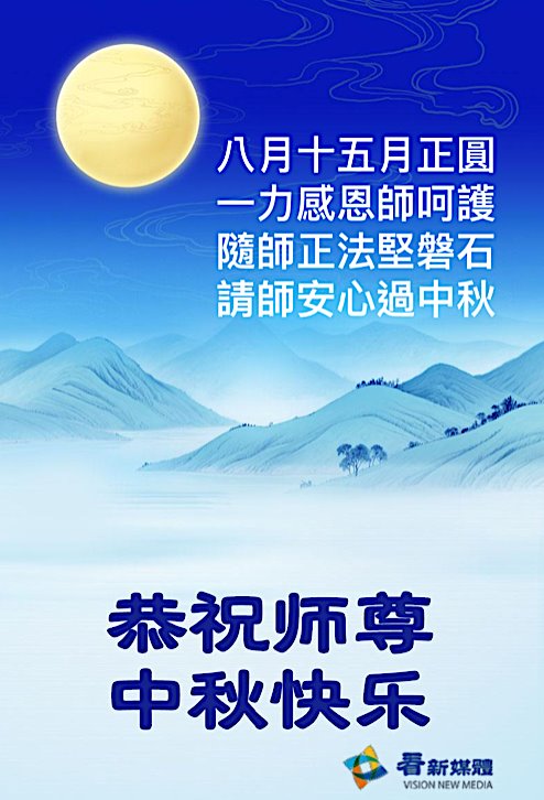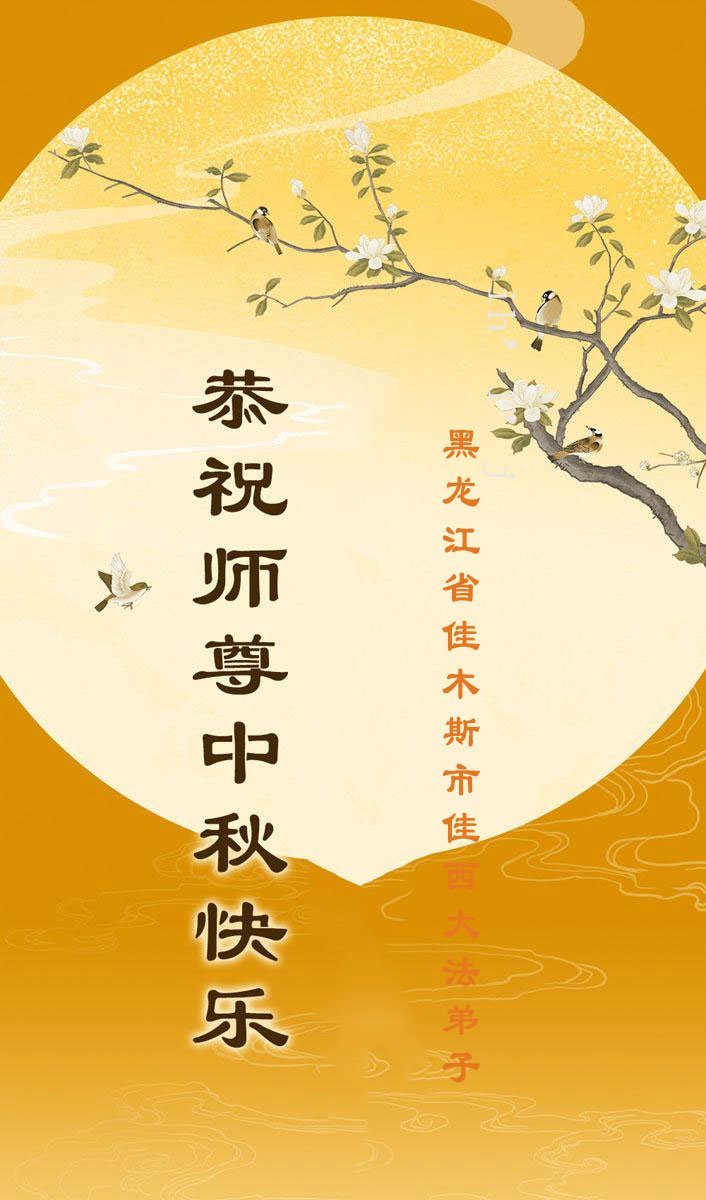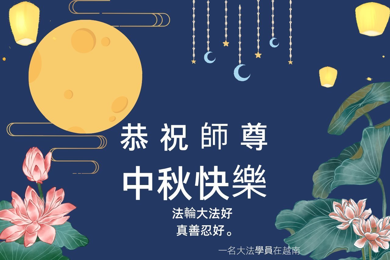 恭祝慈悲偉大的師父中秋節快樂!祝願全體大法弟子在修煉中堅守誓言,助師救度眾生,隨師父一起回歸真正的家園。(譯文)