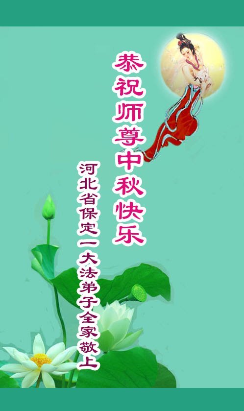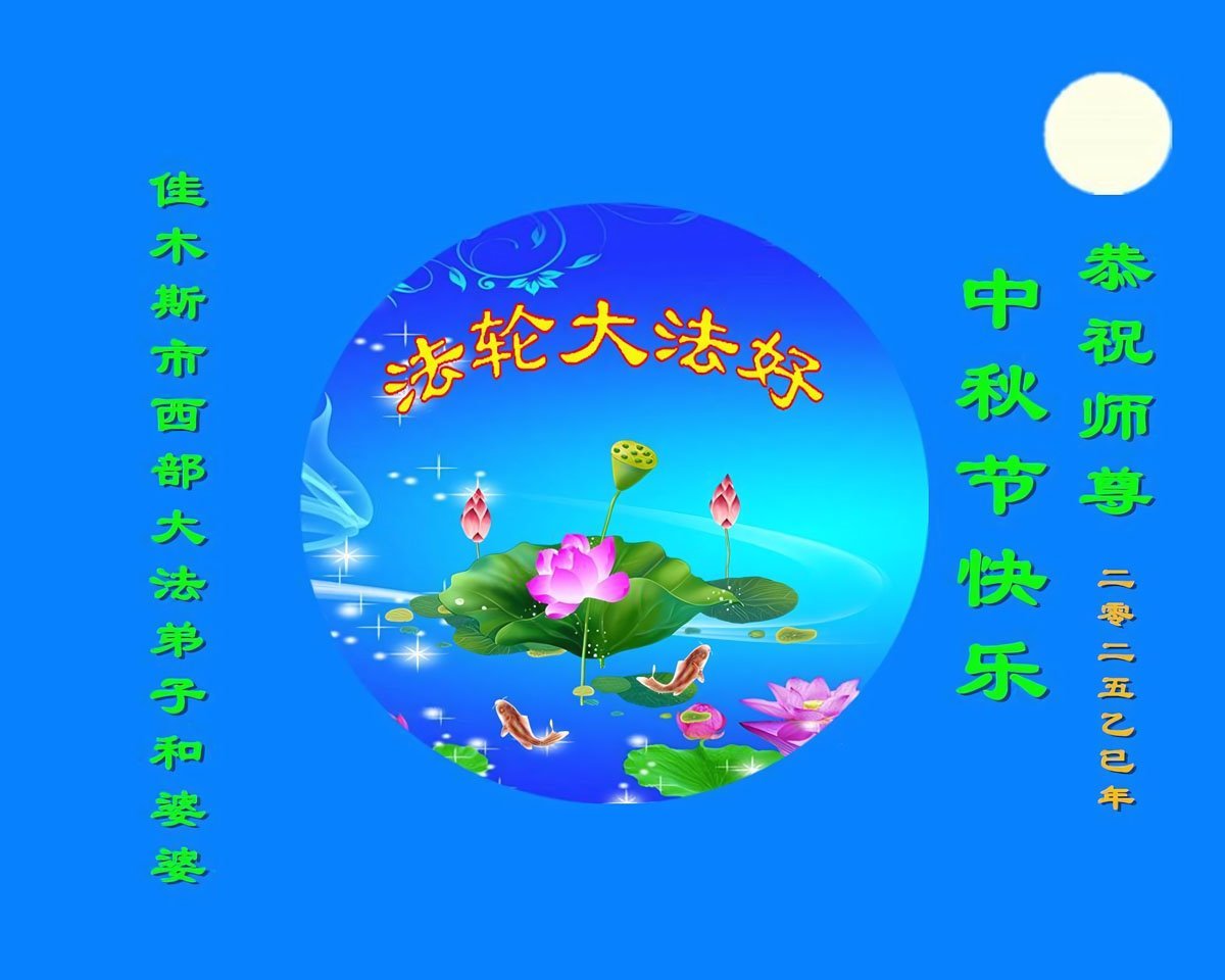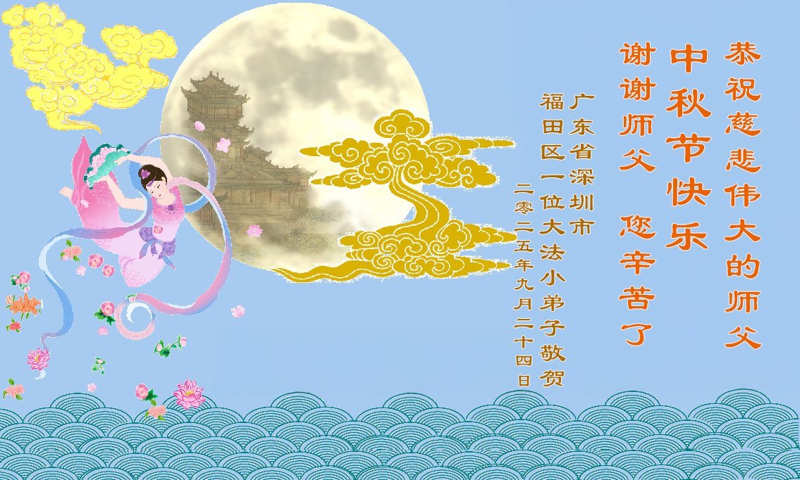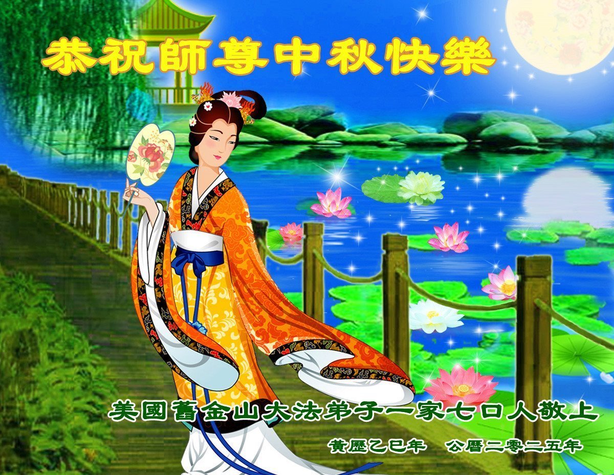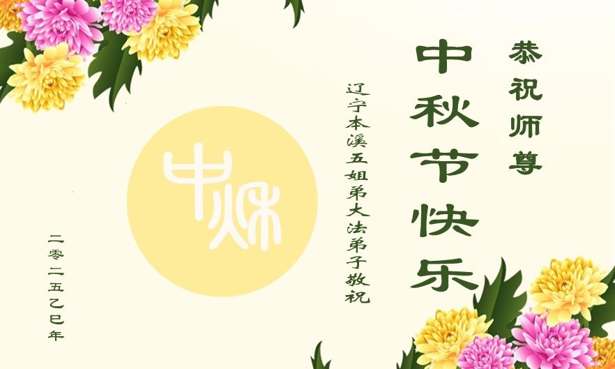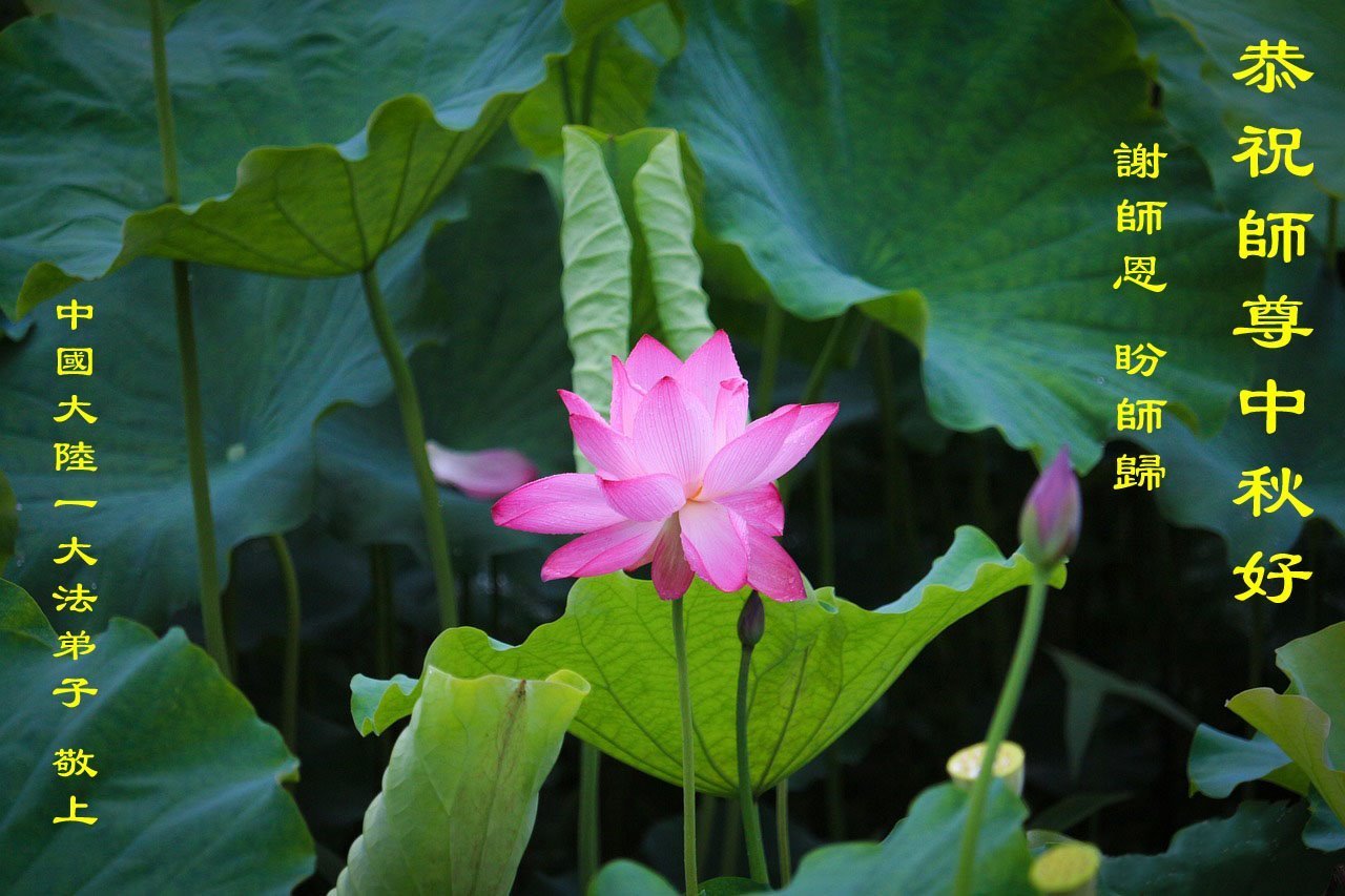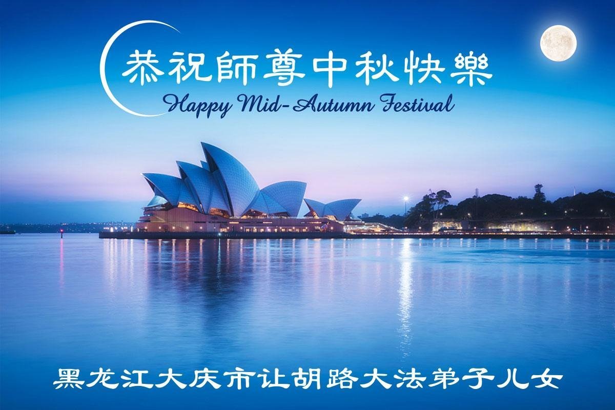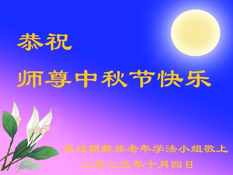 恭祝慈悲偉大的師父中秋節快樂!祝願全體大法弟子在修煉中堅守誓言,助師救度眾生,隨師父一起回歸真正的家園。(譯文)