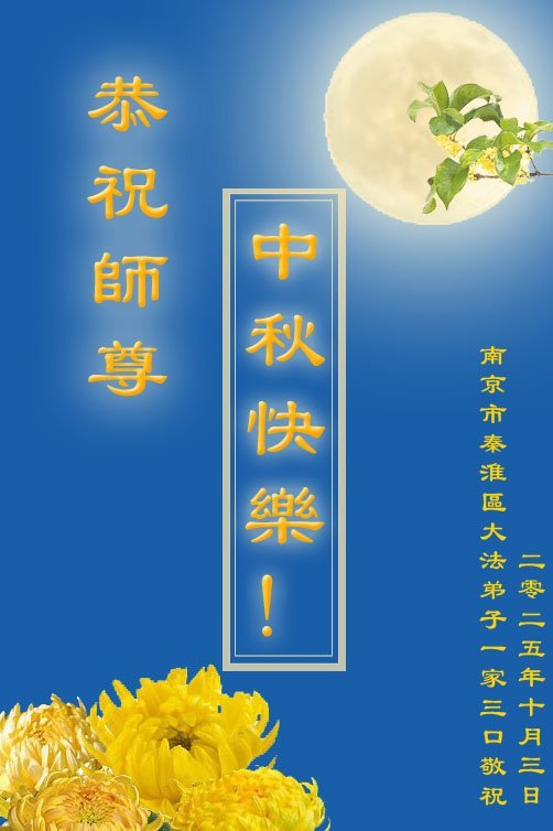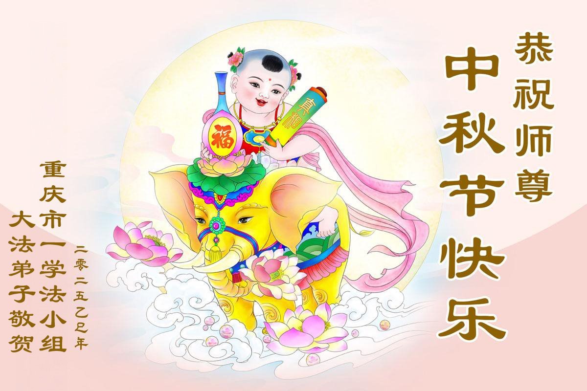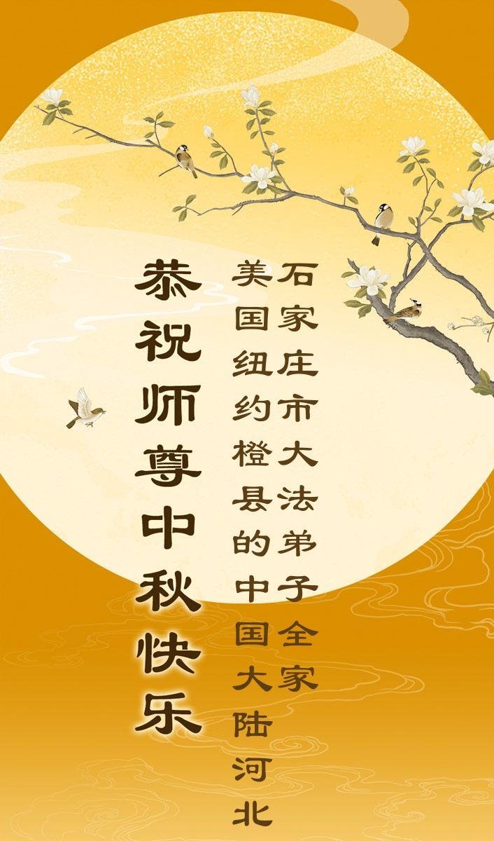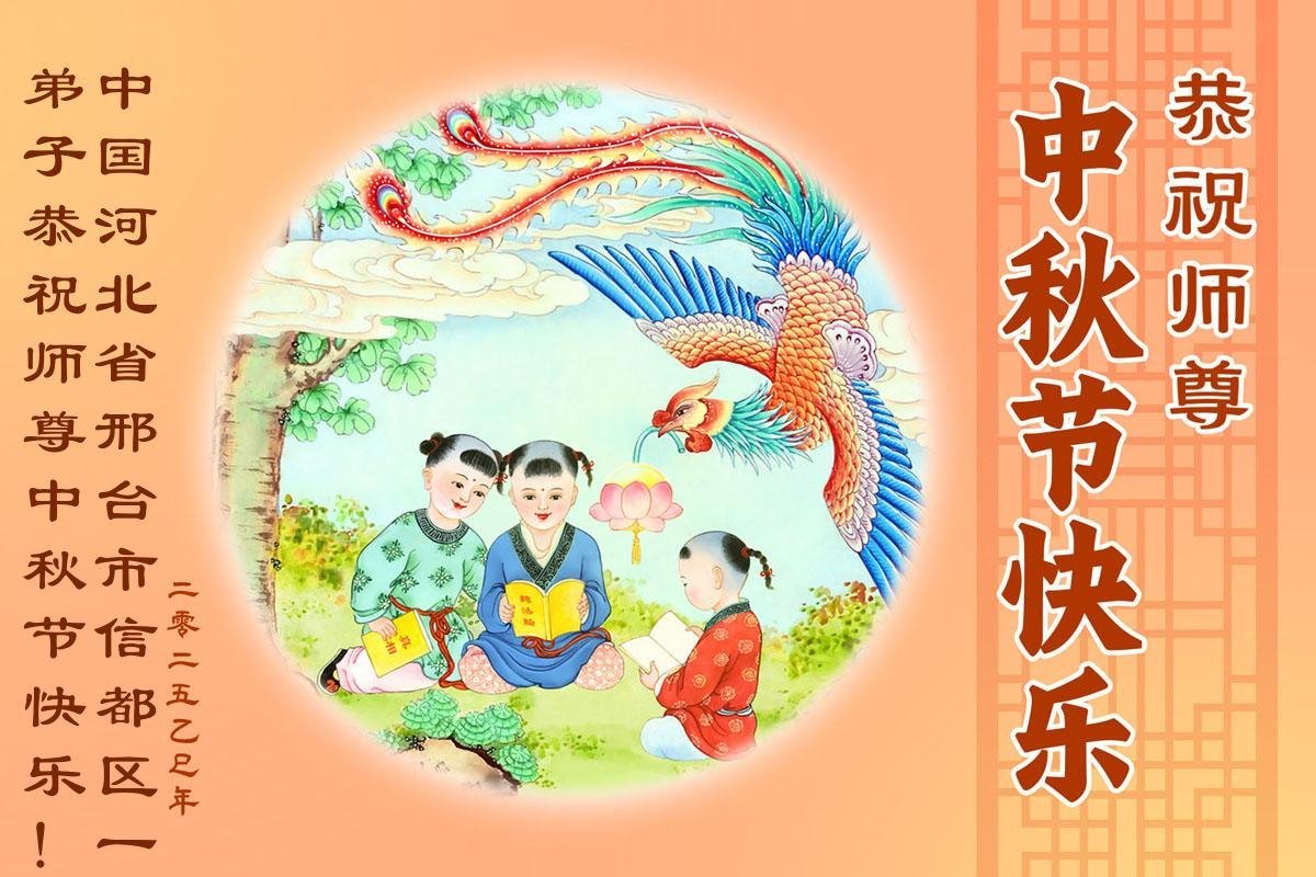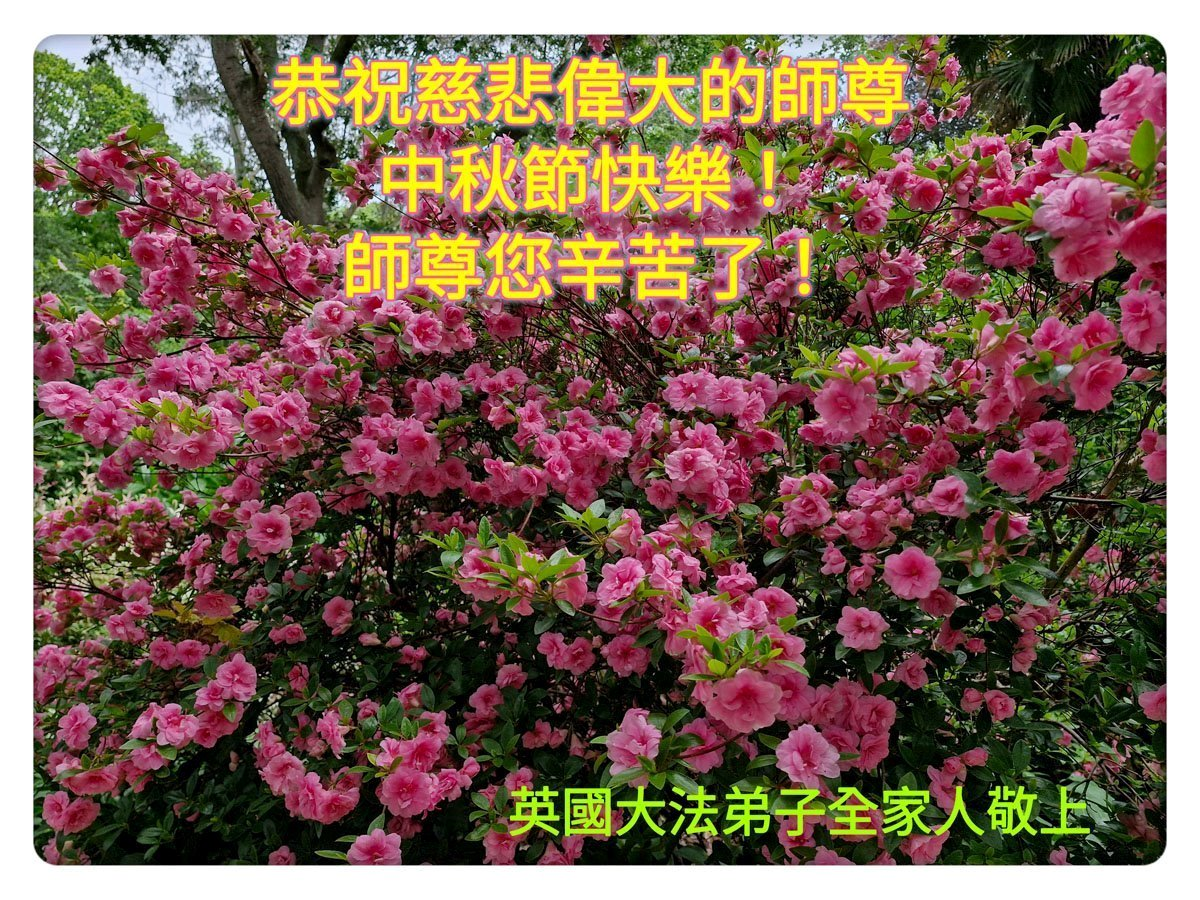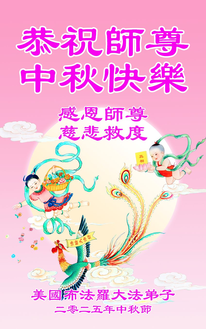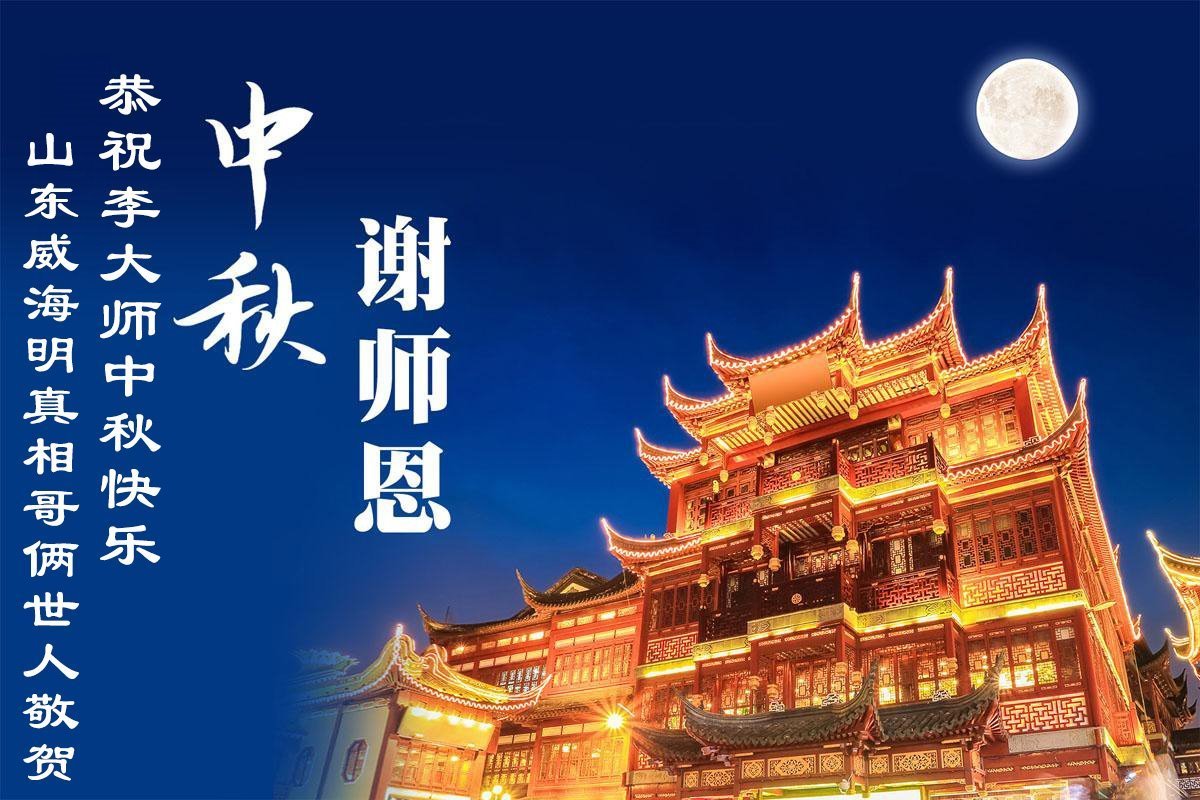 恭祝慈悲偉大的師父中秋節快樂!祝願全體大法弟子在修煉中堅守誓言,助師救度眾生,隨師父一起回歸真正的家園。(譯文)