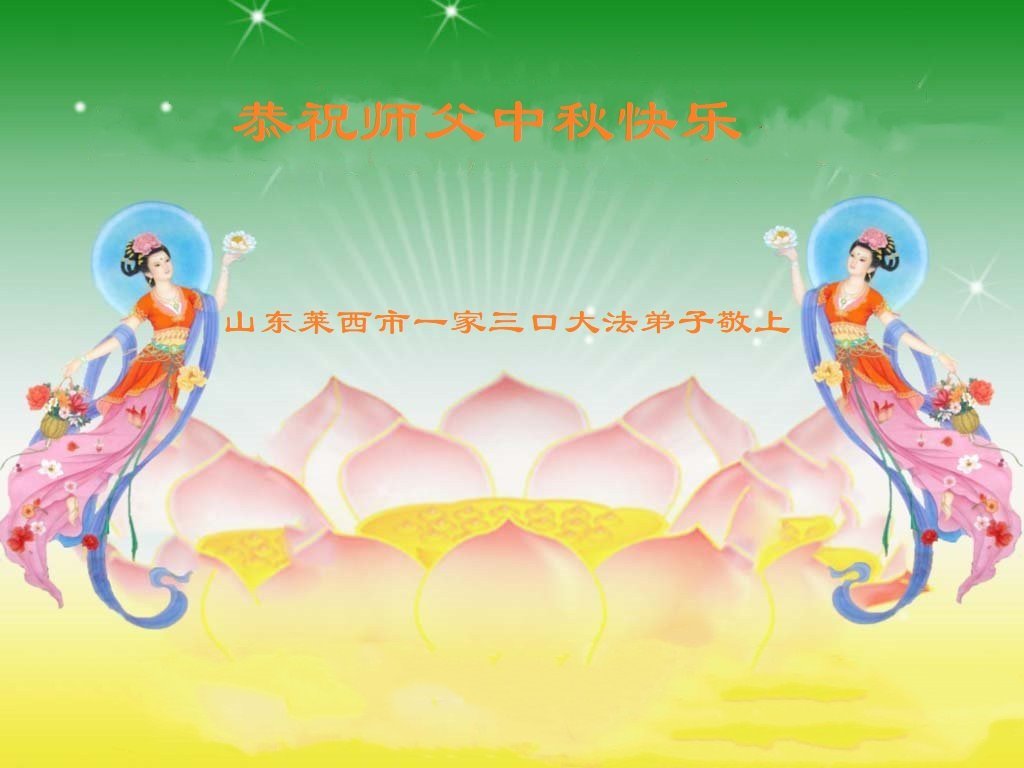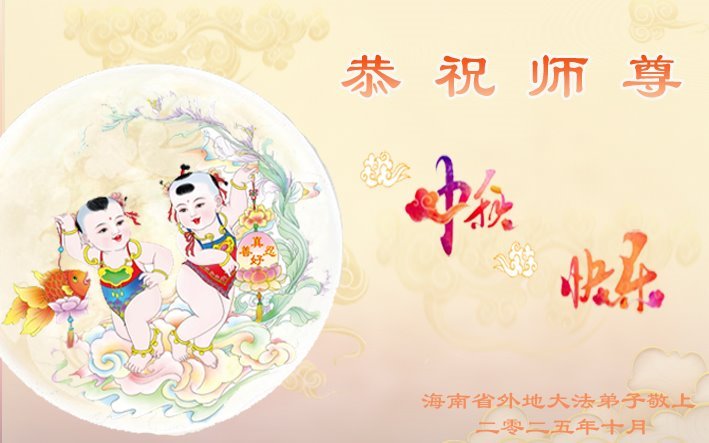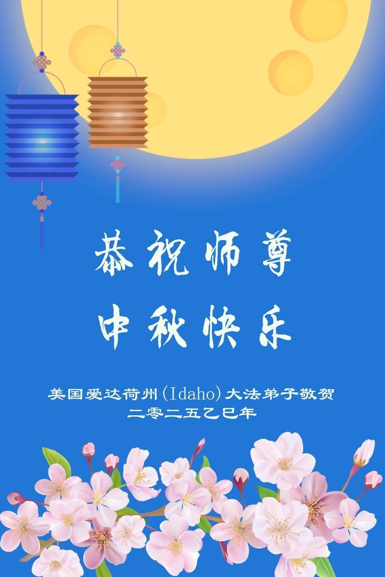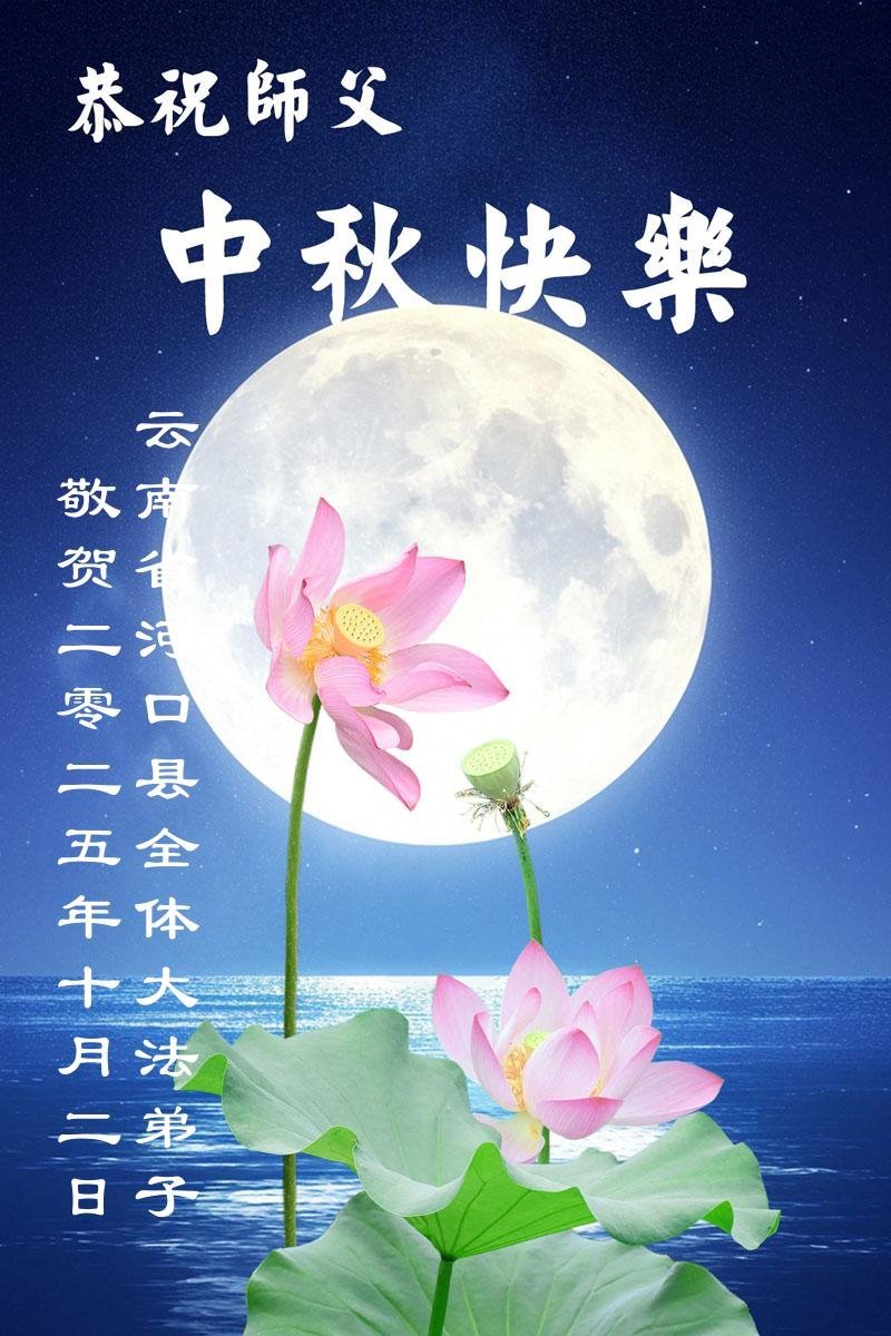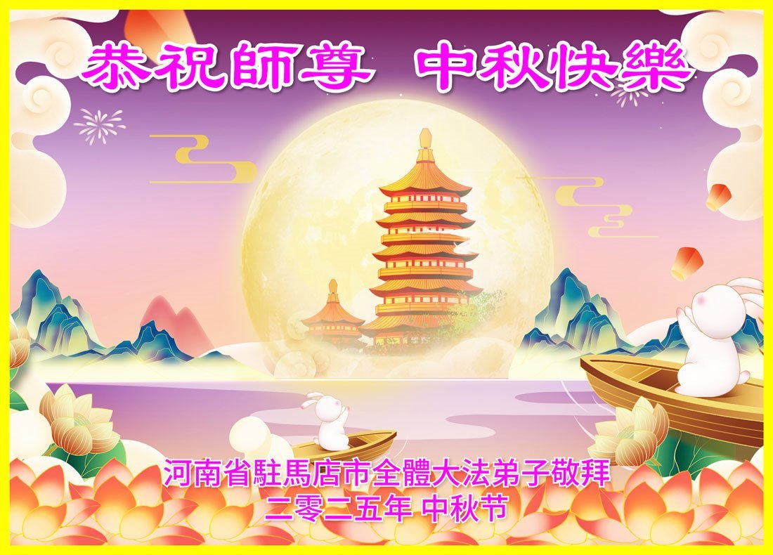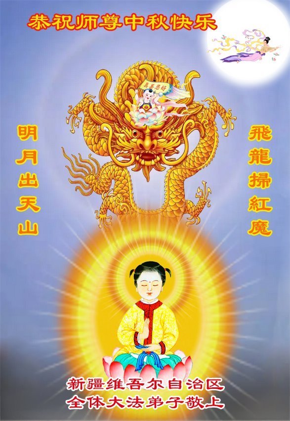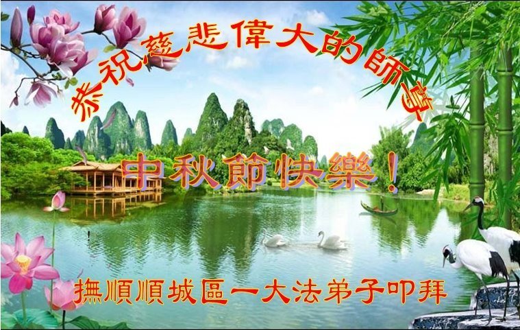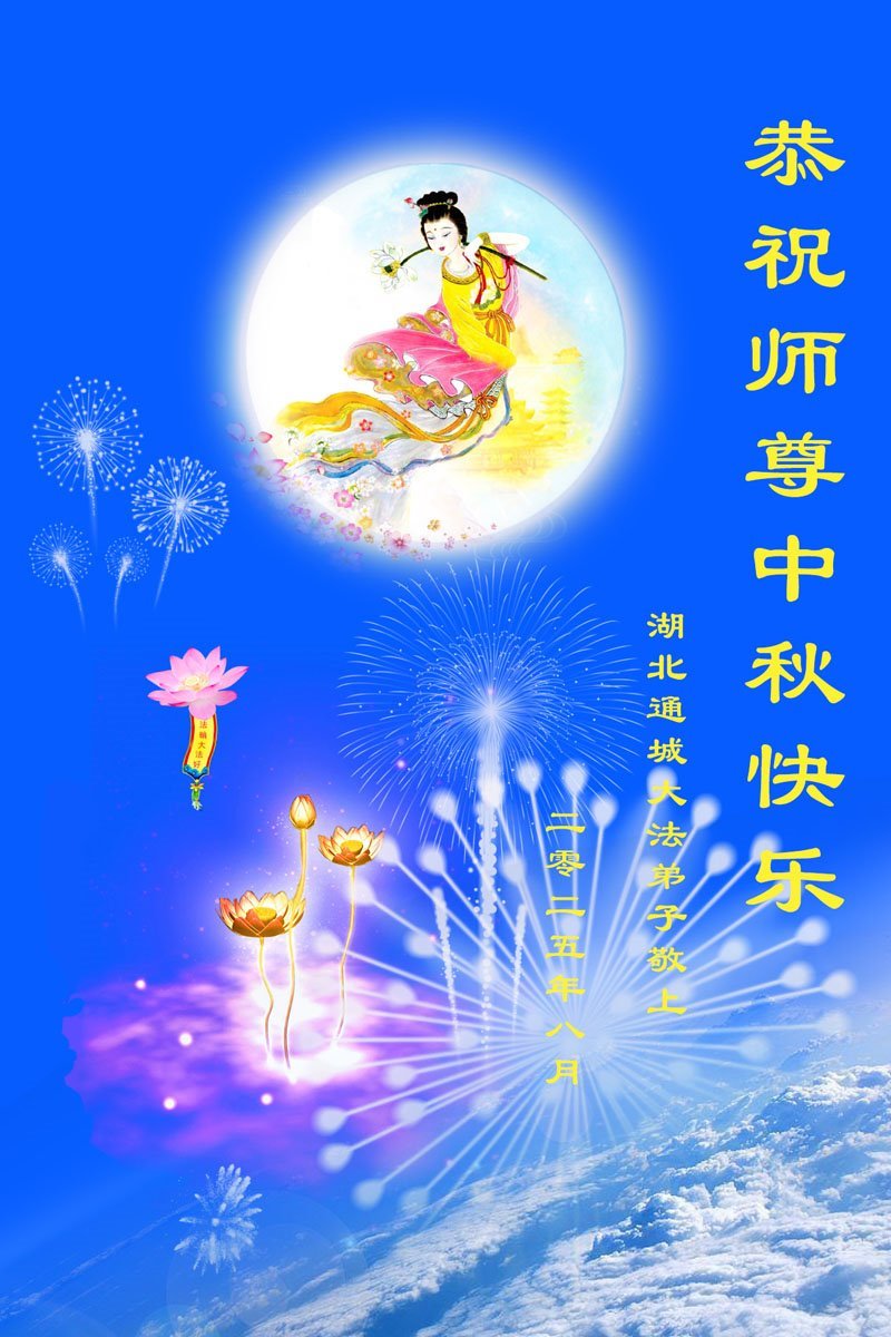 恭祝慈悲偉大的師父中秋節快樂!祝願全體大法弟子在修煉中堅守誓言,助師救度眾生,隨師父一起回歸真正的家園。(譯文)