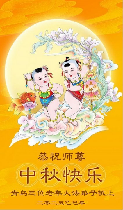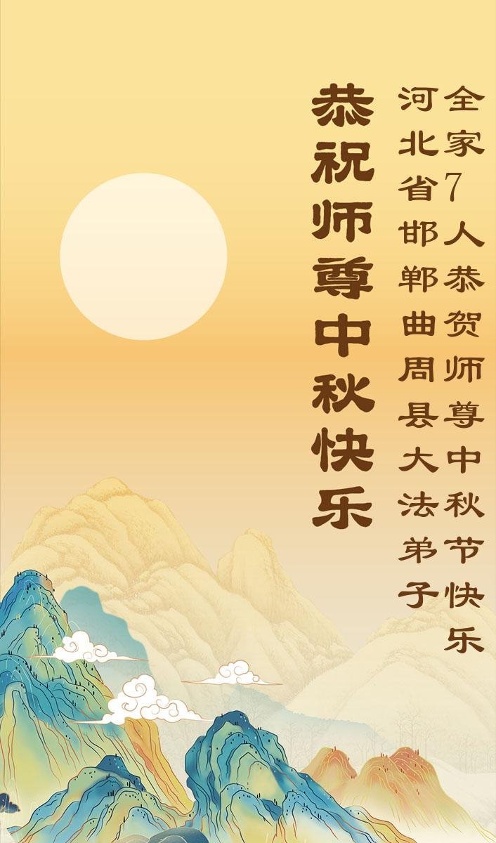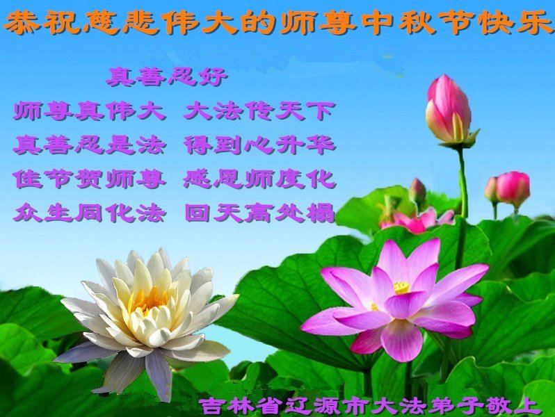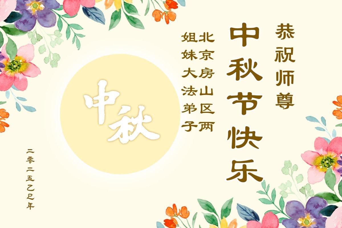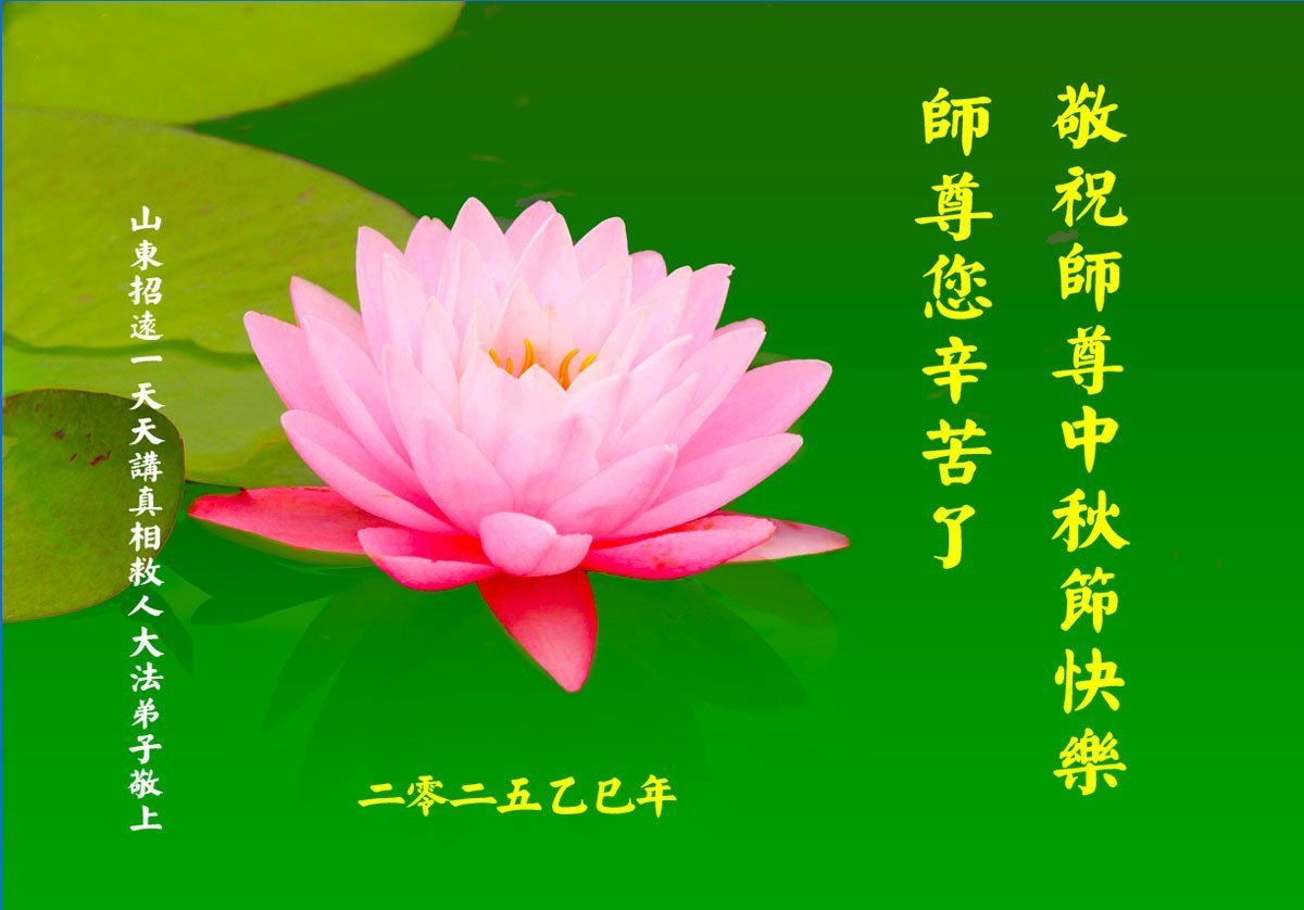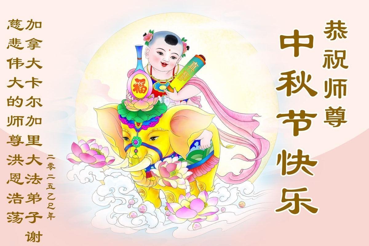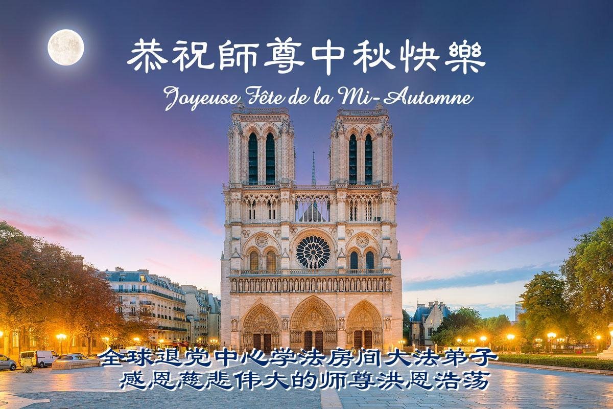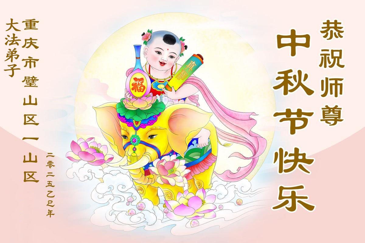 恭祝慈悲偉大的師父中秋節快樂!祝願全體大法弟子在修煉中堅守誓言,助師救度眾生,隨師父一起回歸真正的家園。(譯文)