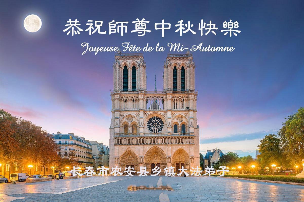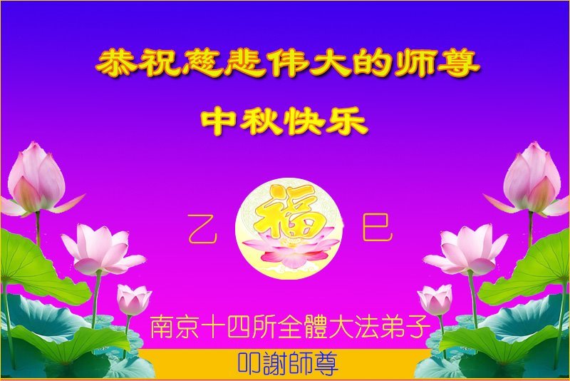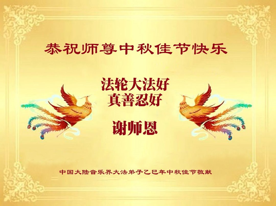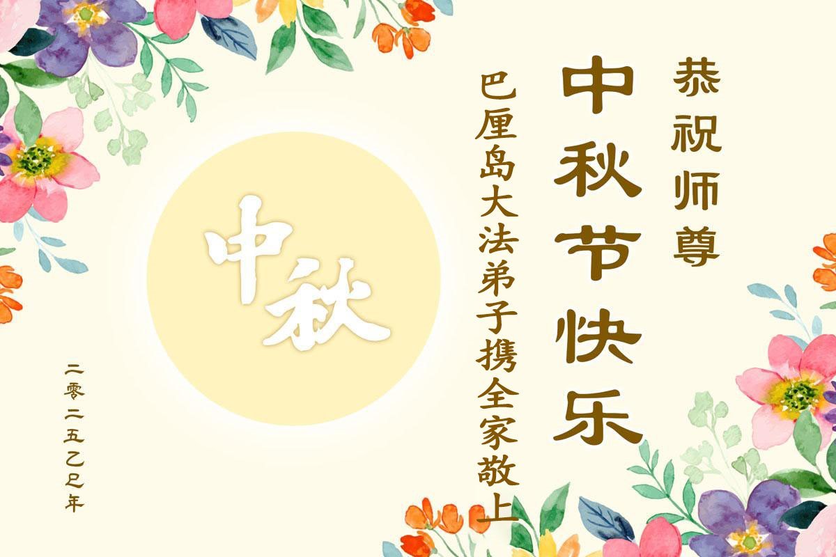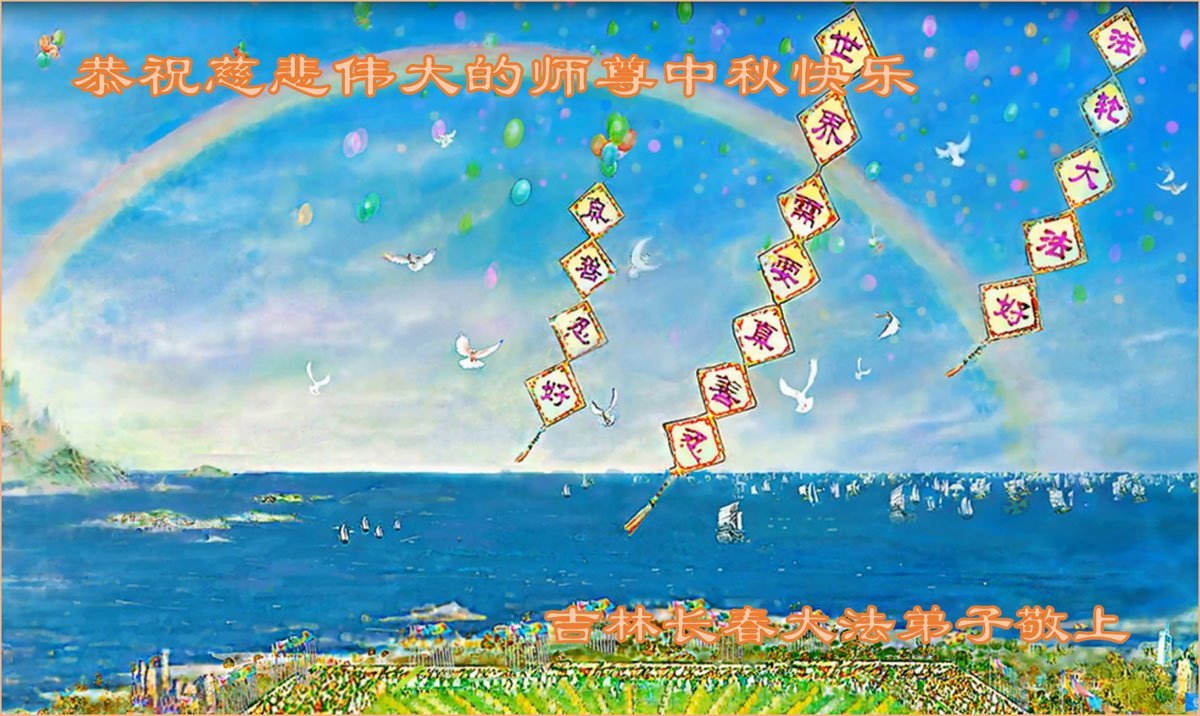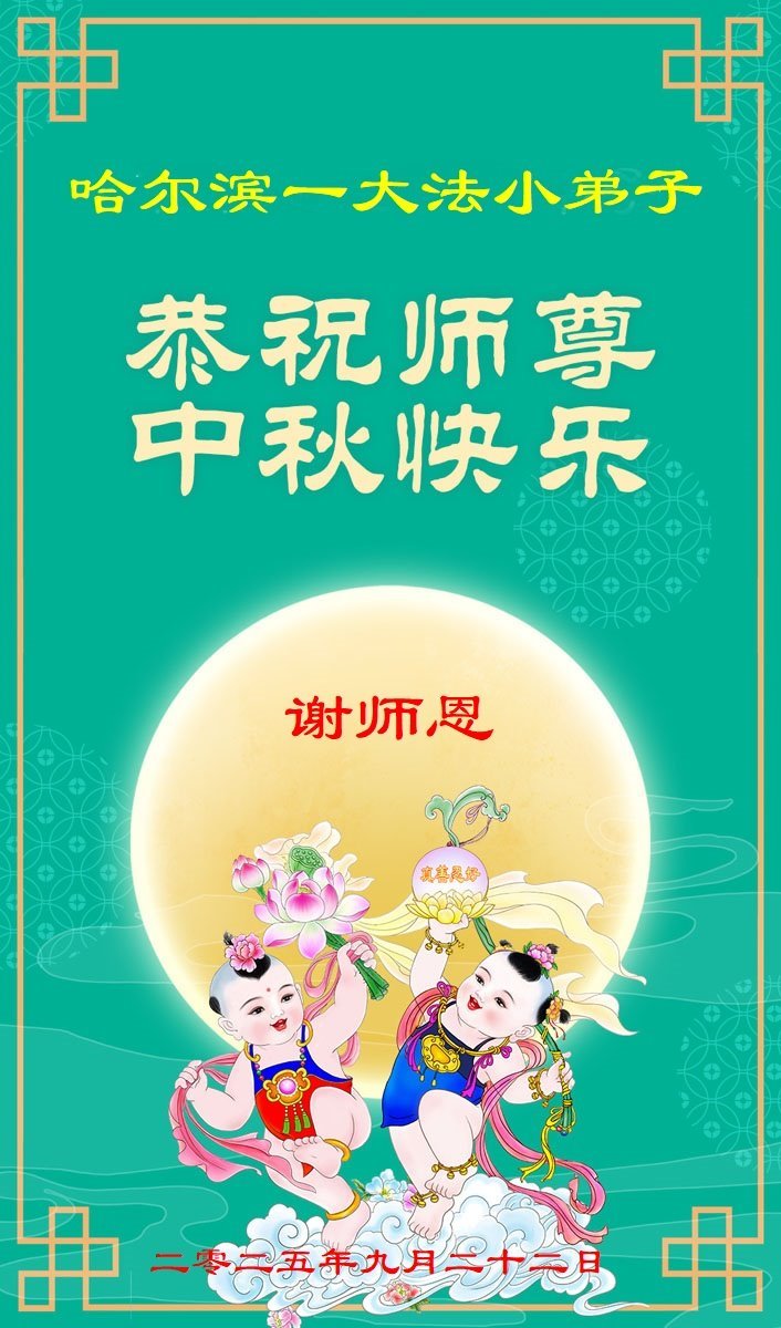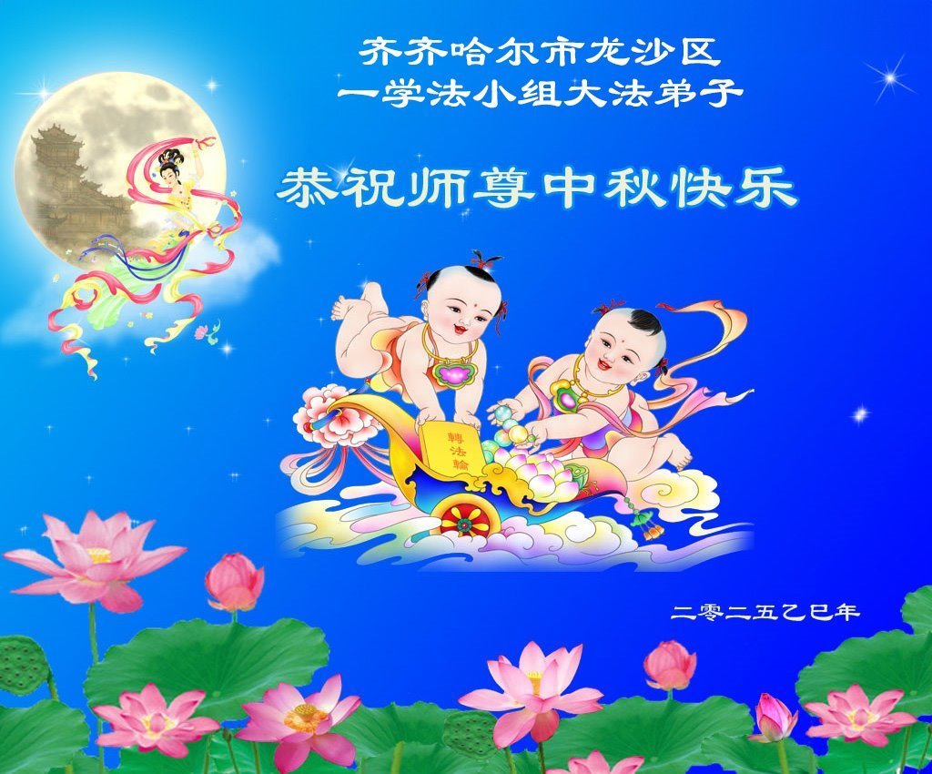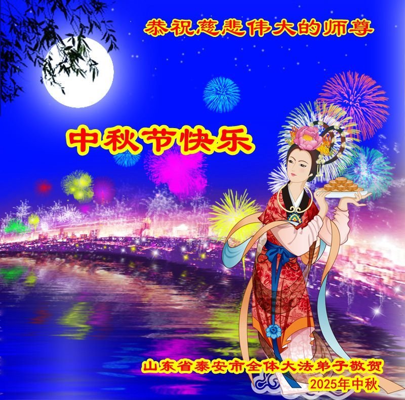 恭祝慈悲偉大的師父中秋節快樂!祝願全體大法弟子在修煉中堅守誓言,助師救度眾生,隨師父一起回歸真正的家園。(譯文)