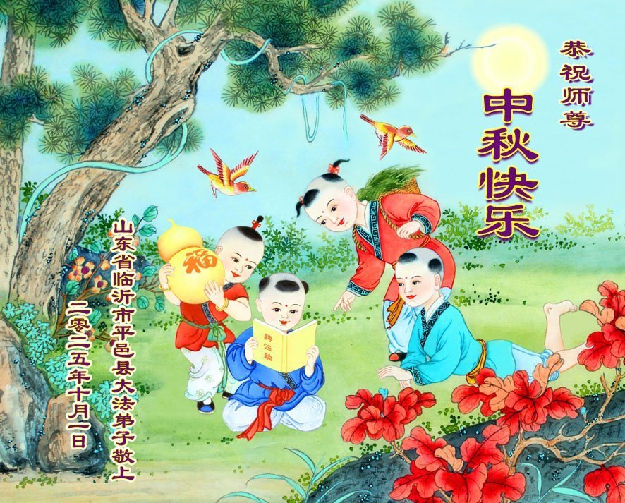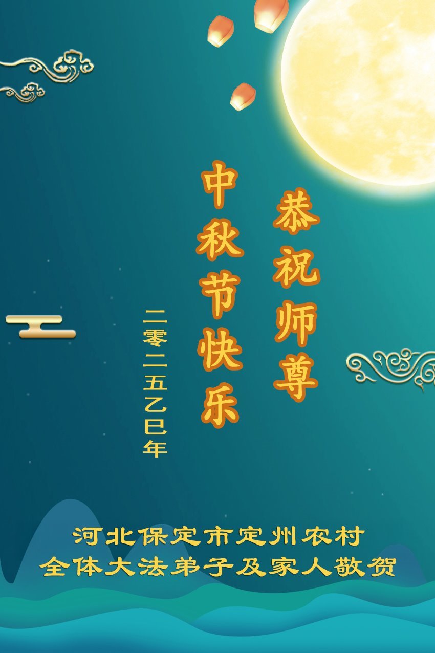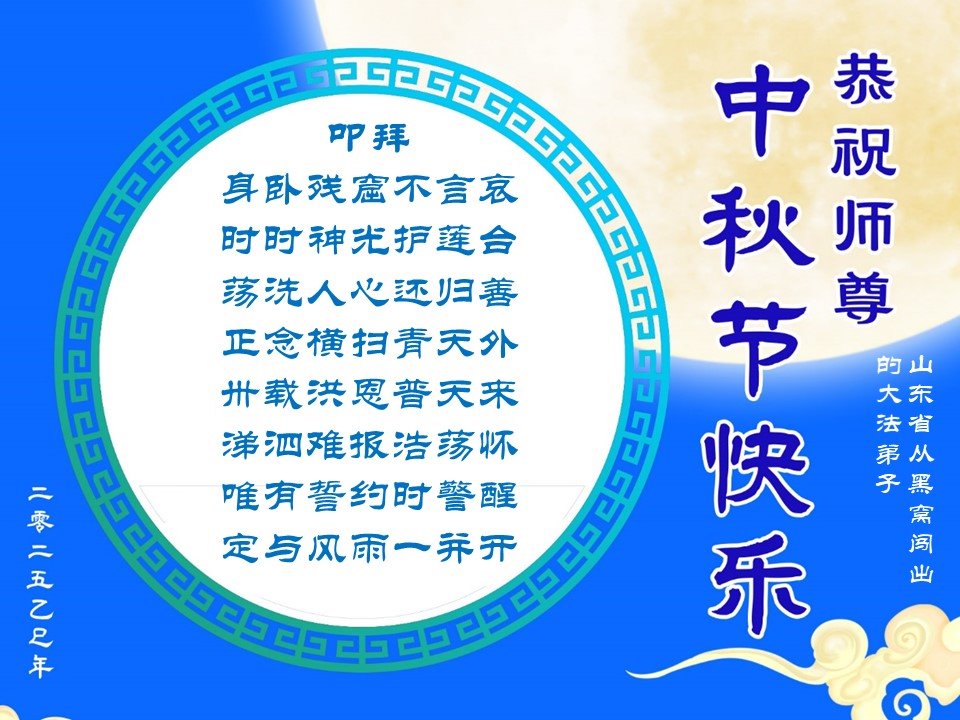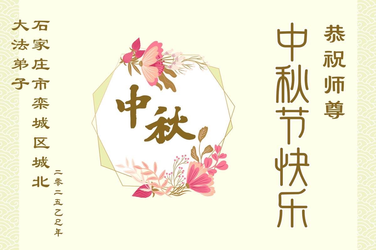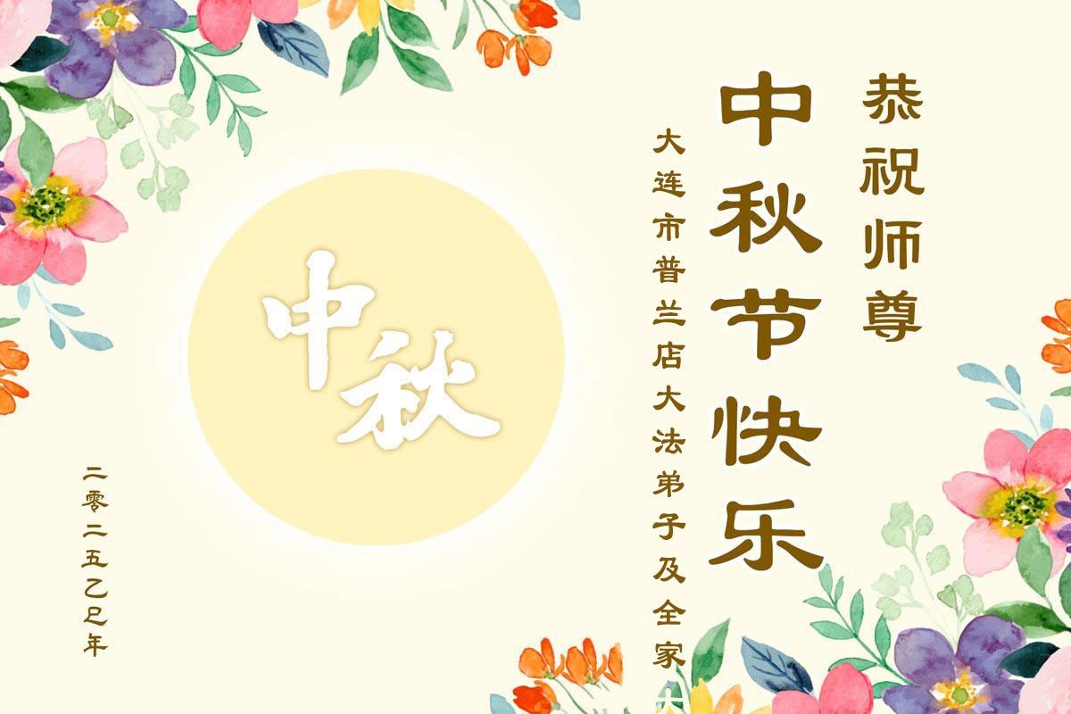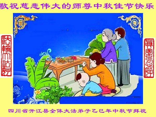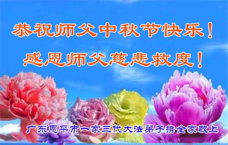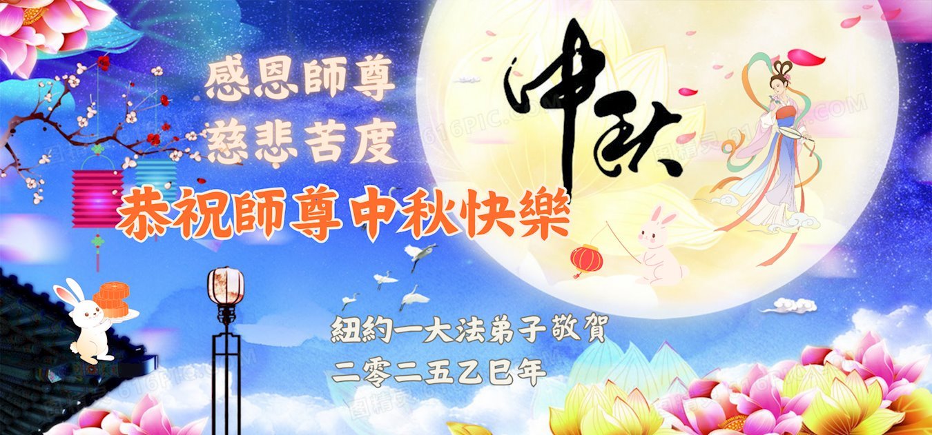恭祝慈悲偉大的師父中秋節快樂!祝願全體大法弟子在修煉中堅守誓言,助師救度眾生,隨師父一起回歸真正的家園。(譯文)