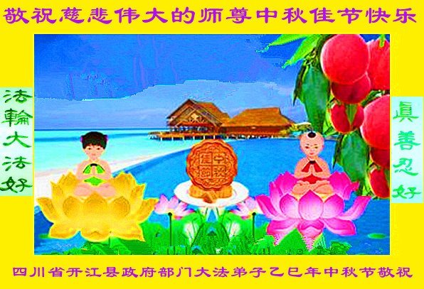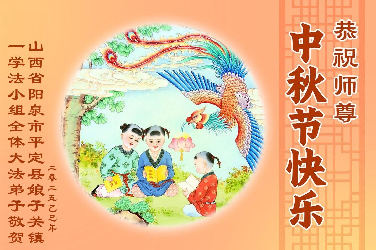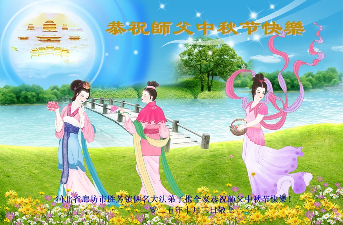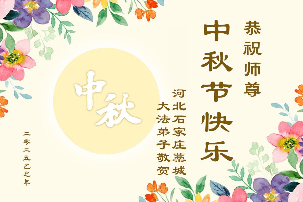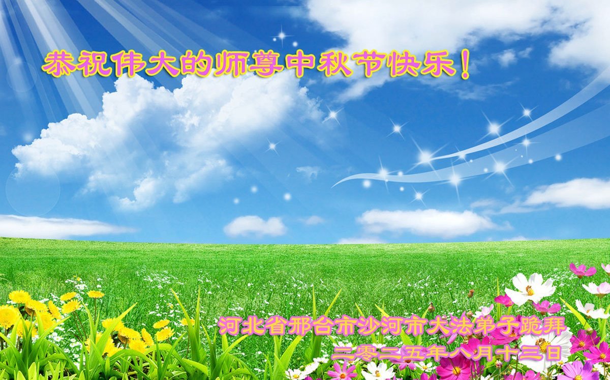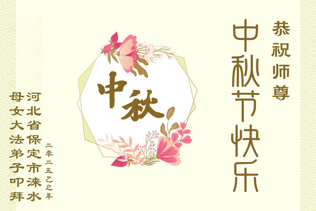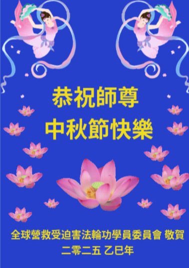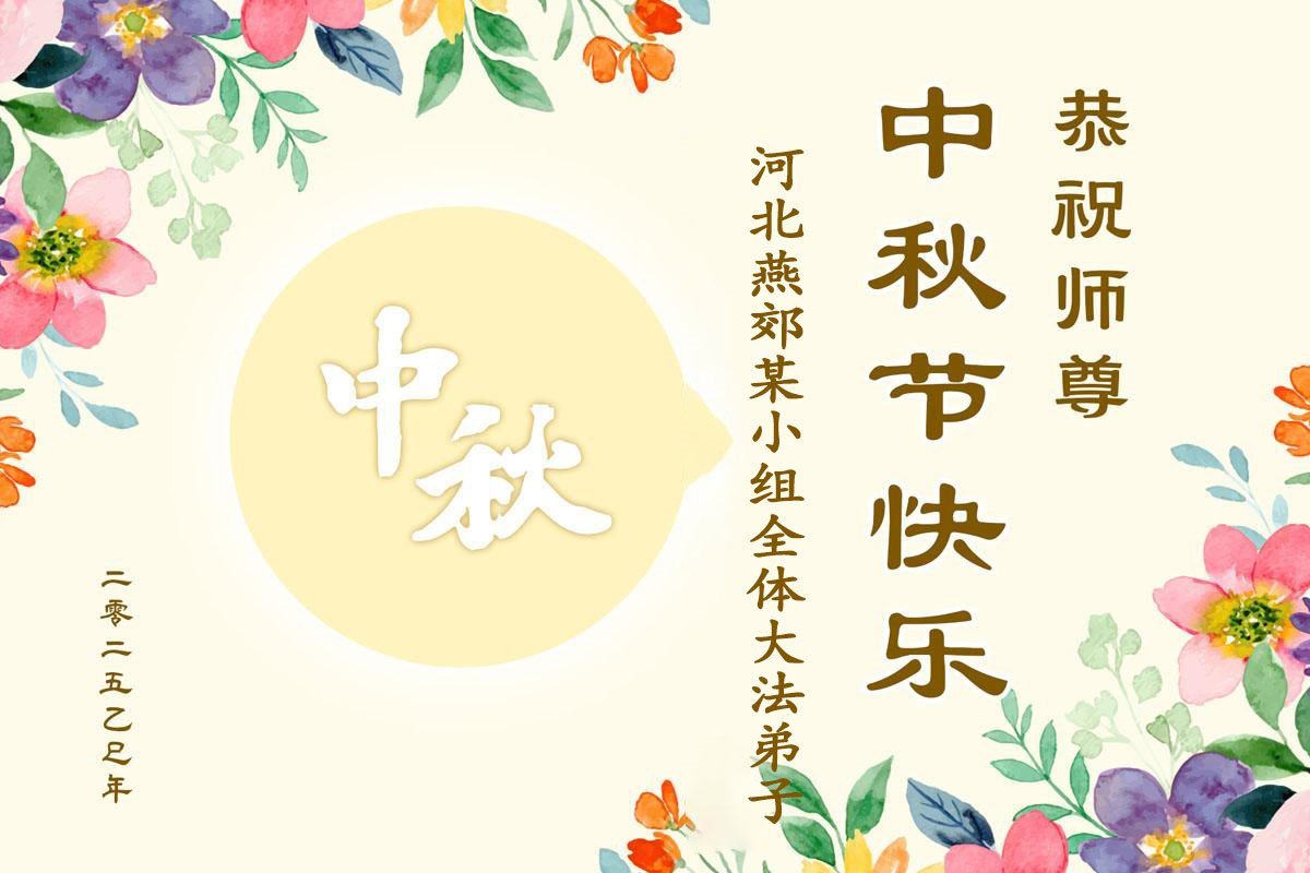 恭祝慈悲偉大的師父中秋節快樂!祝願全體大法弟子在修煉中堅守誓言,助師救度眾生,隨師父一起回歸真正的家園。(譯文)
