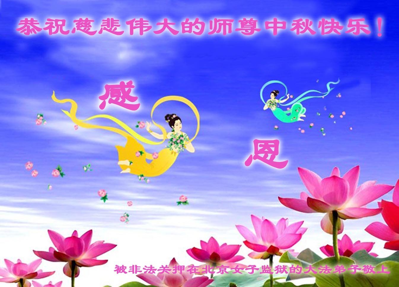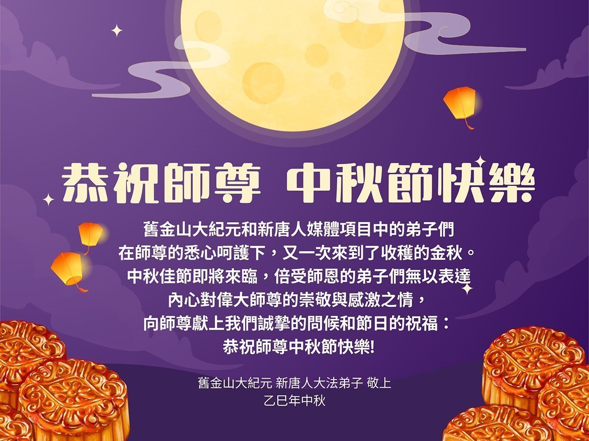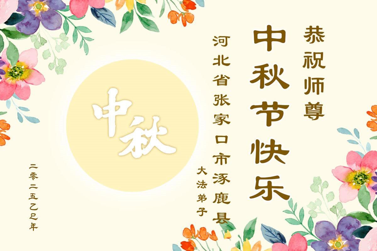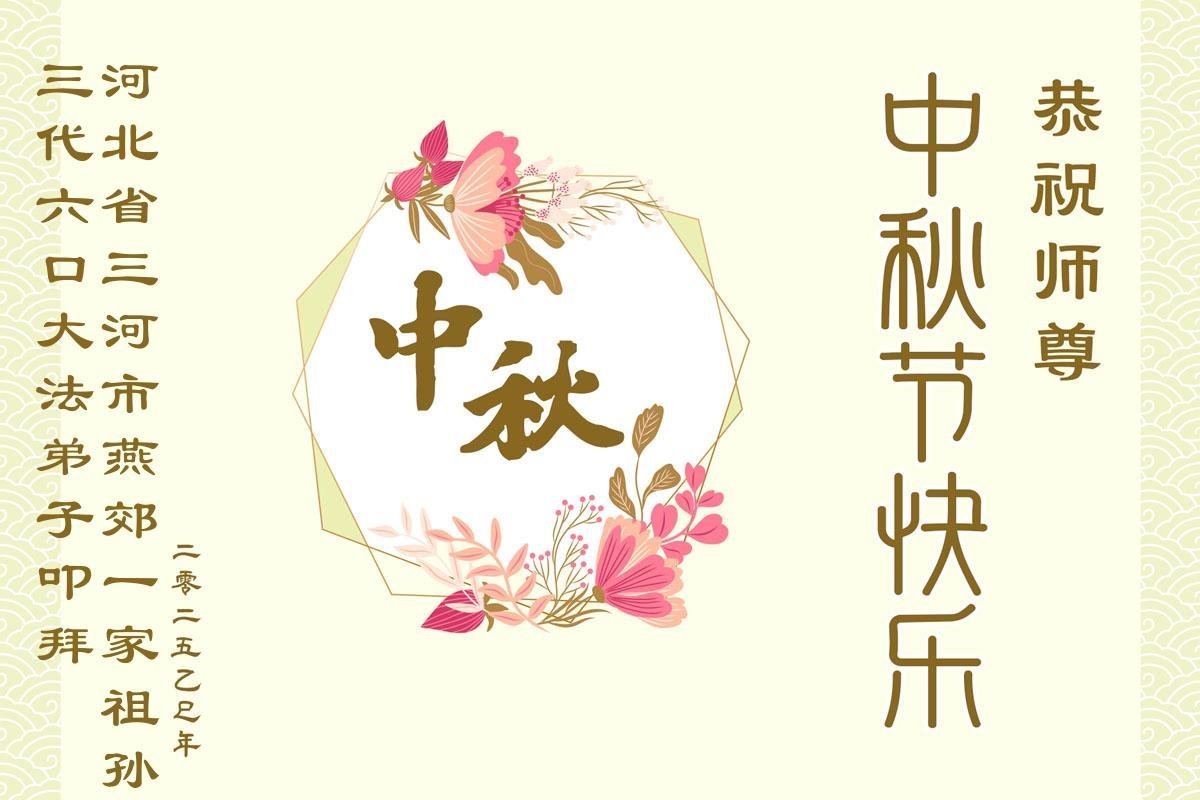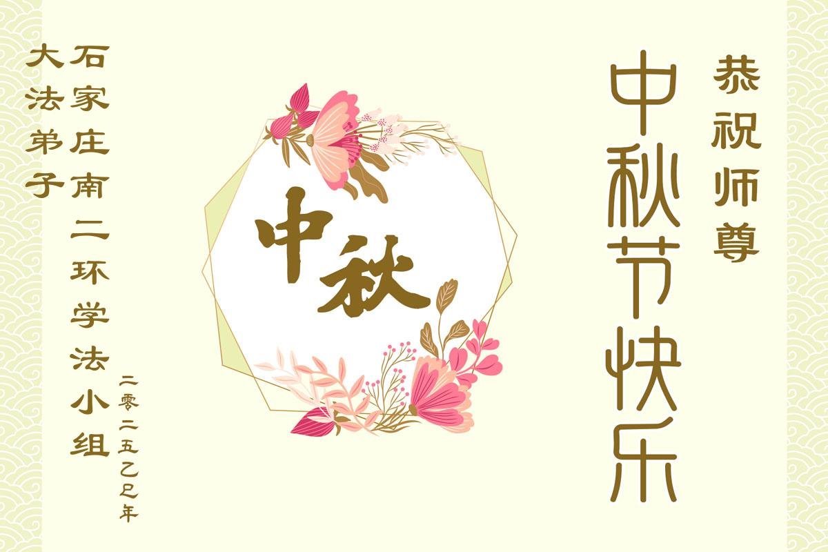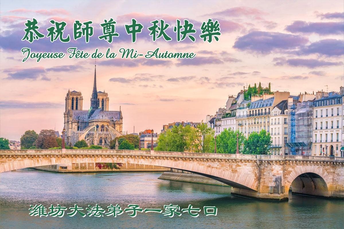 恭祝慈悲偉大的師父中秋節快樂!祝願全體大法弟子在修煉中堅守誓言,助師救度眾生,隨師父一起回歸真正的家園。(譯文)
