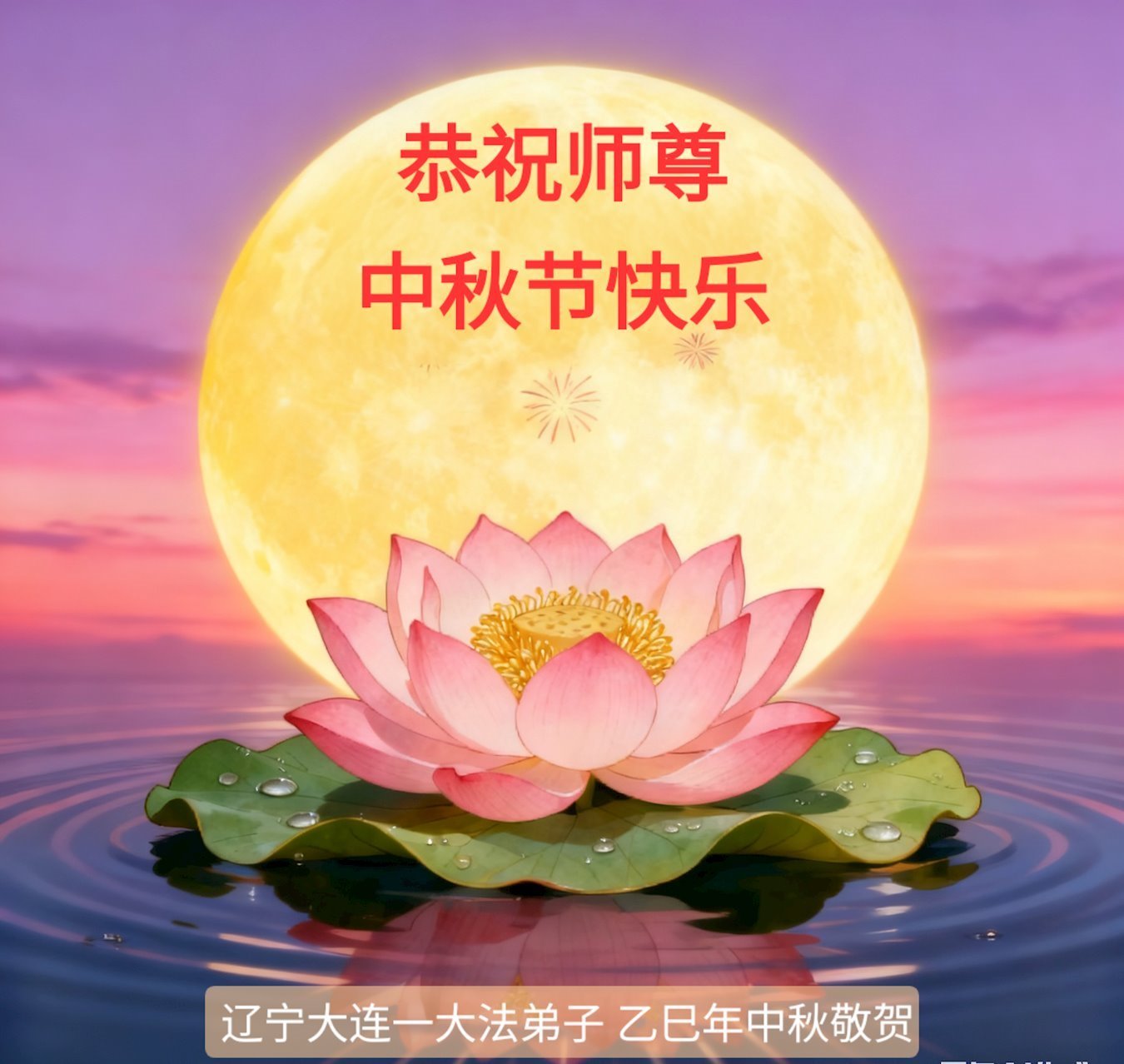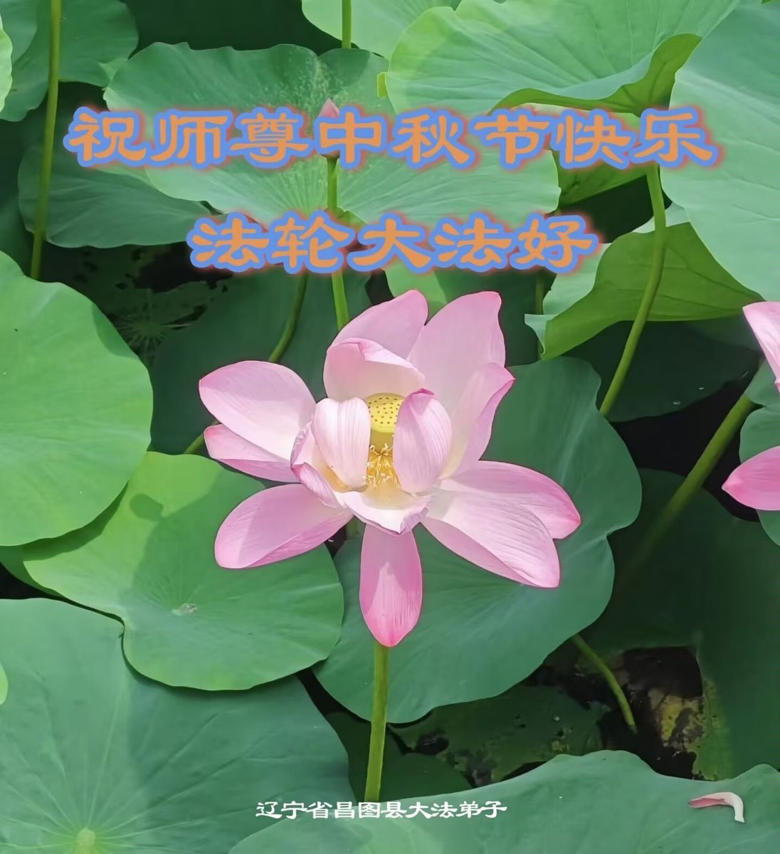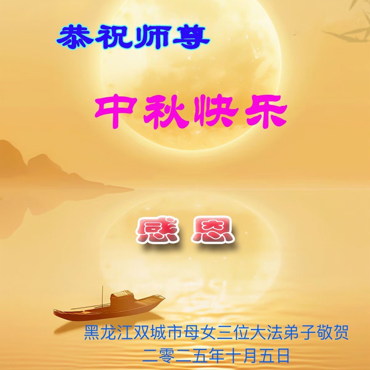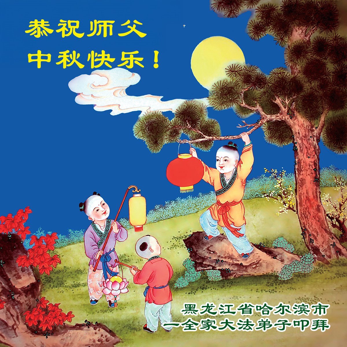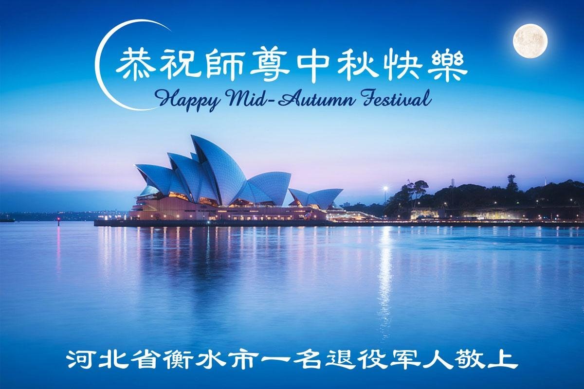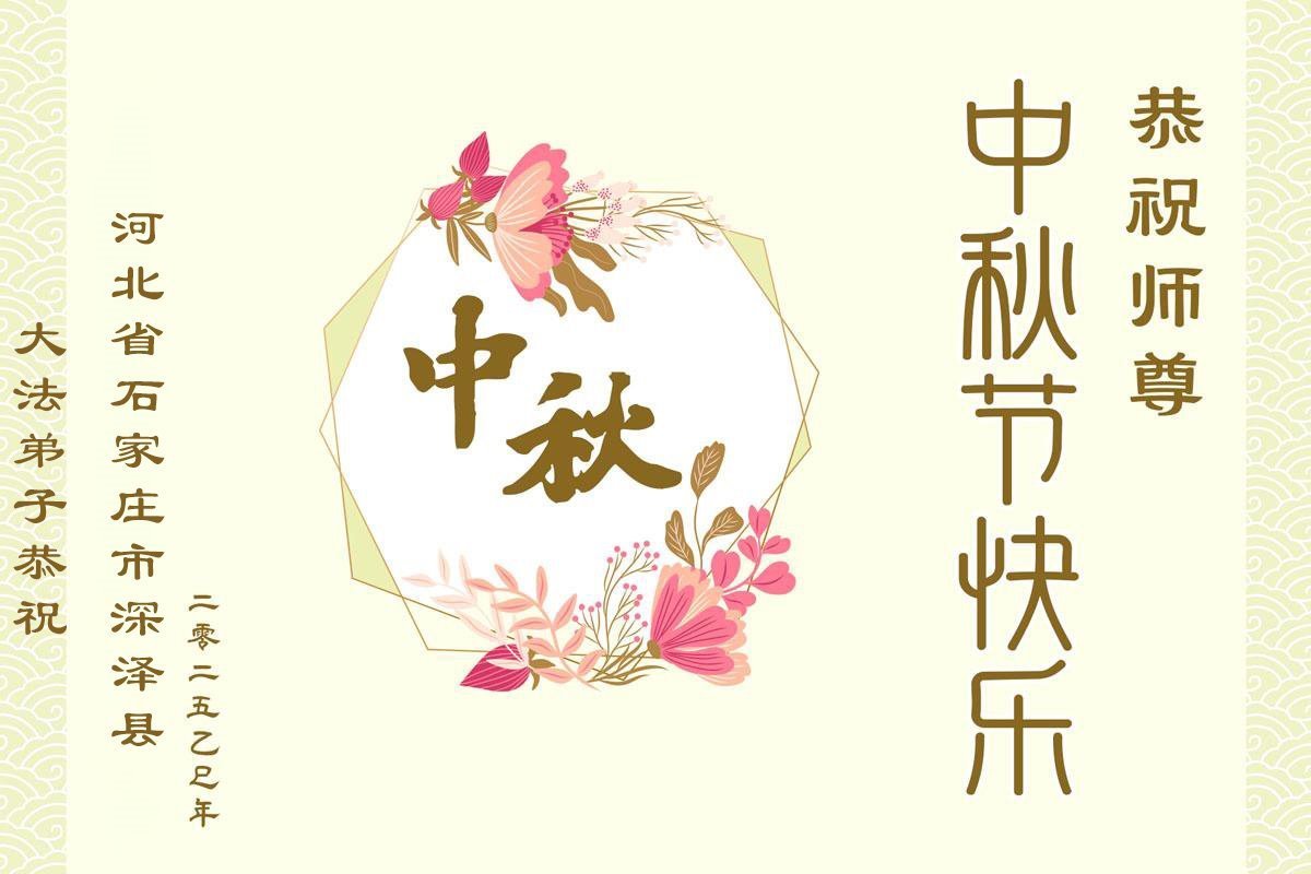 恭祝慈悲偉大的師父中秋節快樂!祝願全體大法弟子在修煉中堅守誓言,助師救度眾生,隨師父一起回歸真正的家園。(譯文)