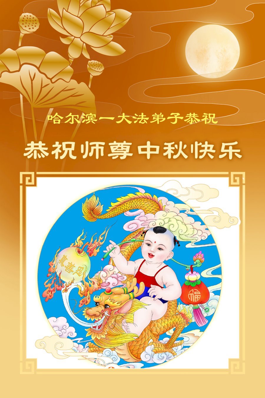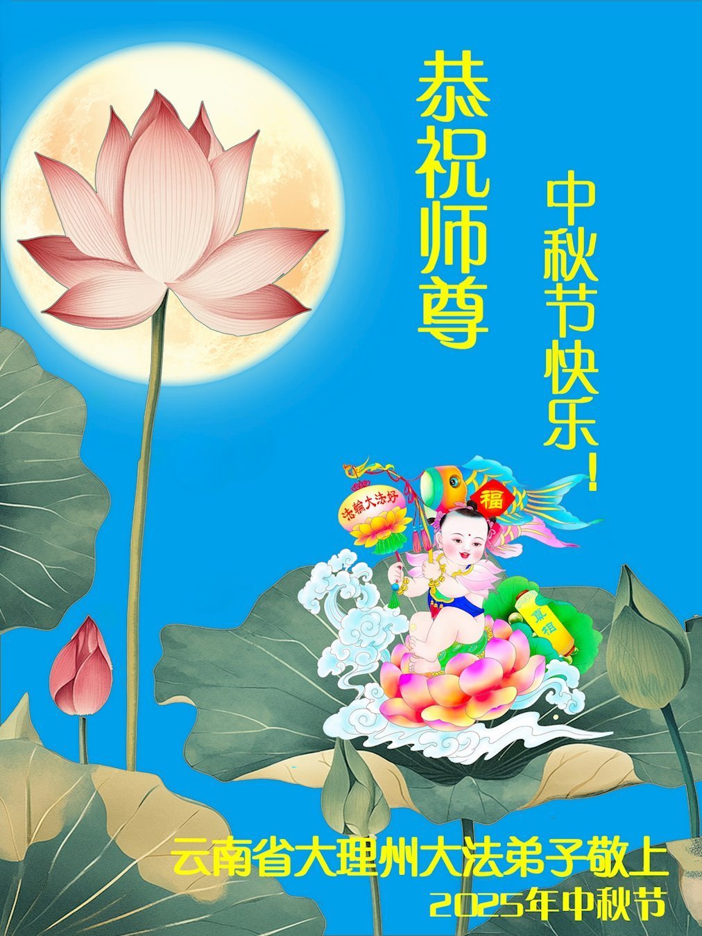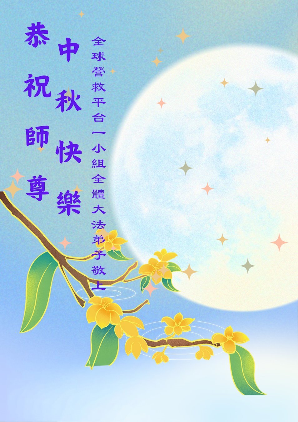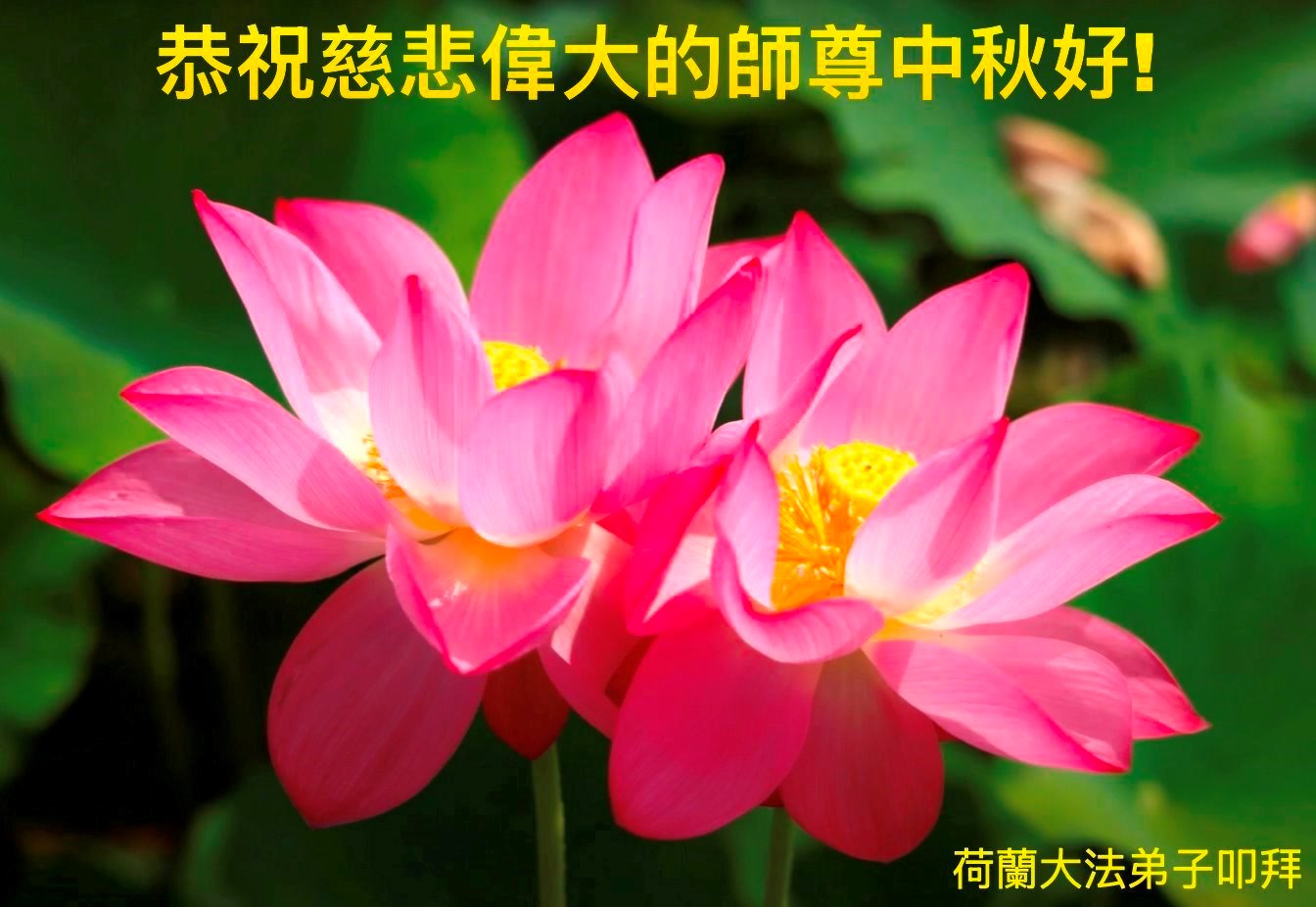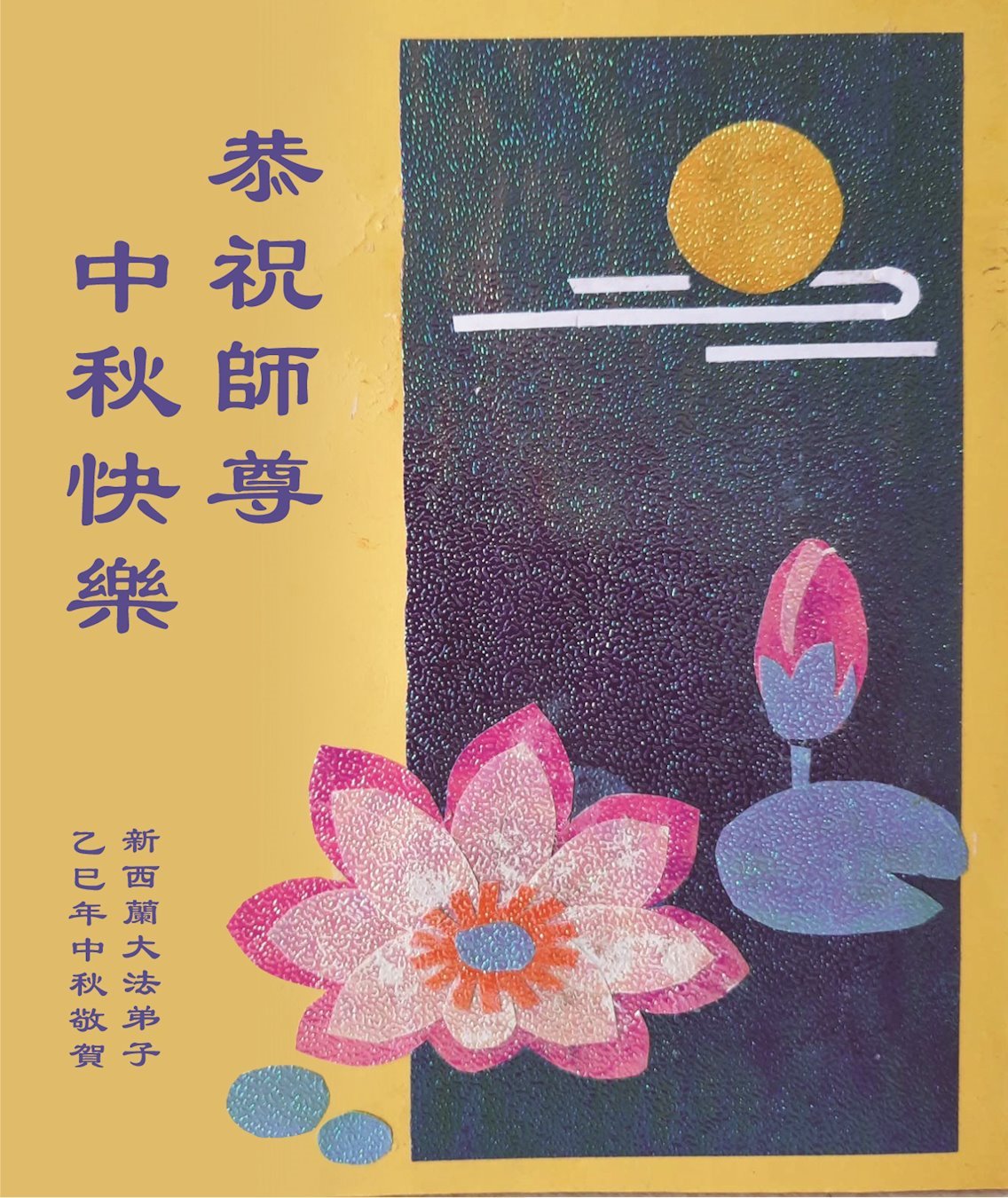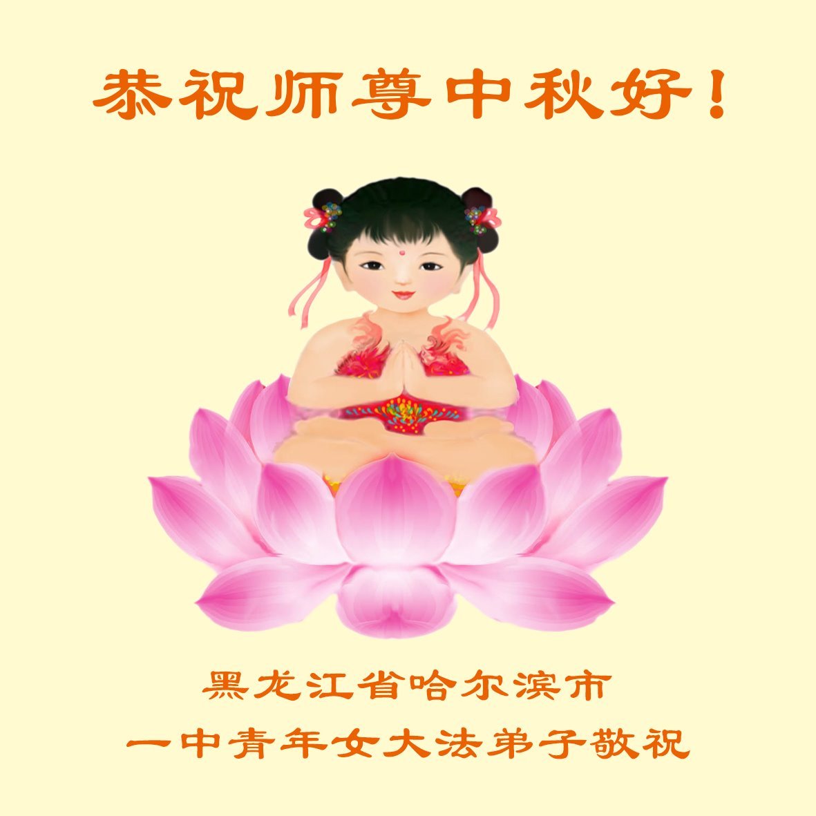 恭祝慈悲偉大的師父中秋節快樂!祝願全體大法弟子在修煉中堅守誓言,助師救度眾生,隨師父一起回歸真正的家園。(譯文)