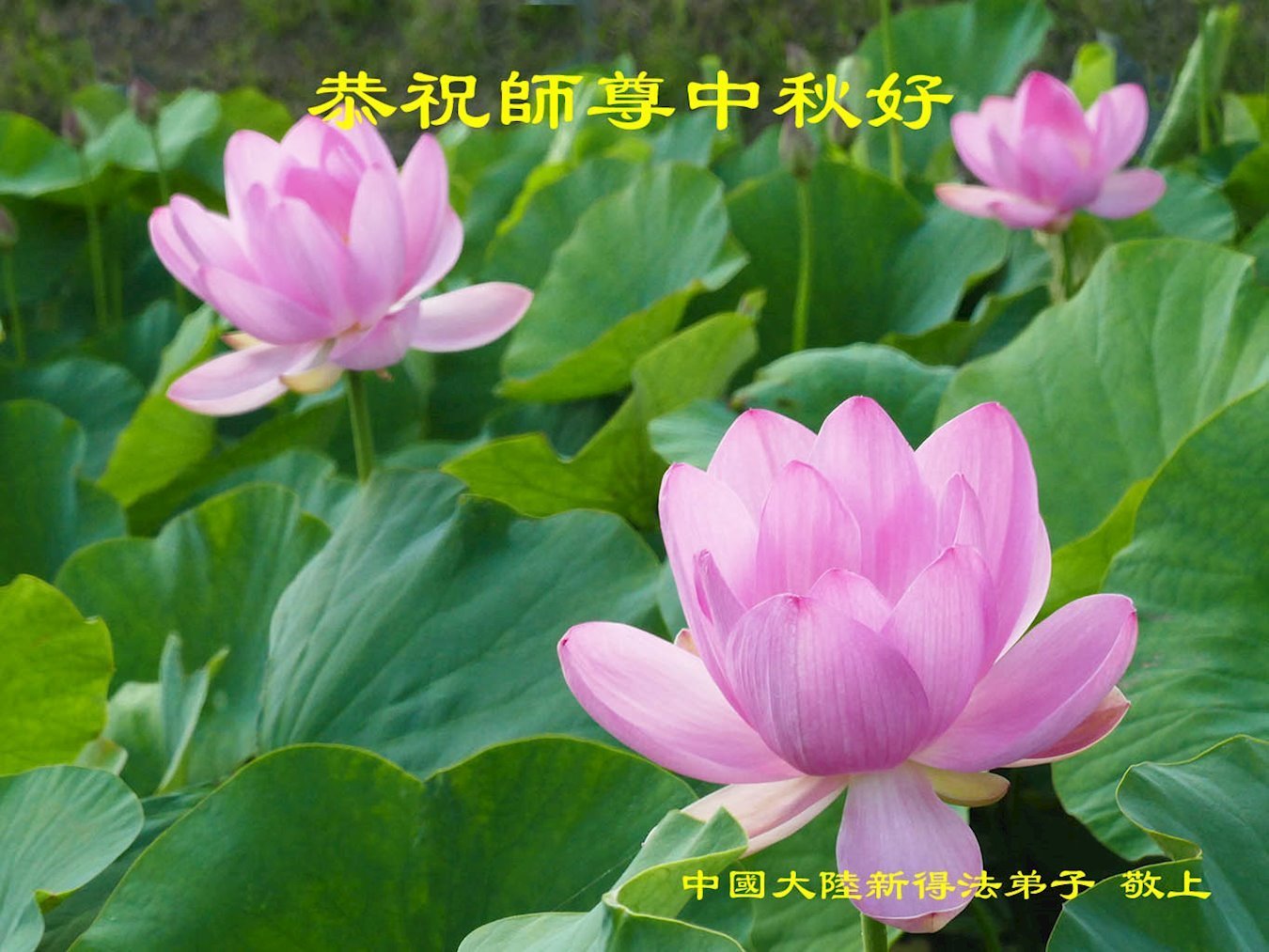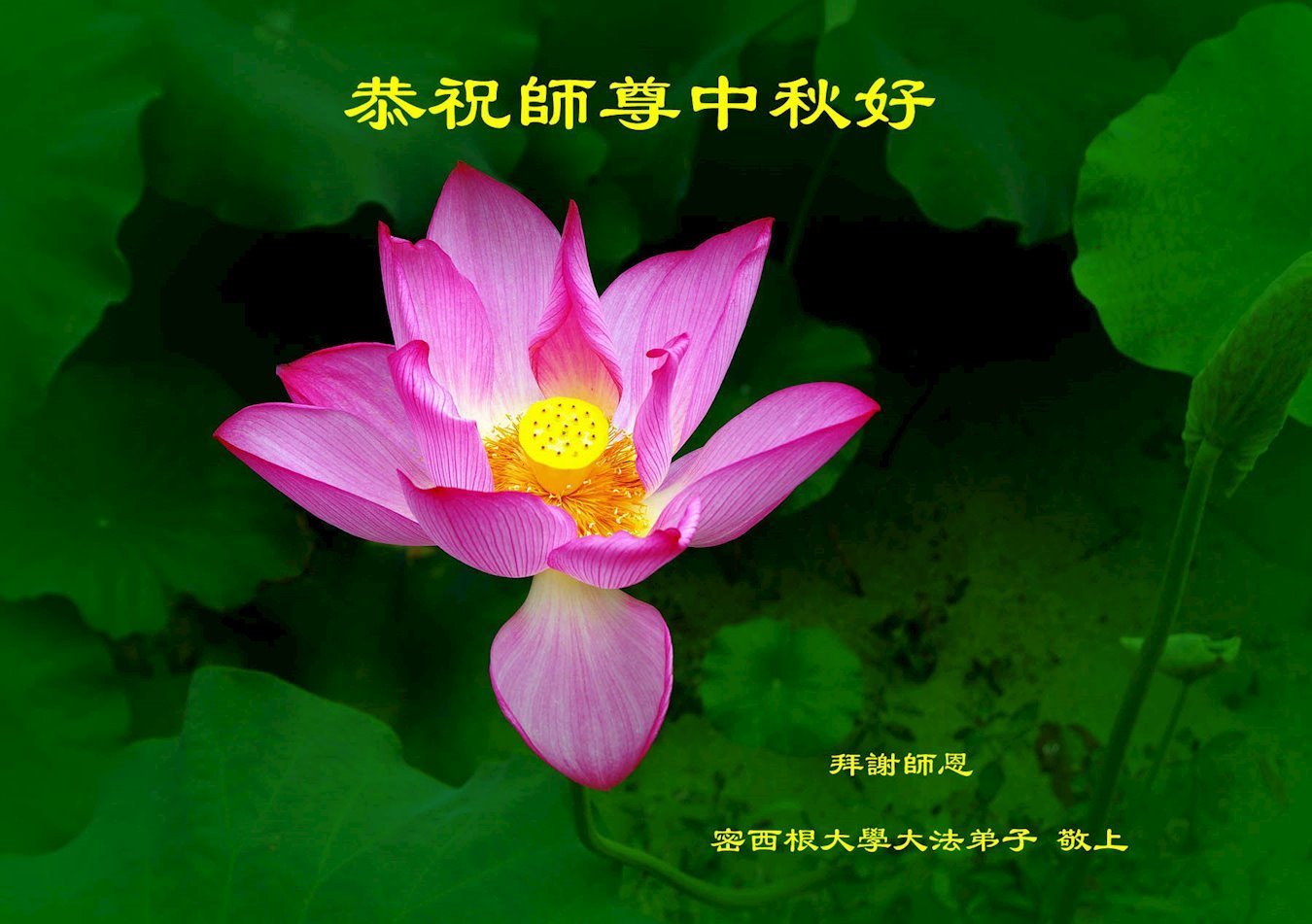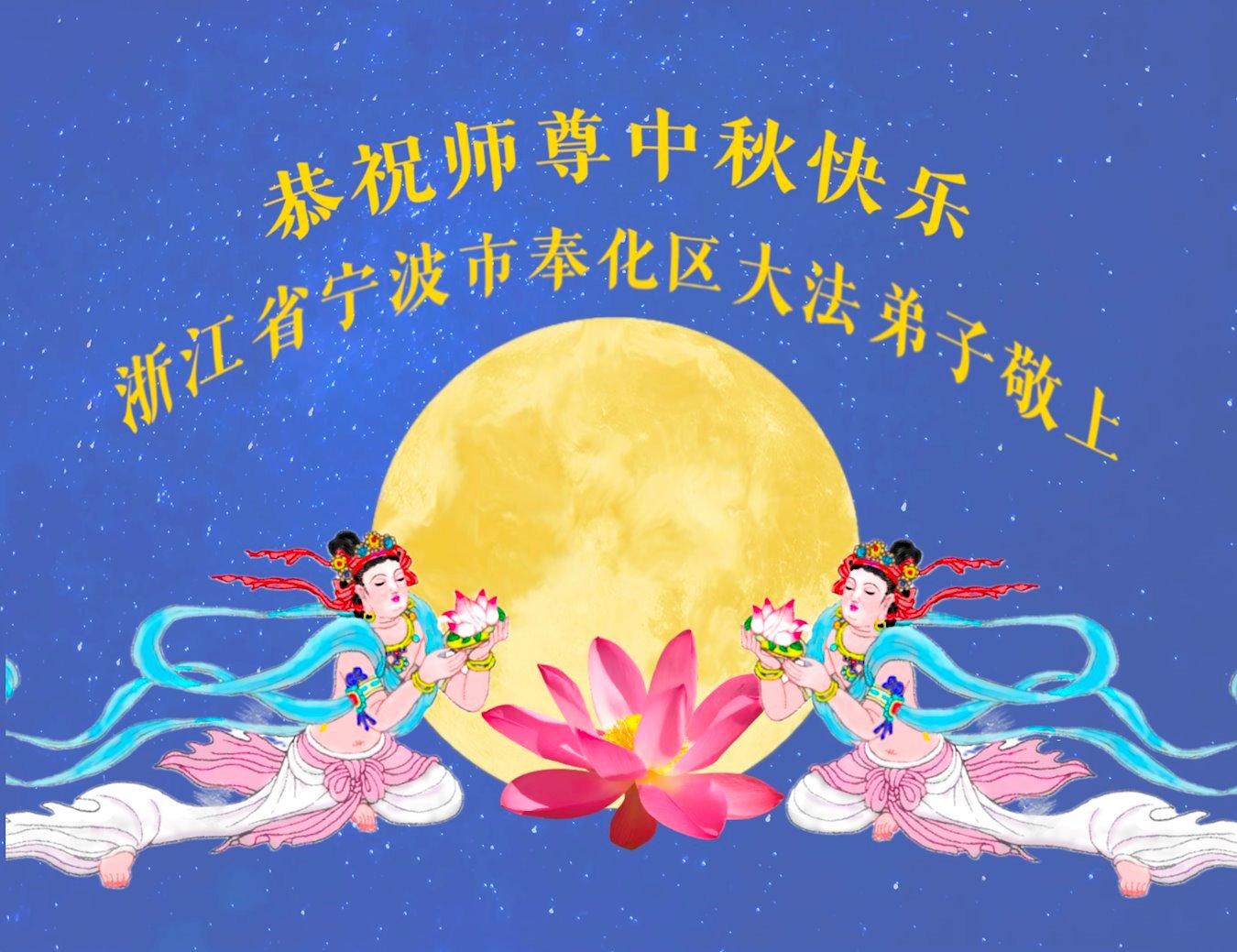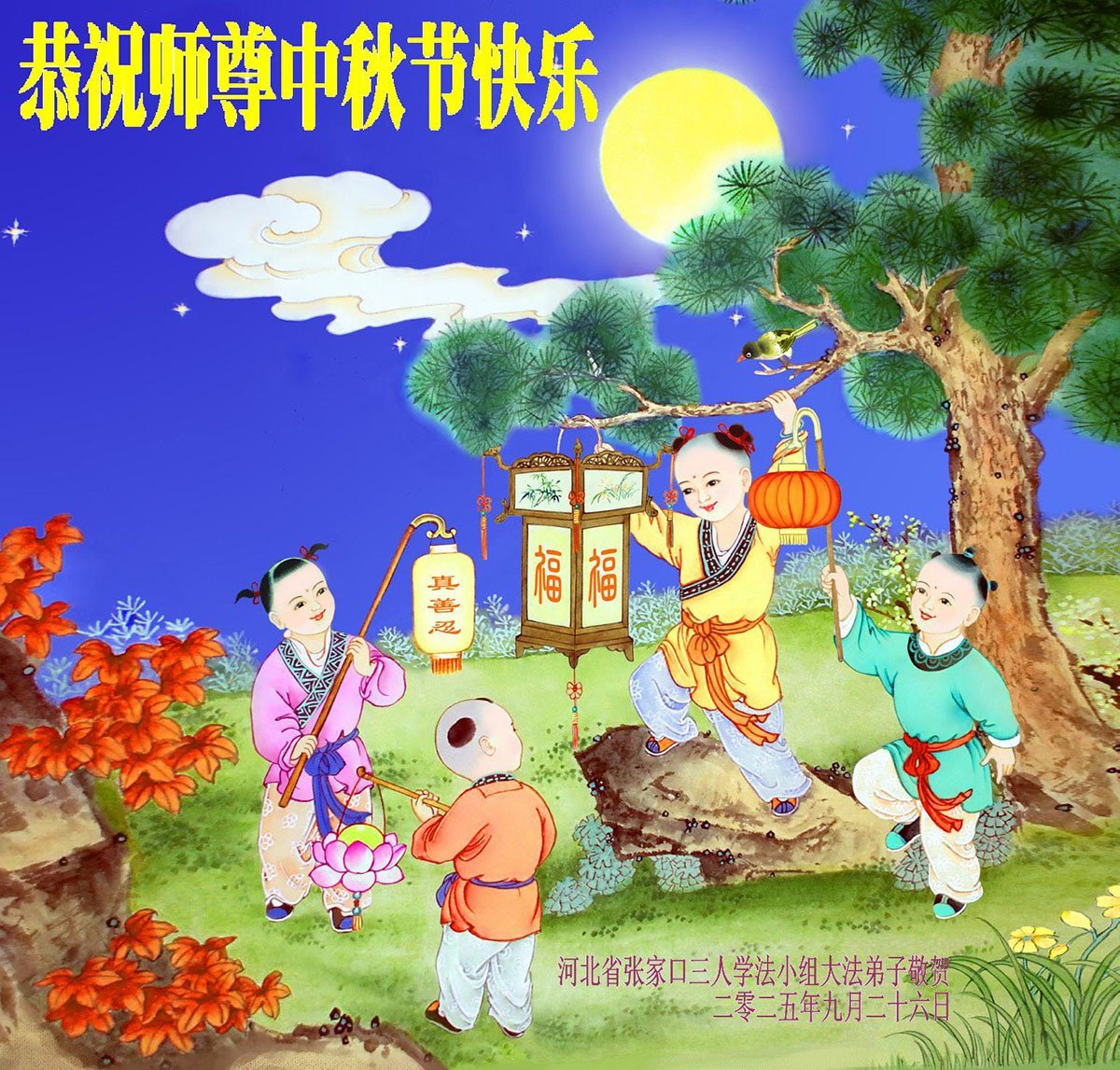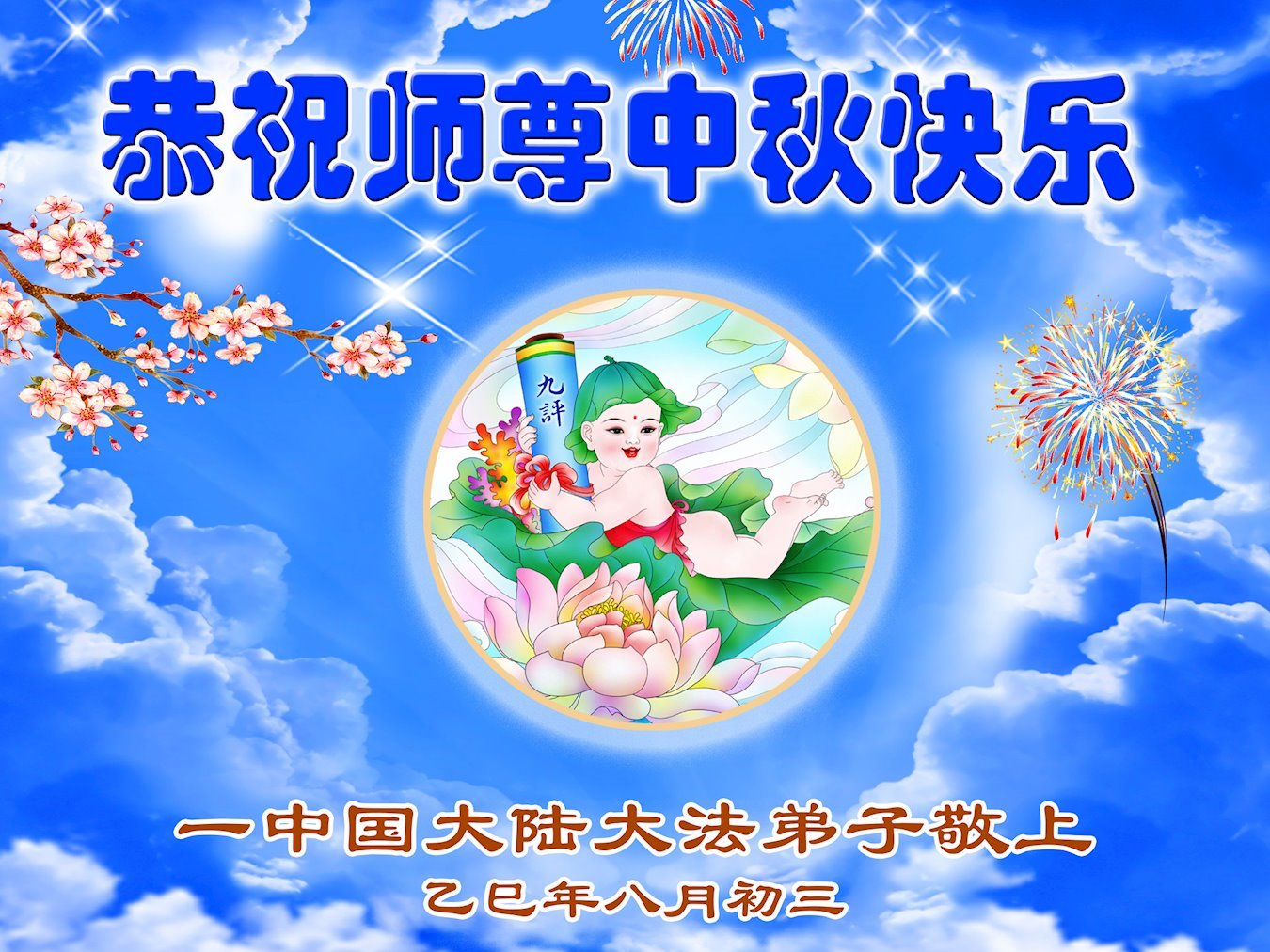 恭祝慈悲偉大的師父中秋節快樂!祝願全體大法弟子在修煉中堅守誓言,助師救度眾生,隨師父一起回歸真正的家園。(譯文)