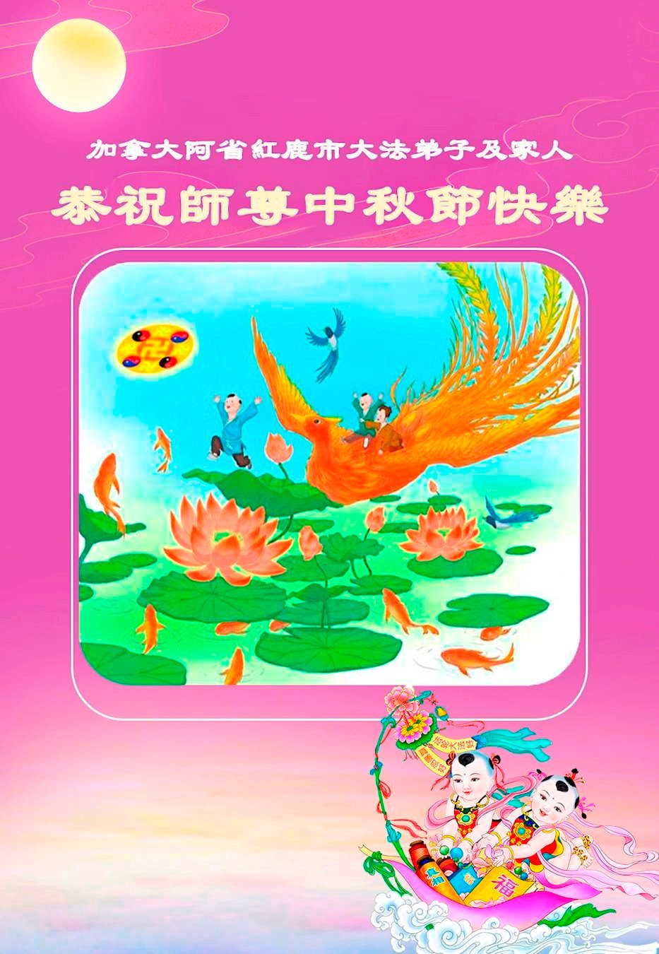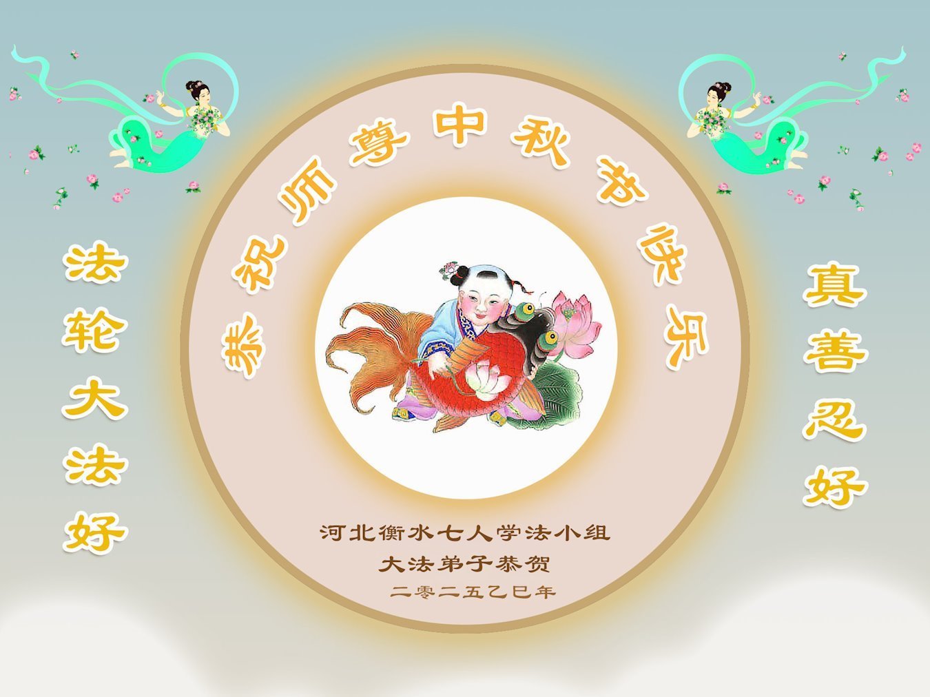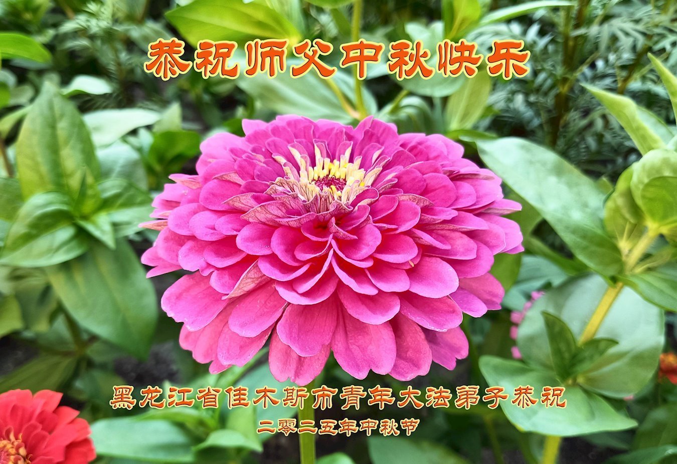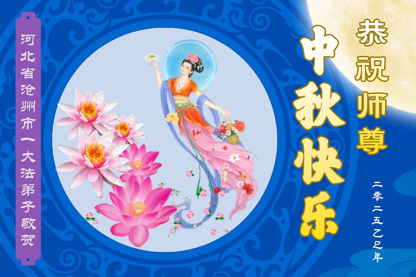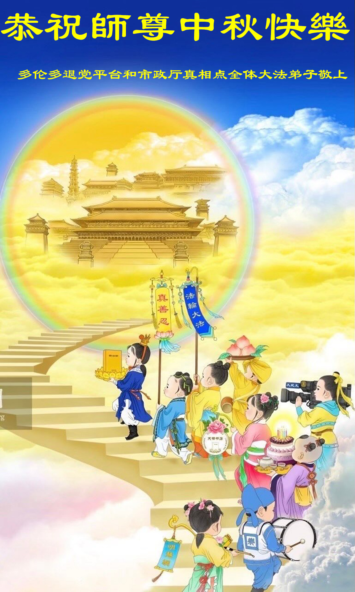 恭祝慈悲偉大的師父中秋節快樂!祝願全體大法弟子在修煉中堅守誓言,助師救度眾生,隨師父一起回歸真正的家園。(譯文)