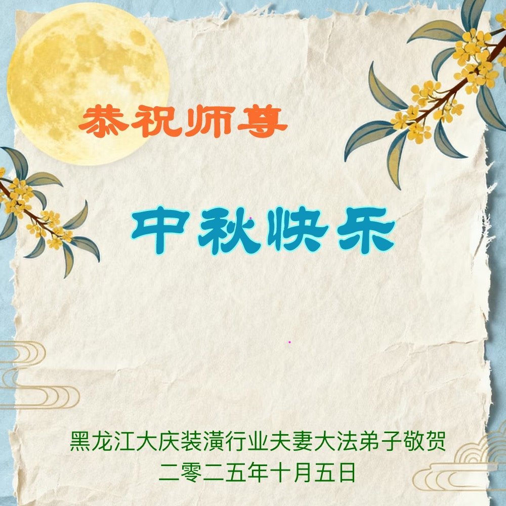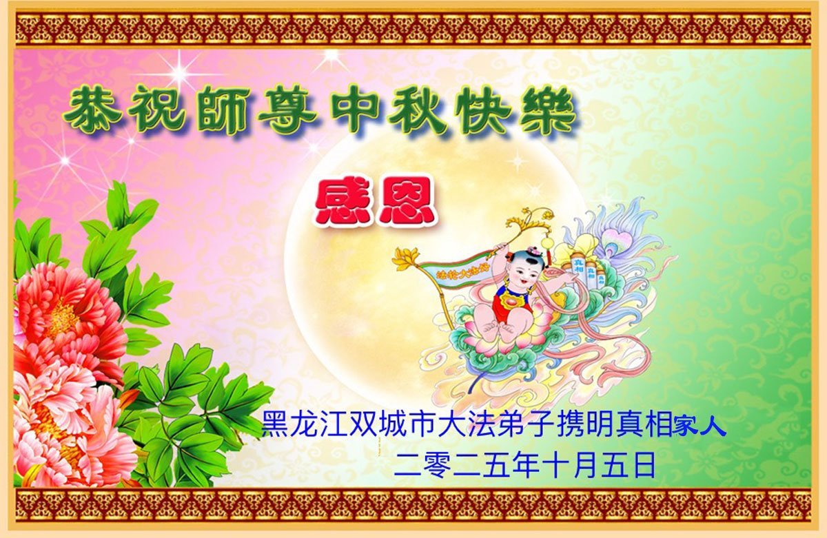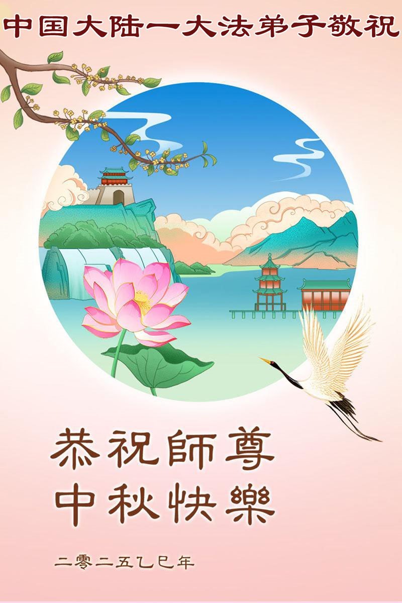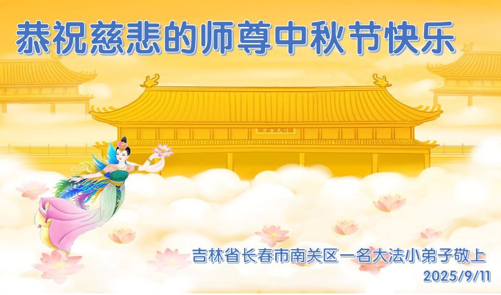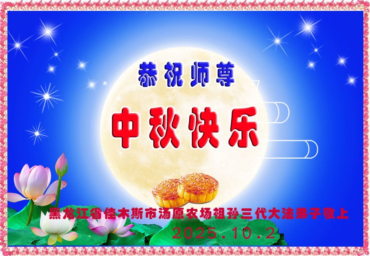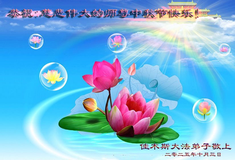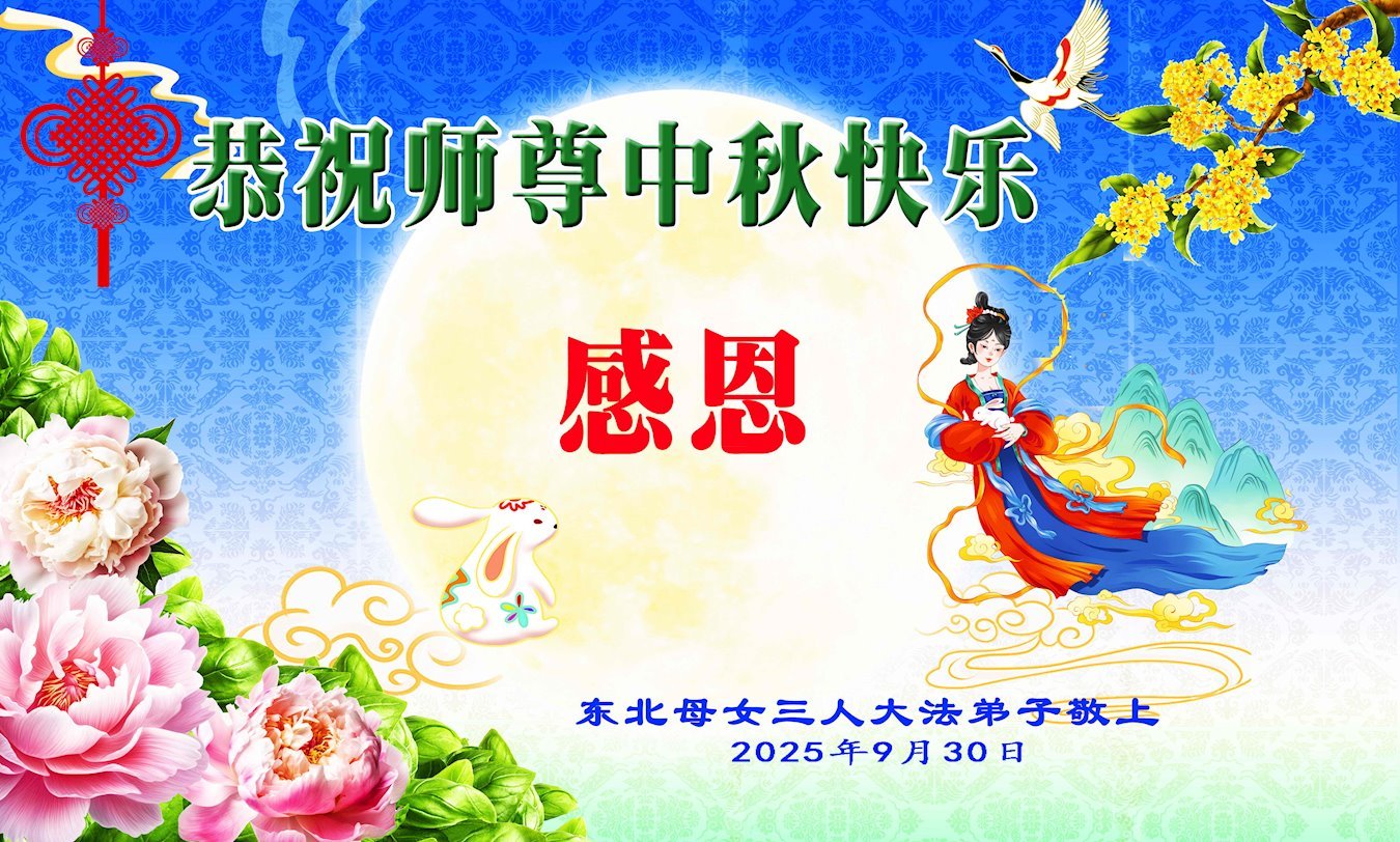 【明慧網二零二五年十月六日】在這闔家團圓的中秋佳節,億萬大法弟子感恩師尊救度!大法弟子們時時感受到師尊的守護和指引,堅定的走在大法修煉之路上,不負師尊的囑託,不負眾生的期盼,走向美好的家園。