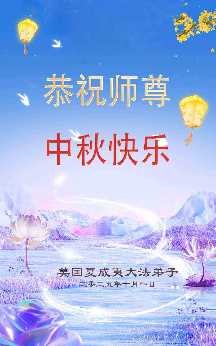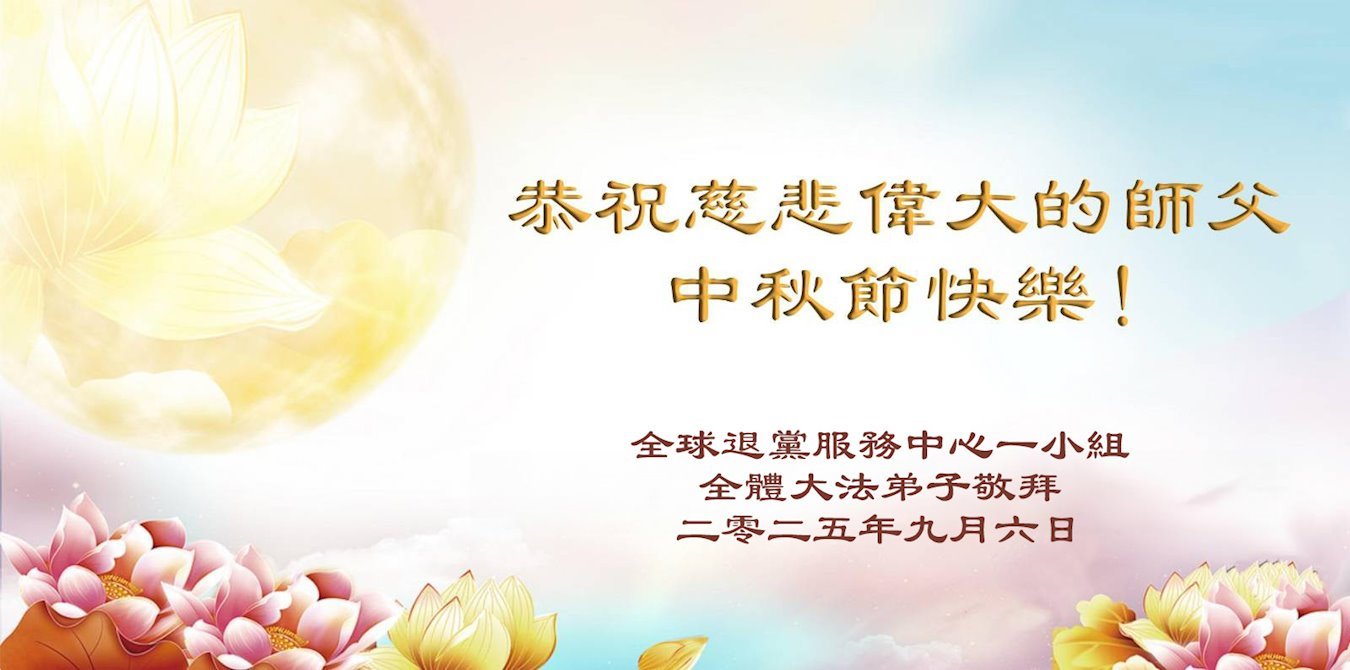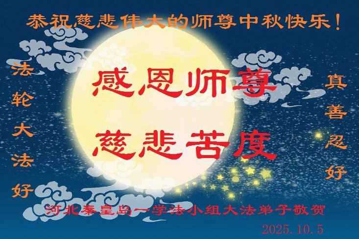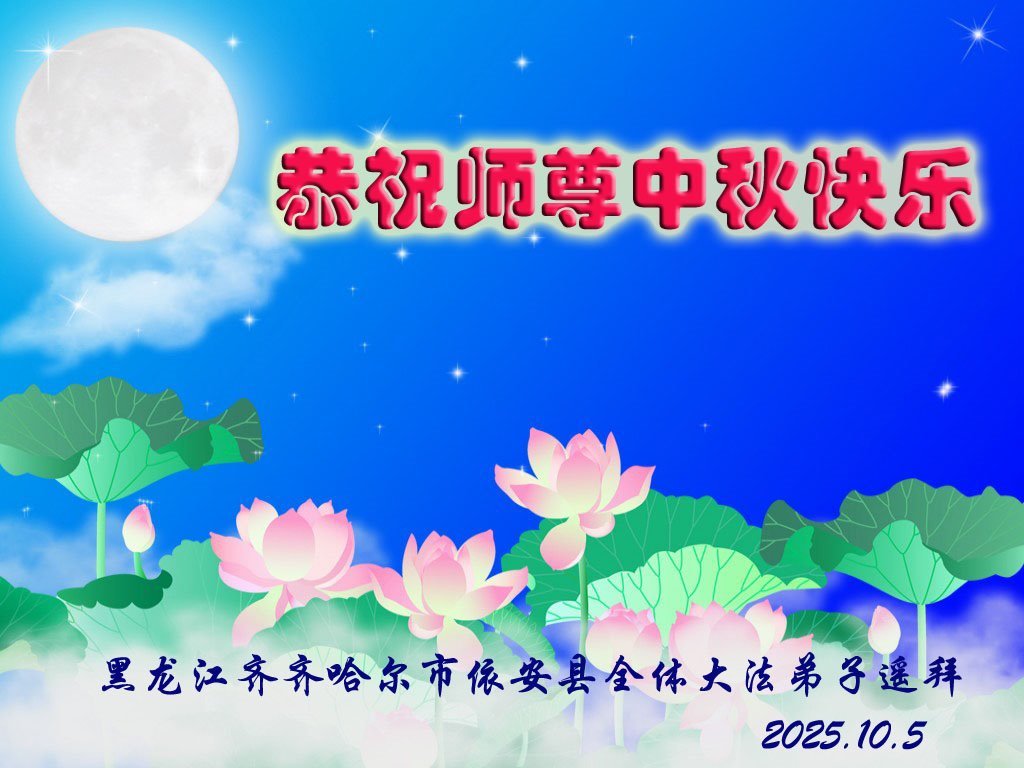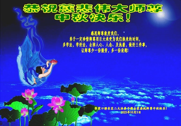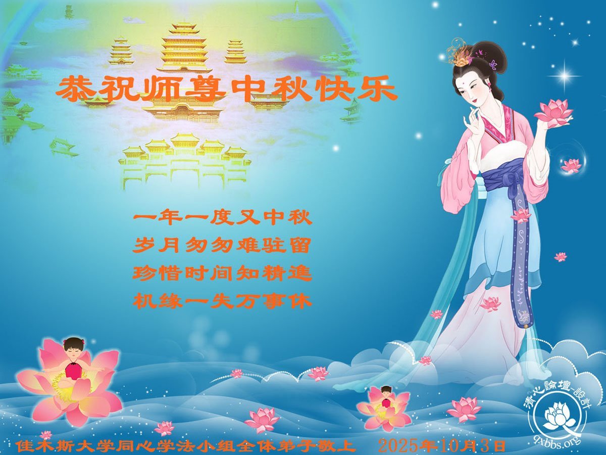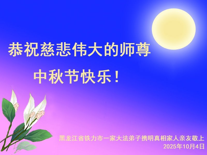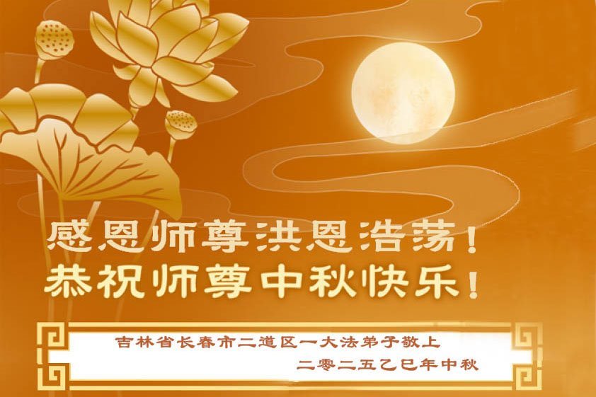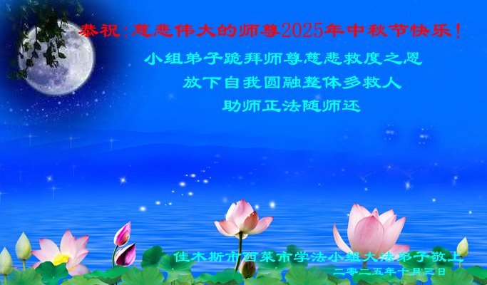 【明慧網二零二五年十月六日】在這闔家團圓的中秋佳節,億萬大法弟子感恩師尊救度!大法弟子們時時感受到師尊的守護和指引,堅定的走在大法修煉之路上,不負師尊的囑託,不負眾生的期盼,走向美好的家園。
