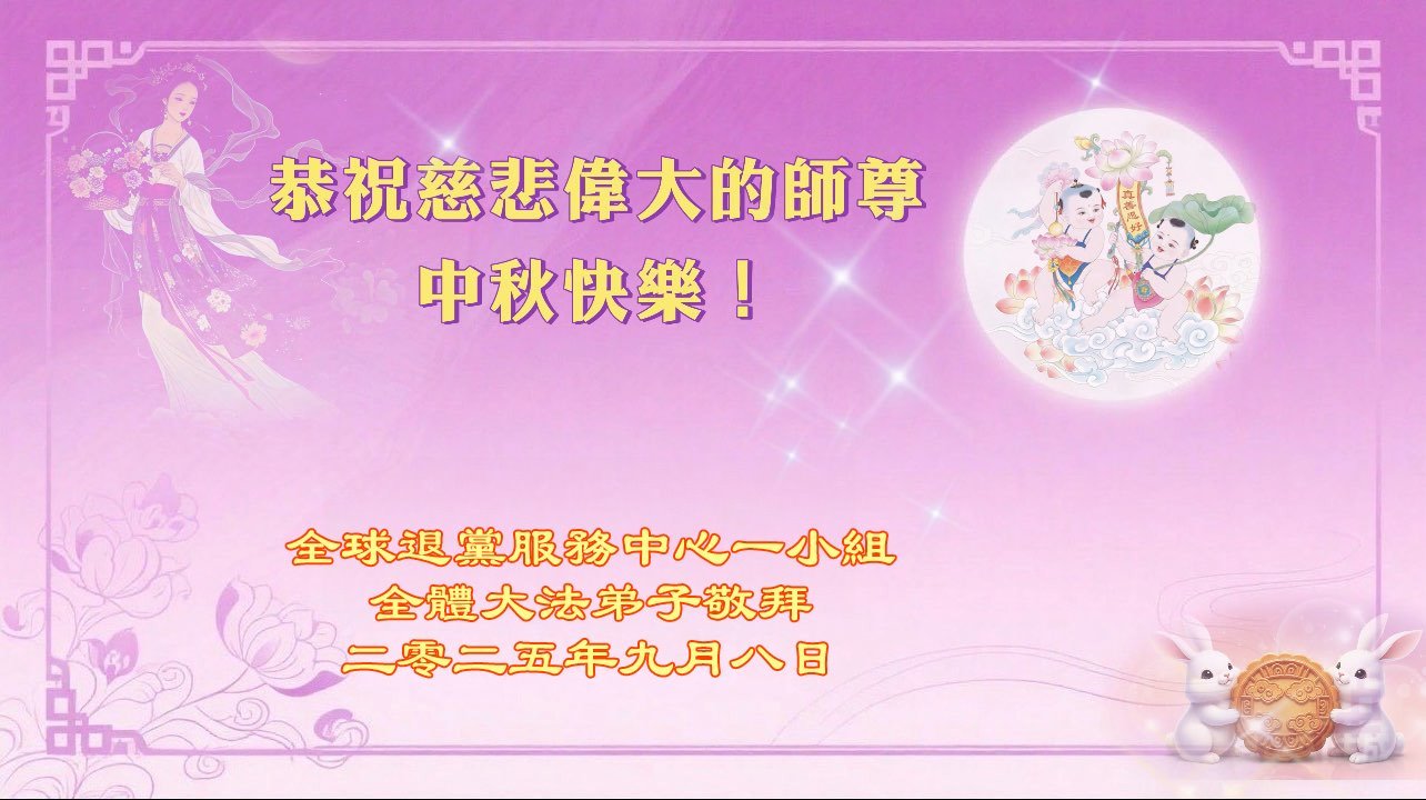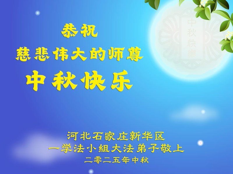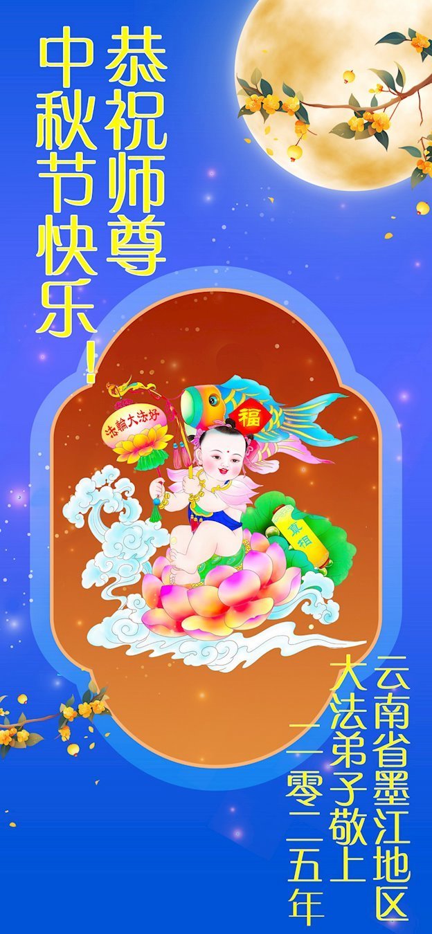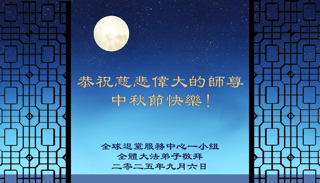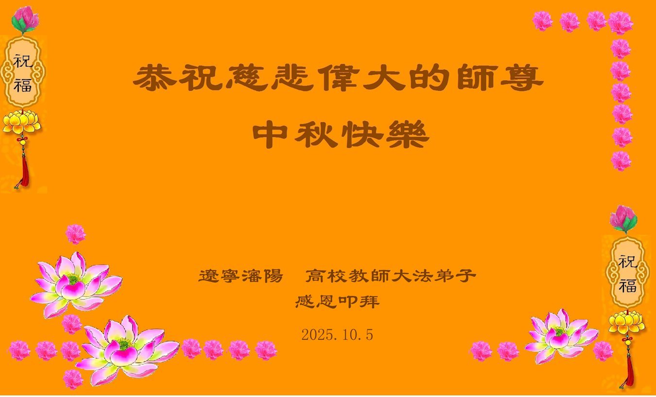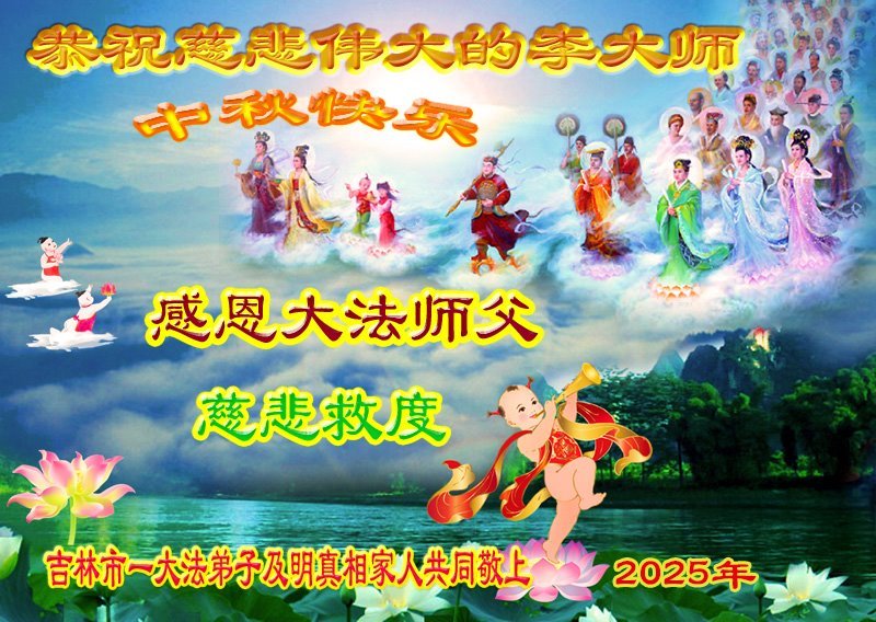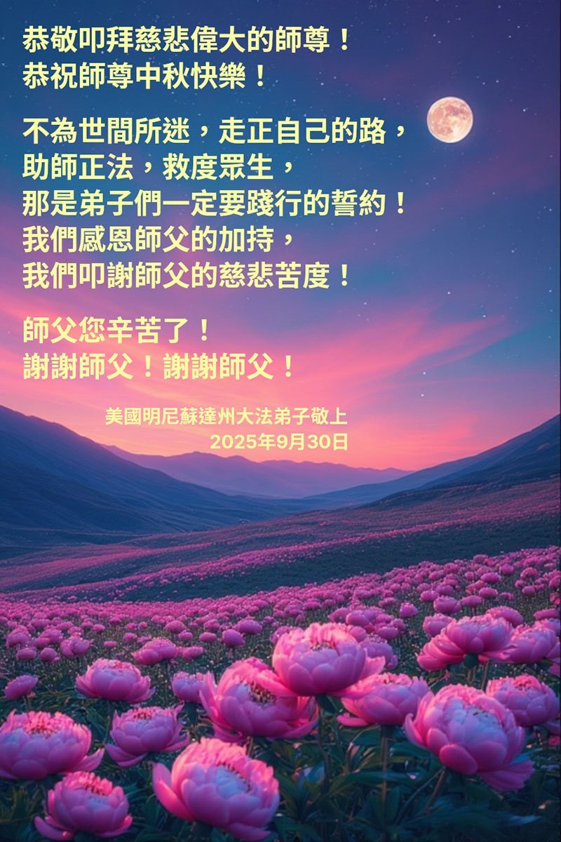 【明慧網二零二五年十月六日】在這闔家團圓的中秋佳節,億萬大法弟子感恩師尊救度!大法弟子們時時感受到師尊的守護和指引,堅定的走在大法修煉之路上,不負師尊的囑託,不負眾生的期盼,走向美好的家園。