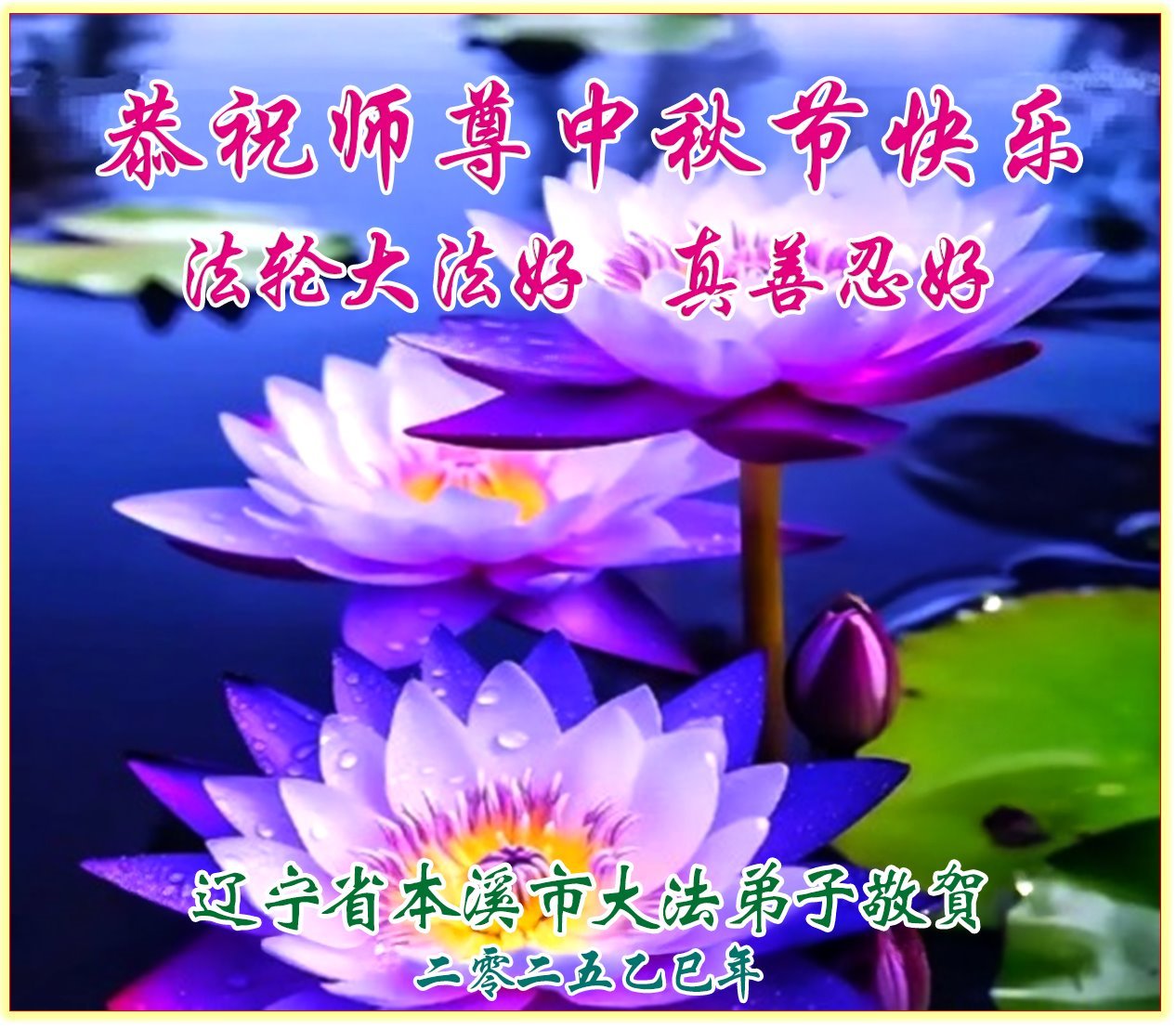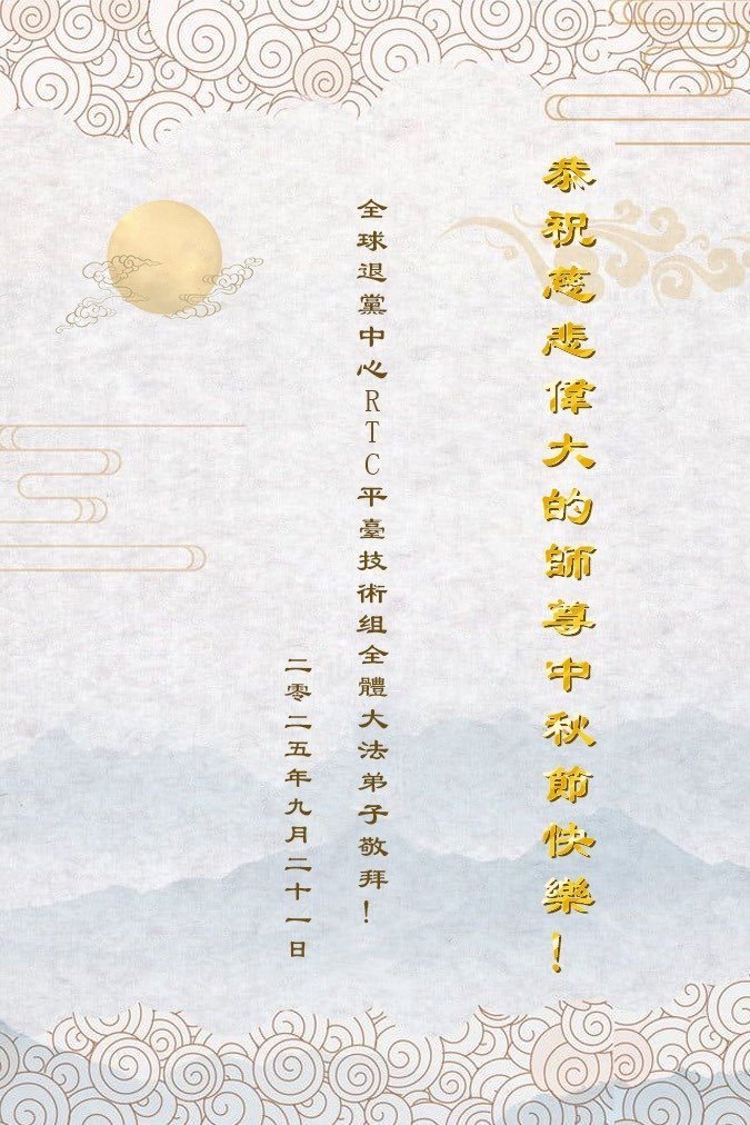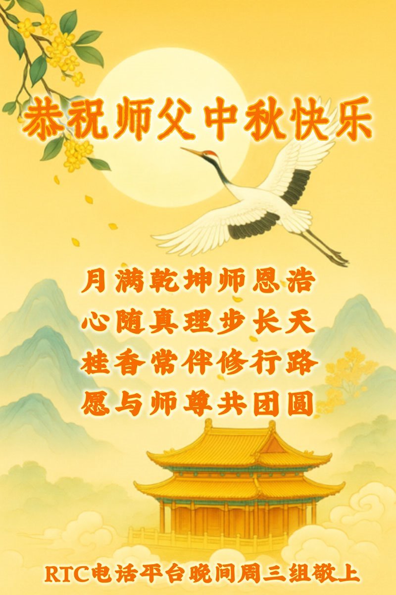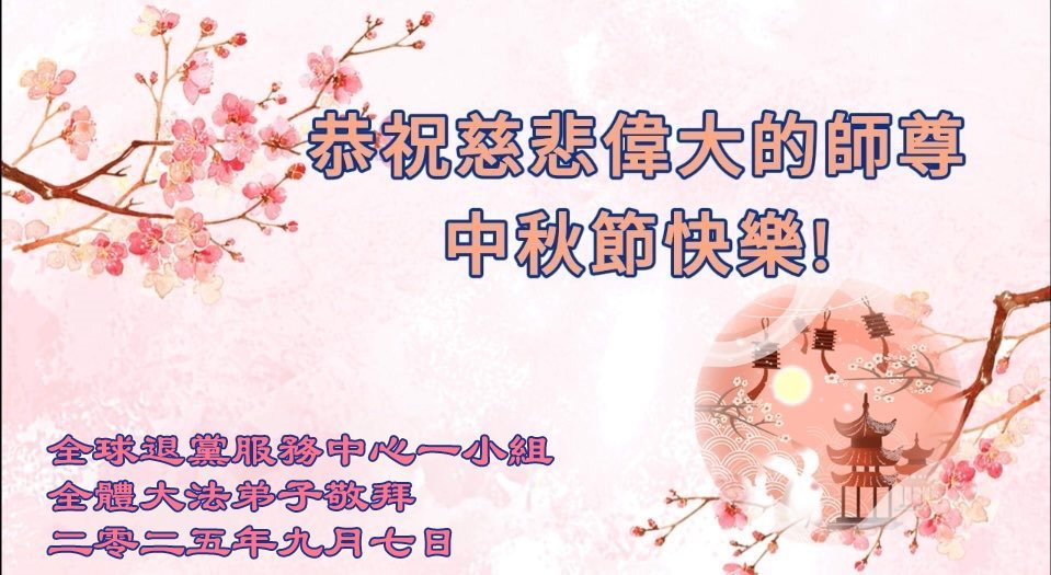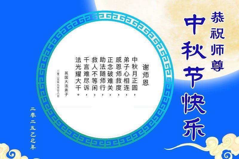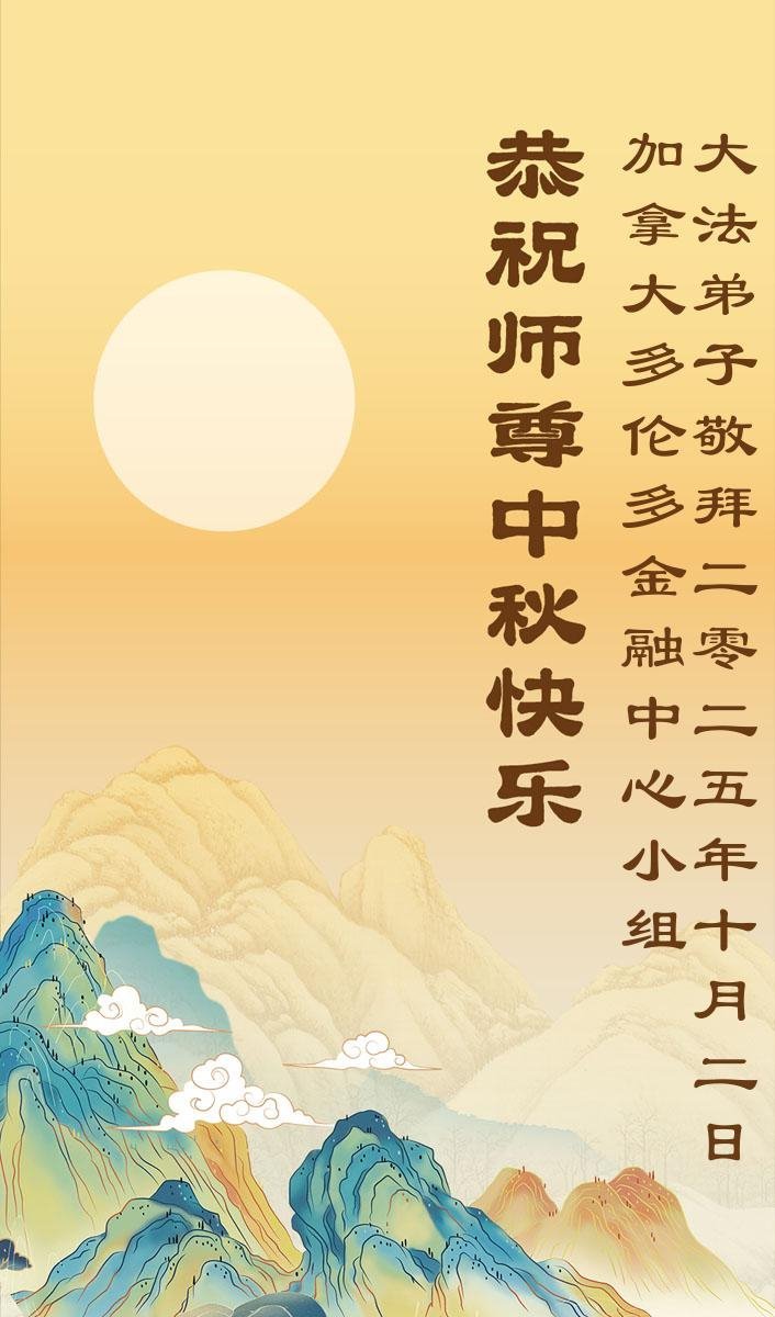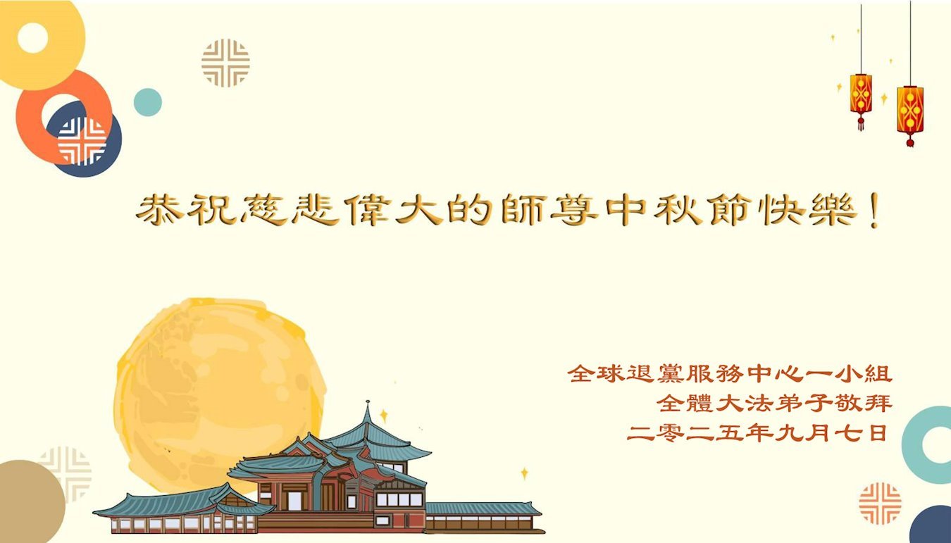 【明慧網二零二五年十月六日】在這闔家團圓的中秋佳節,億萬大法弟子感恩師尊救度!大法弟子們時時感受到師尊的守護和指引,堅定的走在大法修煉之路上,不負師尊的囑託,不負眾生的期盼,走向美好的家園。