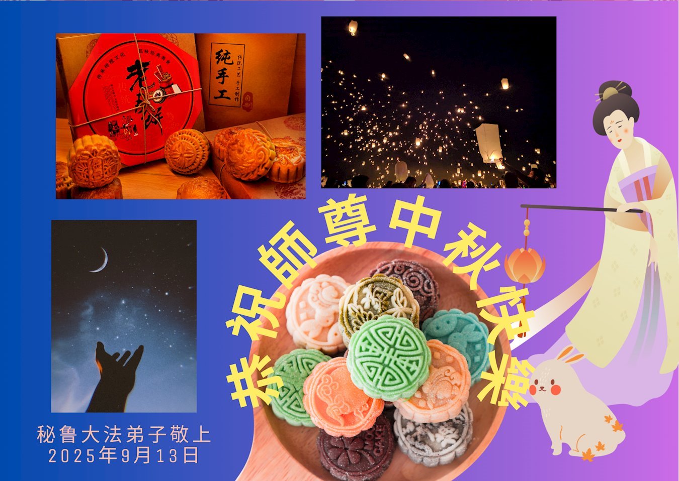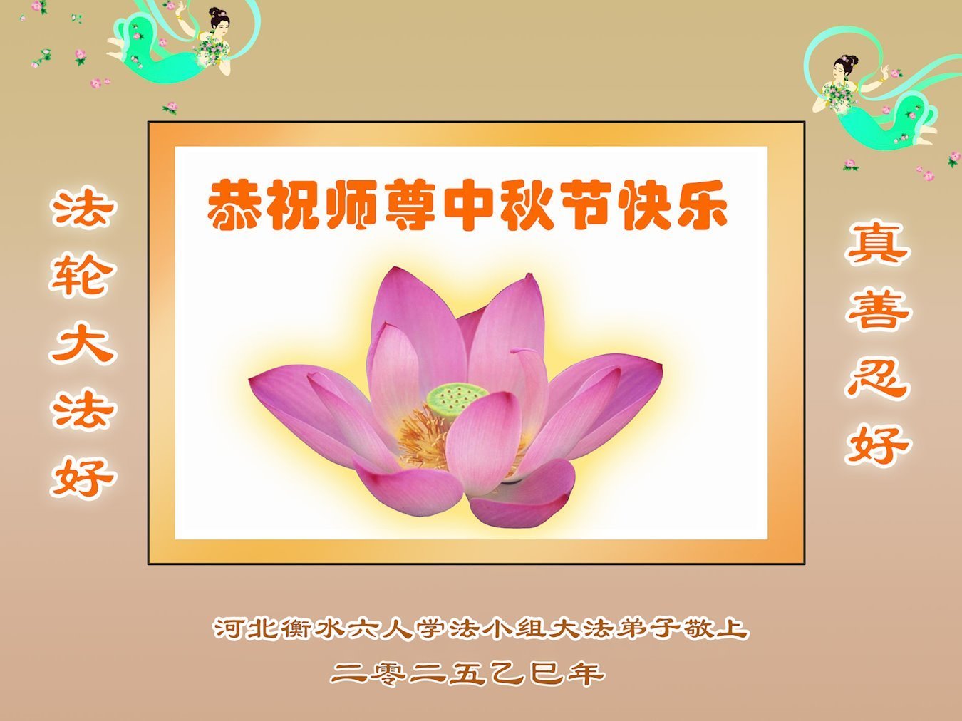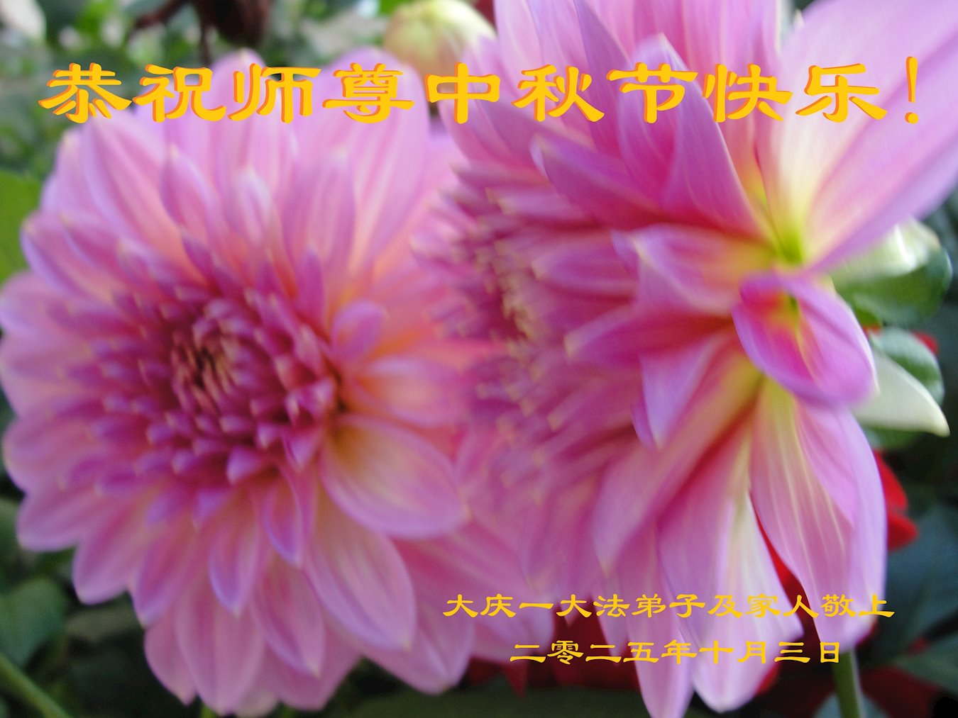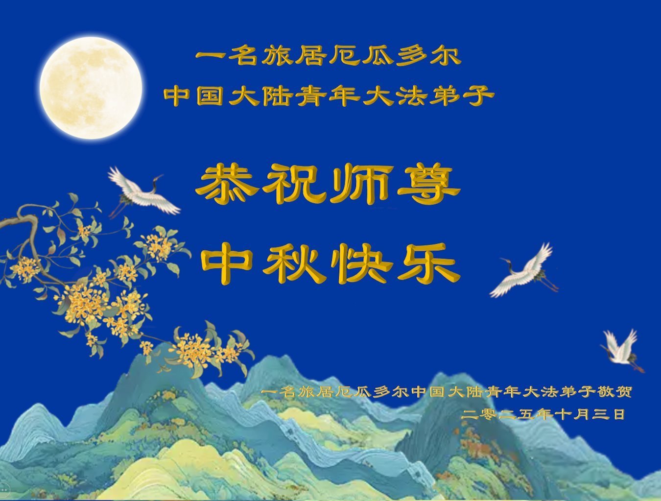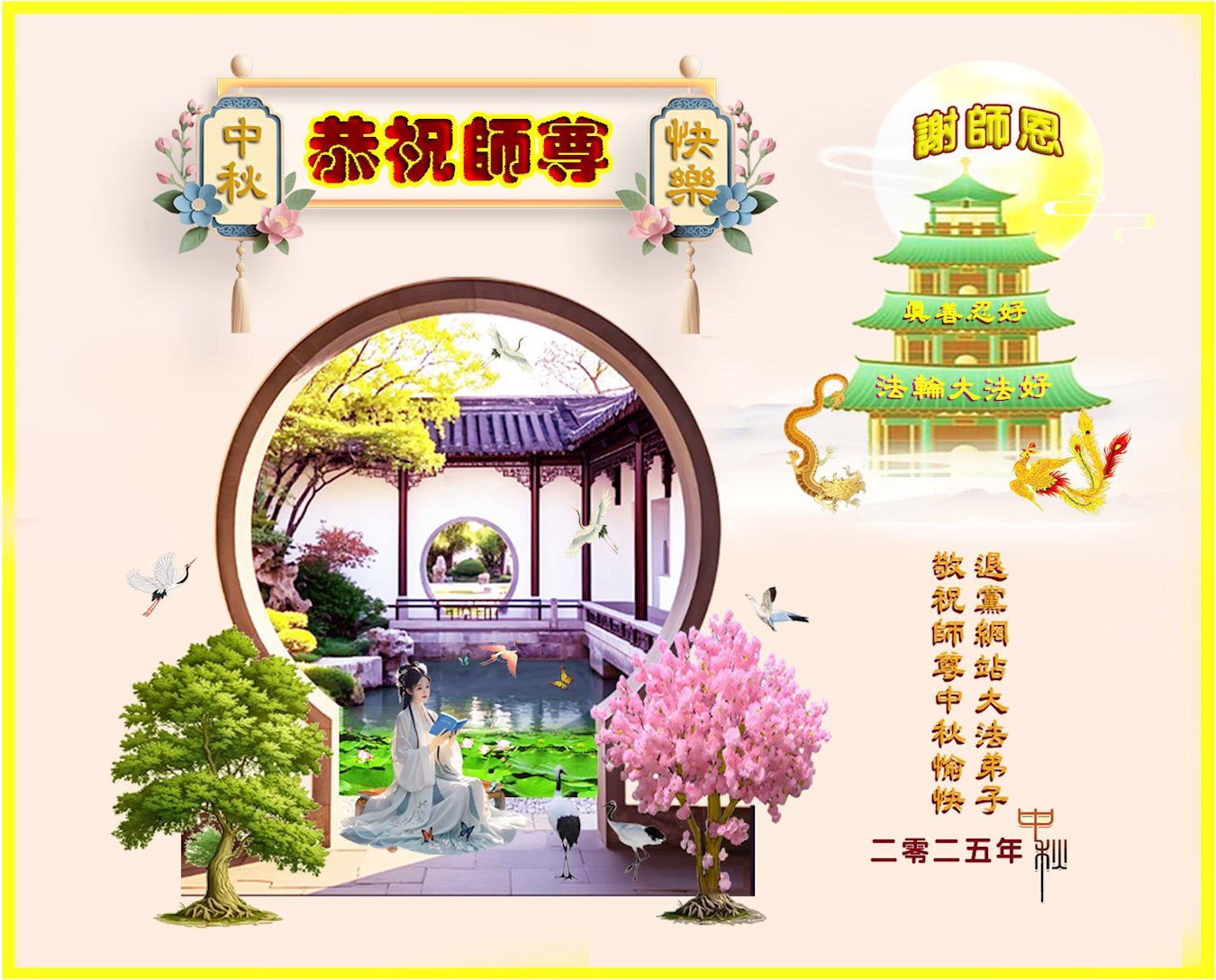 【明慧網二零二五年十月六日】在這闔家團圓的中秋佳節,億萬大法弟子感恩師尊救度!大法弟子們時時感受到師尊的守護和指引,堅定的走在大法修煉之路上,不負師尊的囑託,不負眾生的期盼,走向美好的家園。