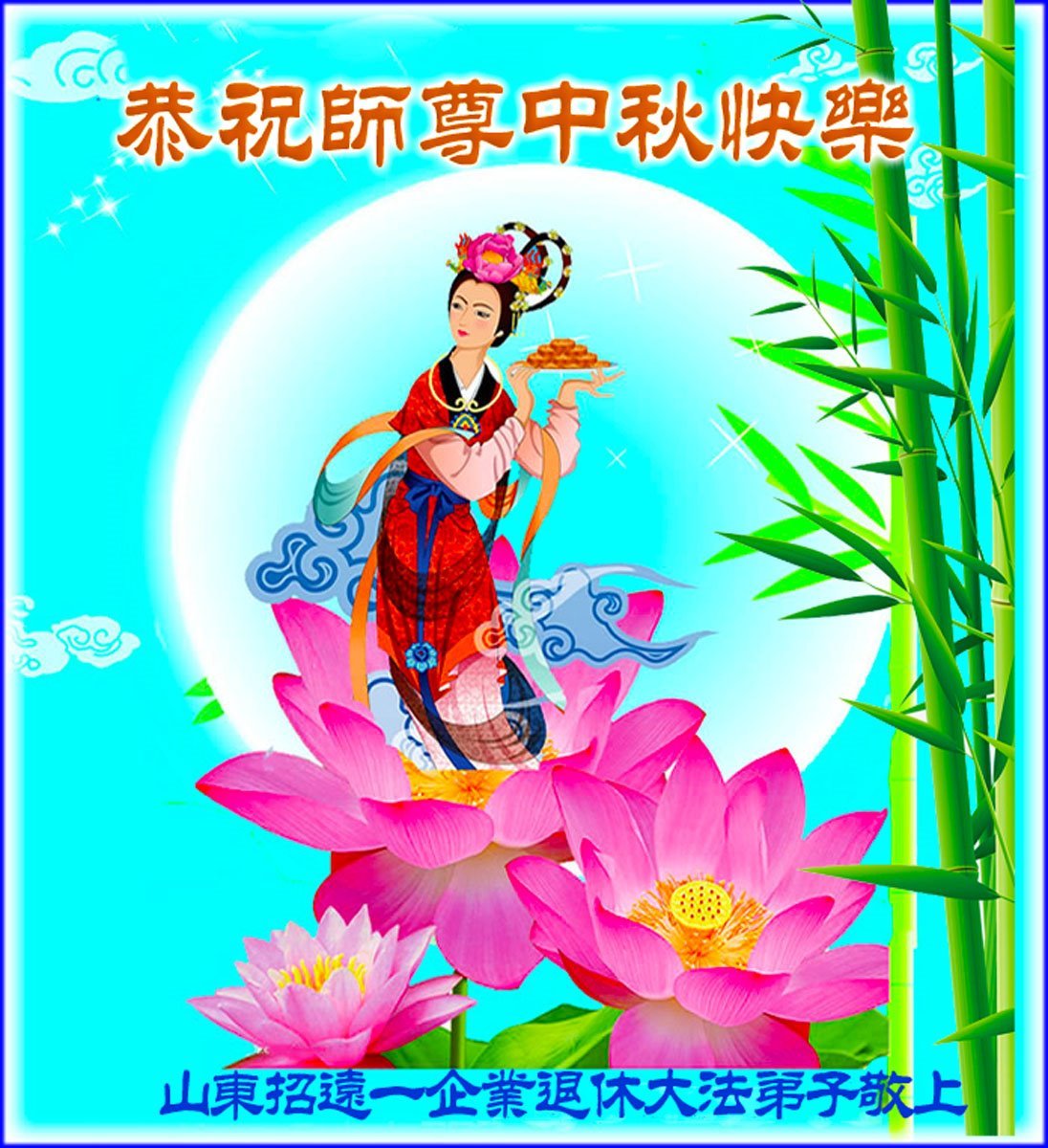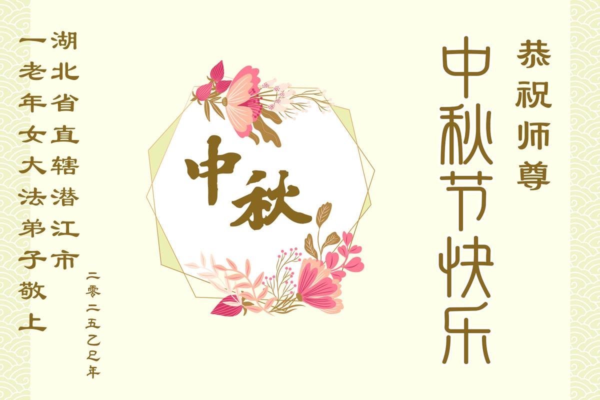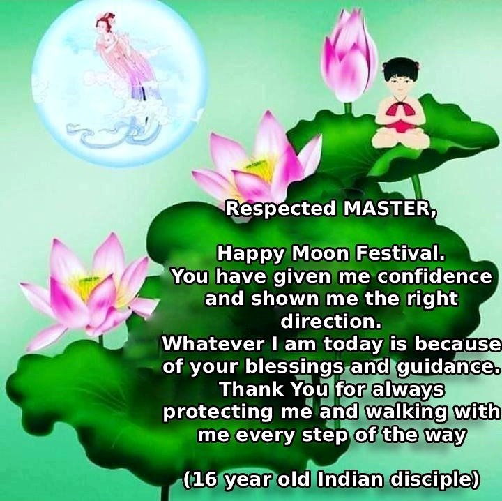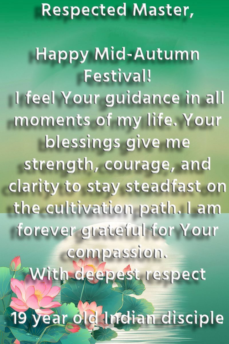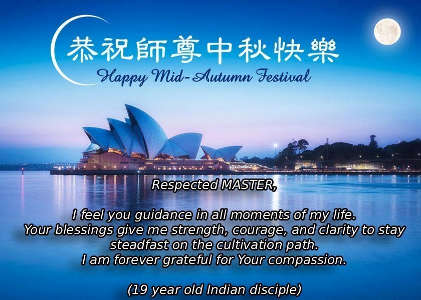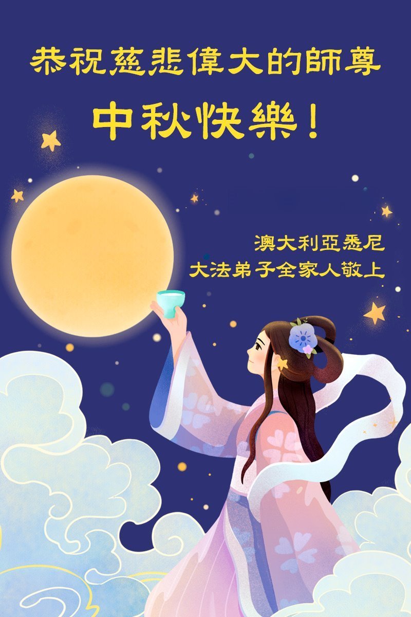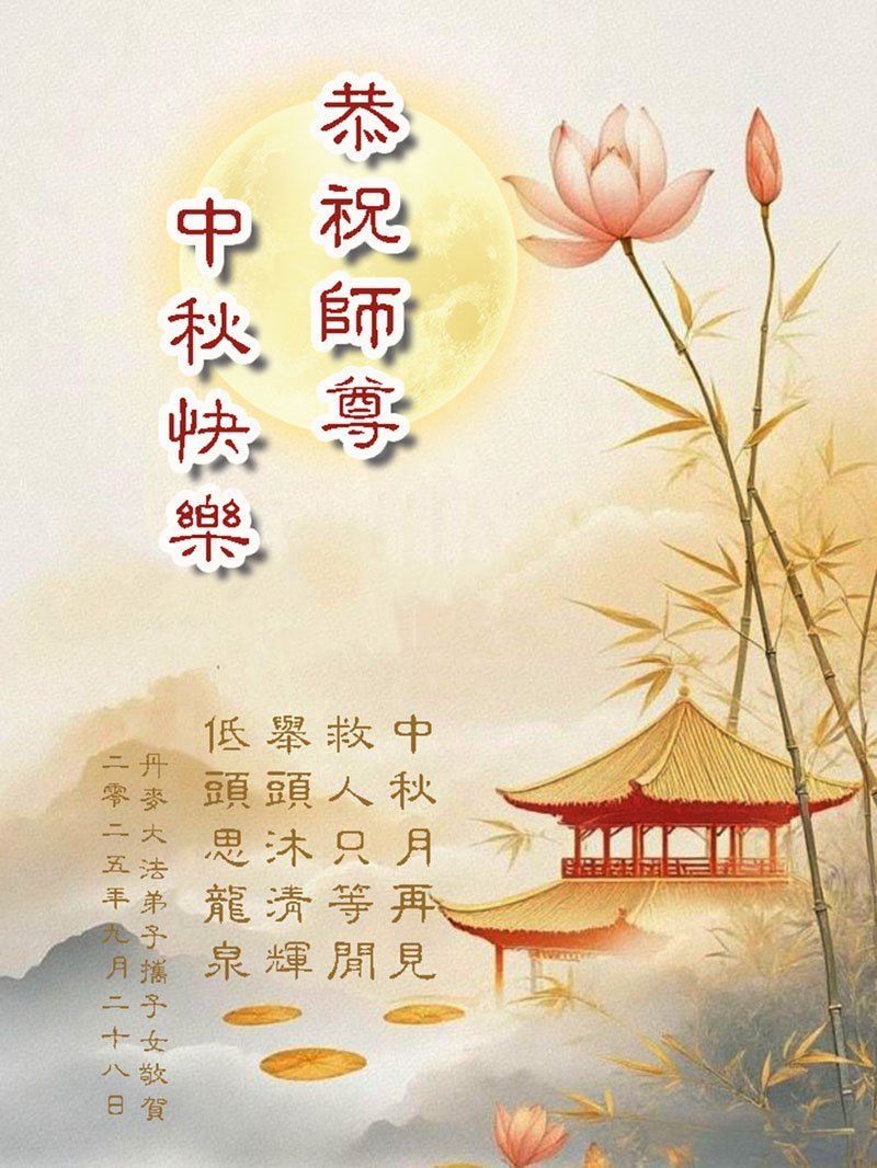 Dear and benevolent Master, I congratulate you on this Mid-Autumn Festival and wish that all Dafa disciples, including myself, remain true to our vows in our cultivation and in saving sentient beings, so that together with you, we may return to our true home。