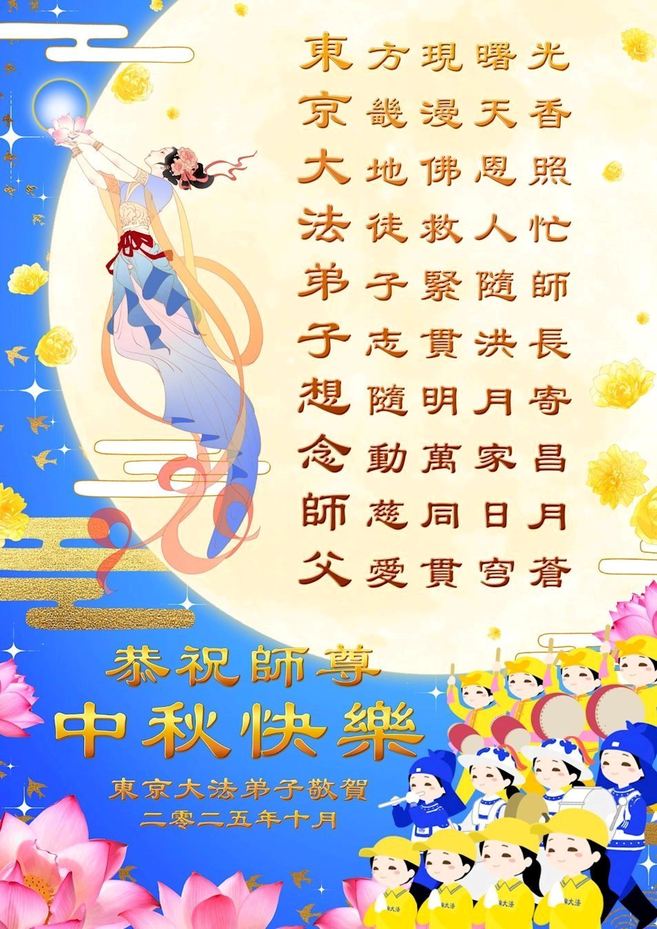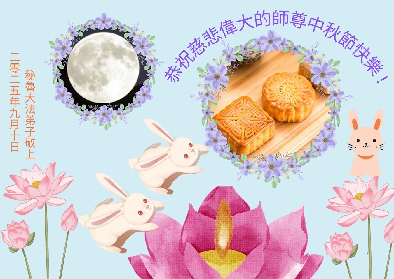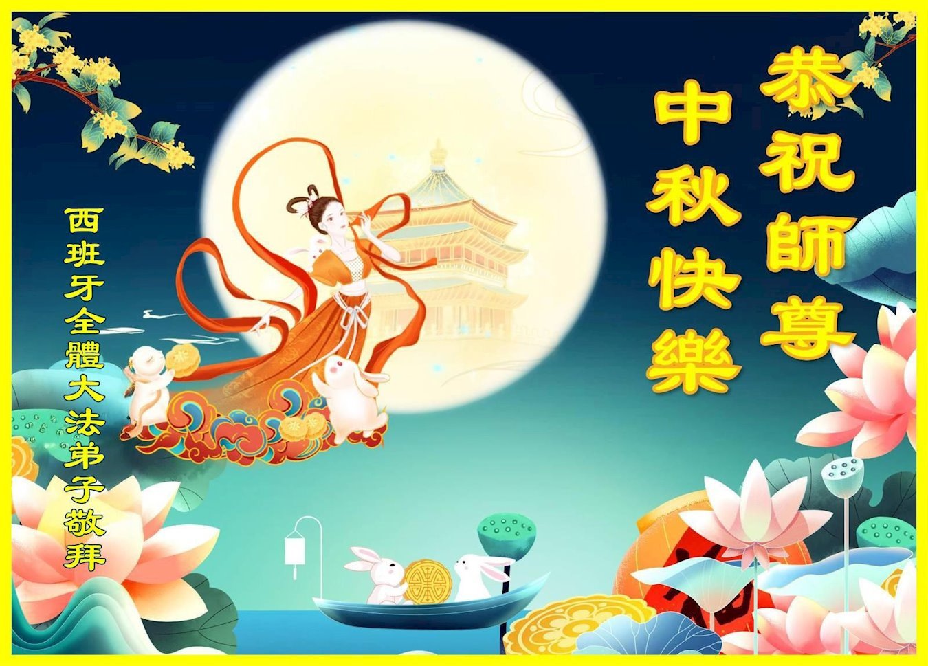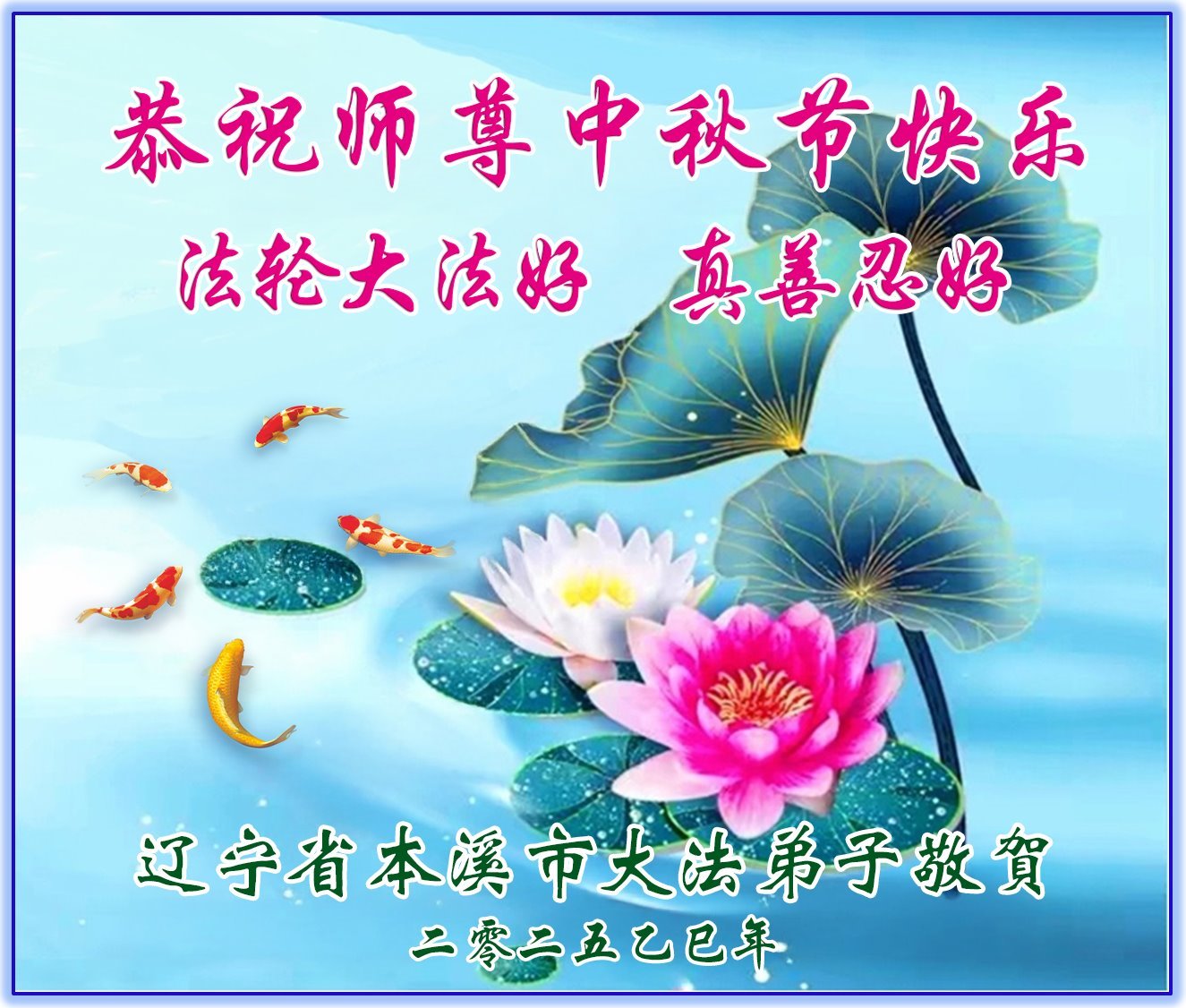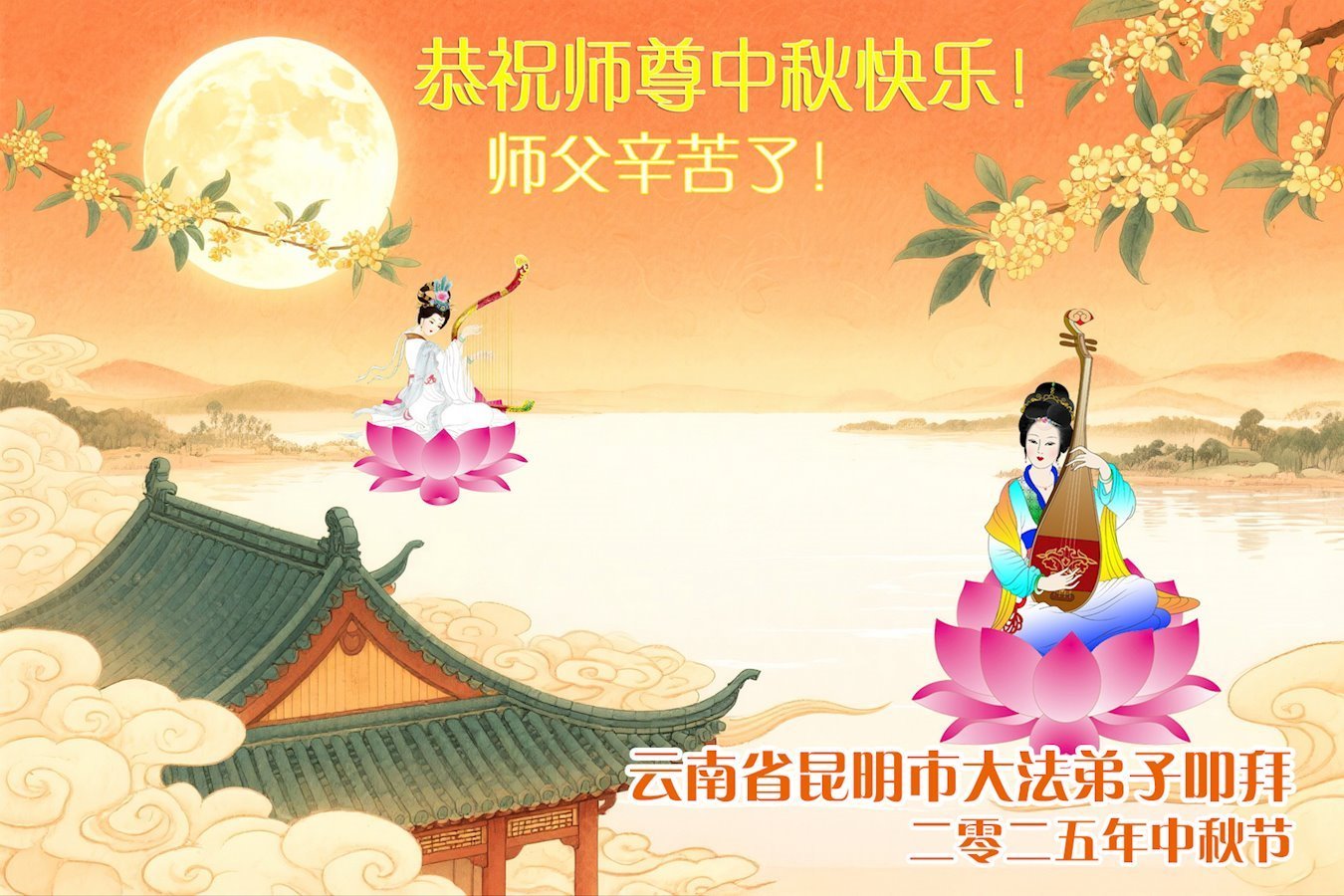 Dear and benevolent Master, I congratulate you on this Mid-Autumn Festival and wish that all Dafa disciples, including myself, remain true to our vows in our cultivation and in saving sentient beings, so that together with you, we may return to our true home。