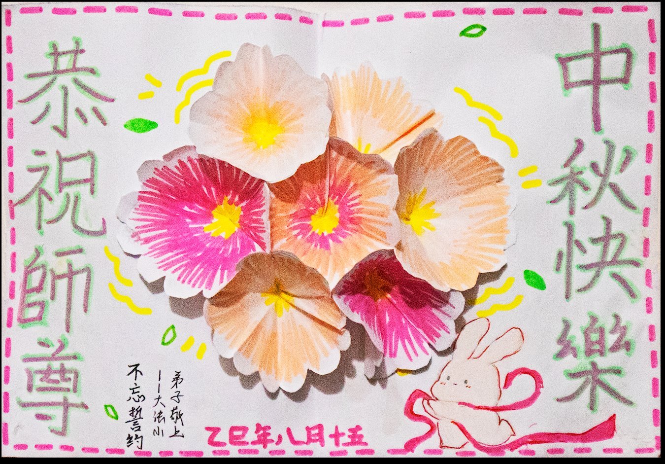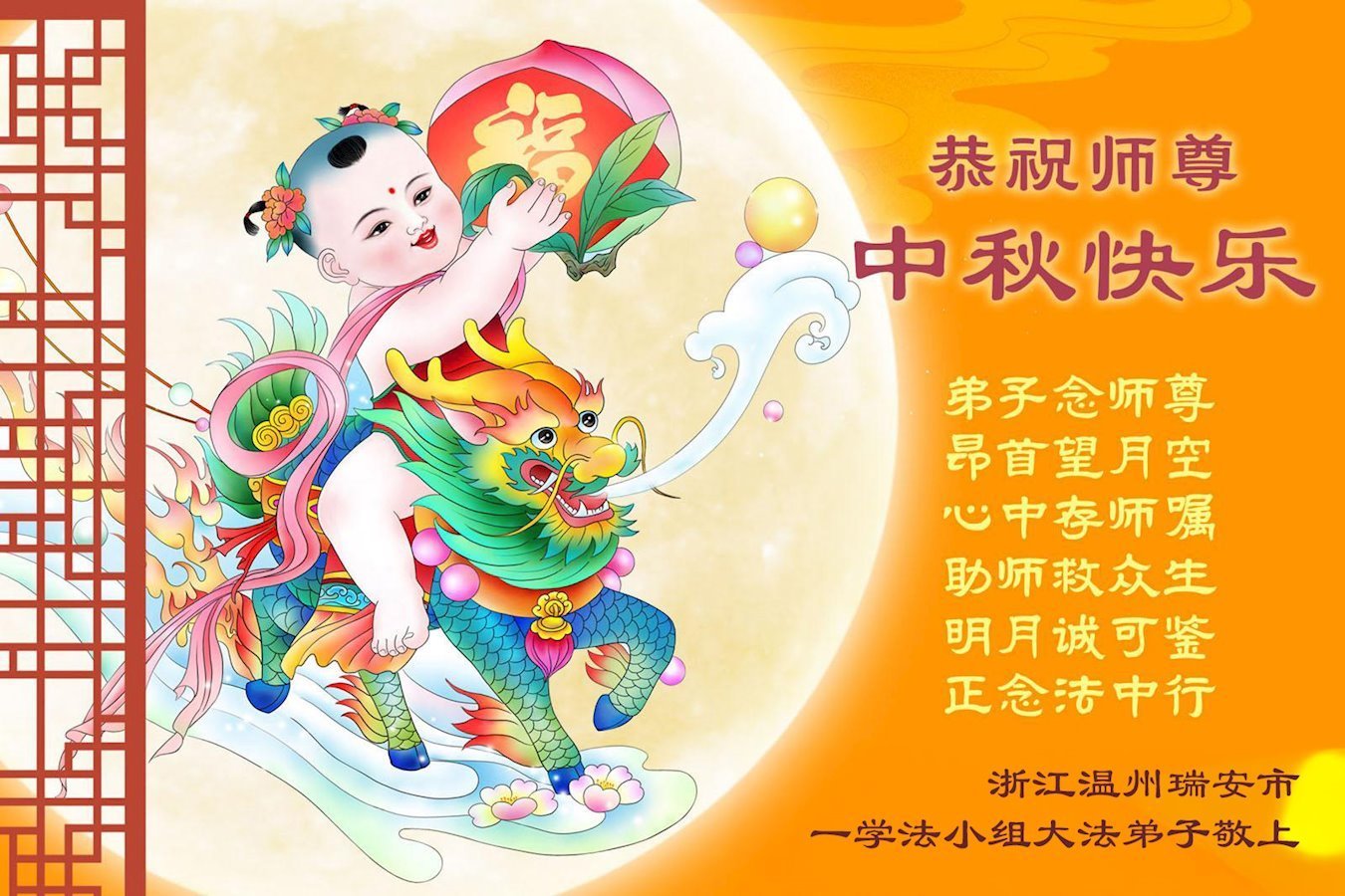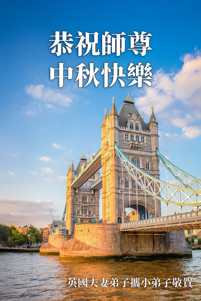 (譯文)懷著最深切的敬意和感恩,祝師父中秋節快樂!