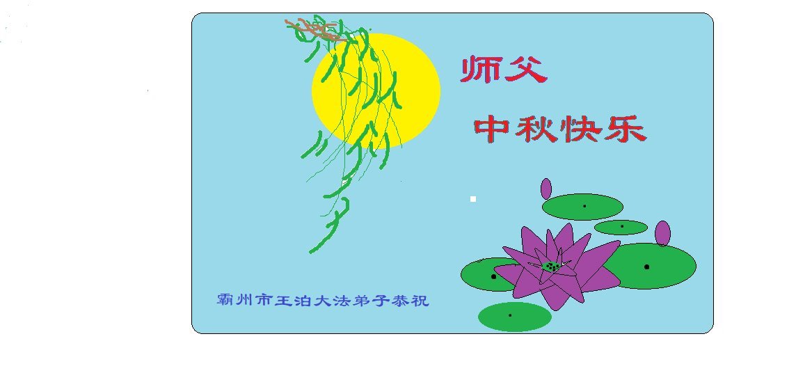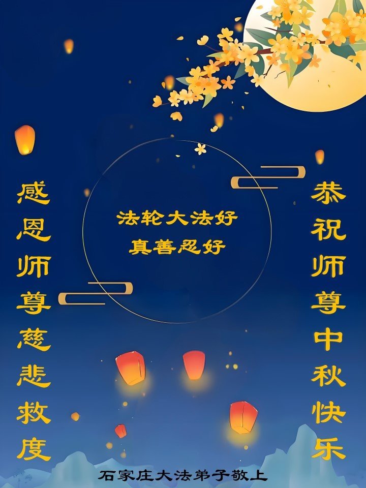 恭祝師尊中秋節快樂!法輪大法好,真善忍好!弟子要牢記師父教誨。大法弟子無論走到哪裏就把真相傳到哪裏!助師救度更多的世人!永遠感恩師父慈悲救度!