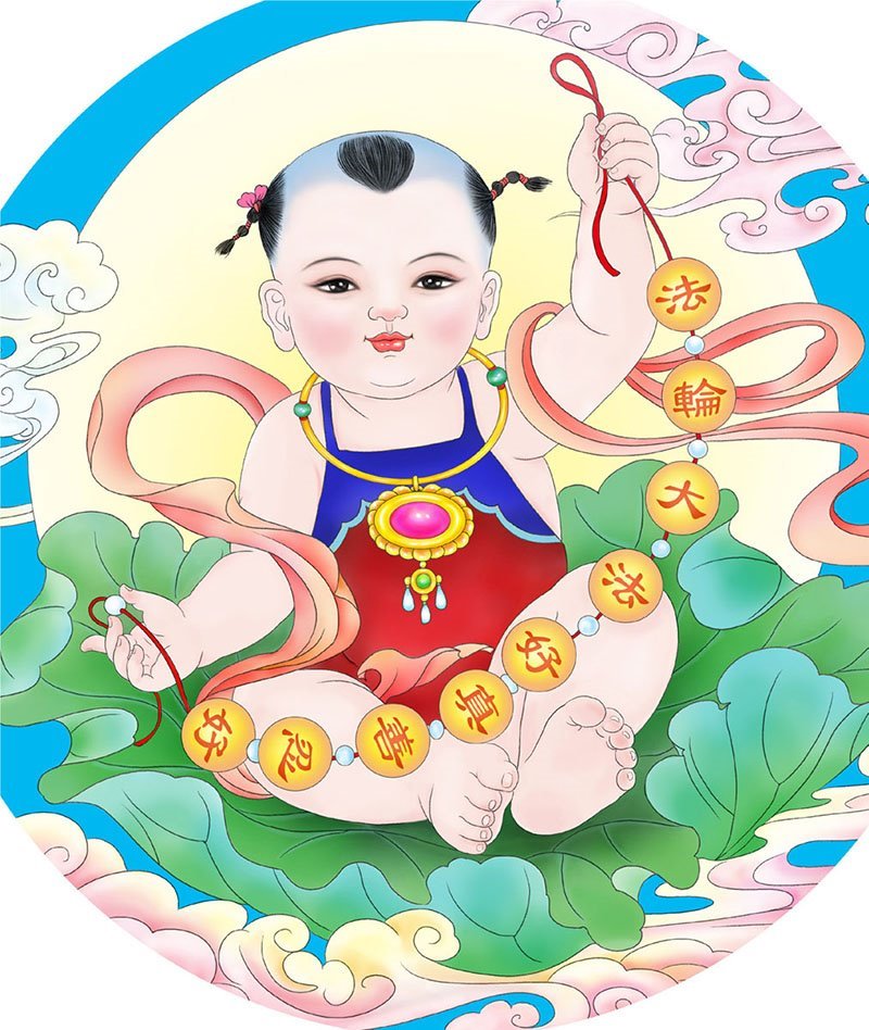 我抱輪的手舉在眼前太痛了,眼淚止不住嘩啦啦地流下來,媽媽說痛是好事,是消業。我就咬牙堅持抱輪。這時我天目看到屋頂上有個巨大的粉色蓮花發著光,上面坐著一個大佛,穿著金光閃閃的衣服,頭髮捲捲的藍藍的。下面還有很多仙女坐屋頂看我們,有彈古琴的,有吹笛子的,有拿著小花籃散花的,她們都很漂亮,動作很優雅,比媽媽手機上看到的古裝照片好看太多了。天空中還有一條金色的小龍在盤旋,這條龍很像我之前夢到的一條龍,夢裏他是我的坐騎,我騎著他到處飛,我還夢見過一個西方小女孩,她穿著天使的衣服,還長著翅膀坐在雲上。這次我又看到她出現了,坐在雲朵上搖著腿看著我呢。很漂亮,很漂亮的景象,太奇妙啦,也很快樂。我煉完功感覺身體輕飄飄的很舒服,身體也不痛了。