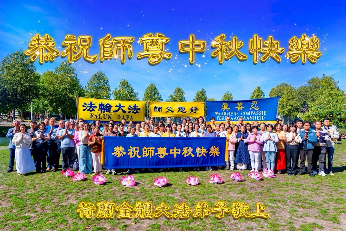 立陶宛全體大法弟子恭祝慈悲偉大的師尊中秋節快樂!
