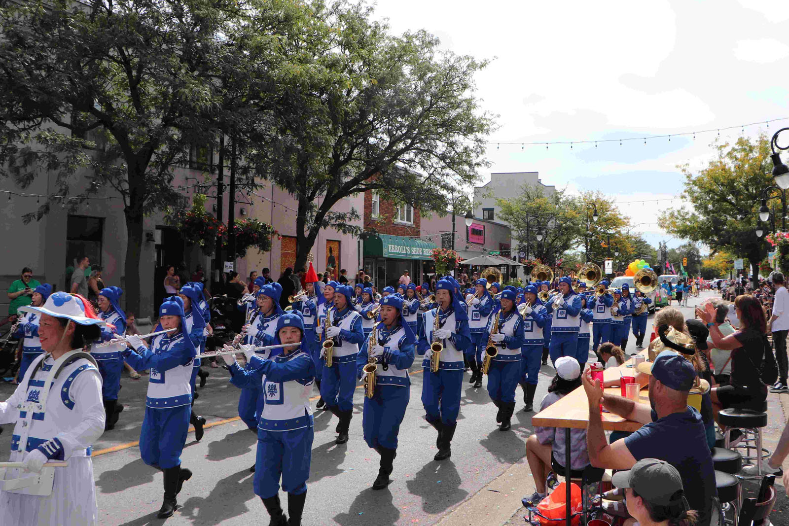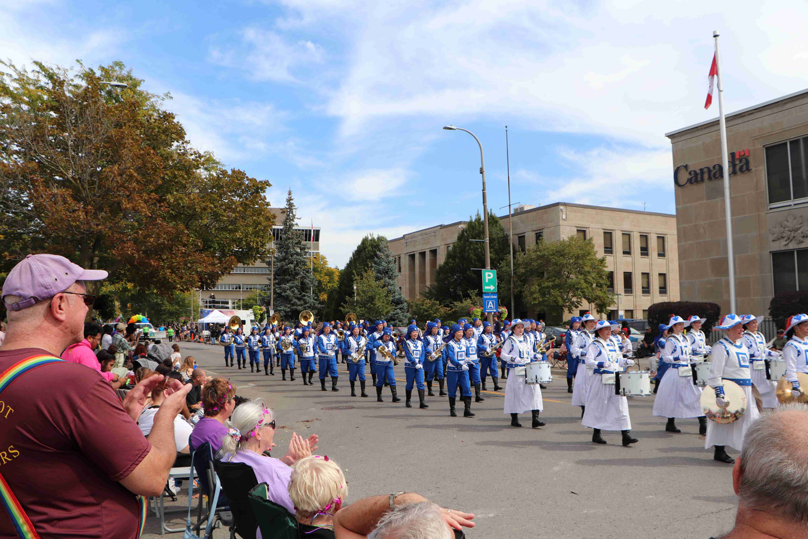 由法輪功學員組成的天國樂團和腰鼓隊再次受邀參加遊行,作為遊行隊伍中為數不多的華人團體,他們的出現格外引人注目,不僅贏得觀眾熱烈掌聲,更在觀眾自發組織的評分中獲得滿分好評。