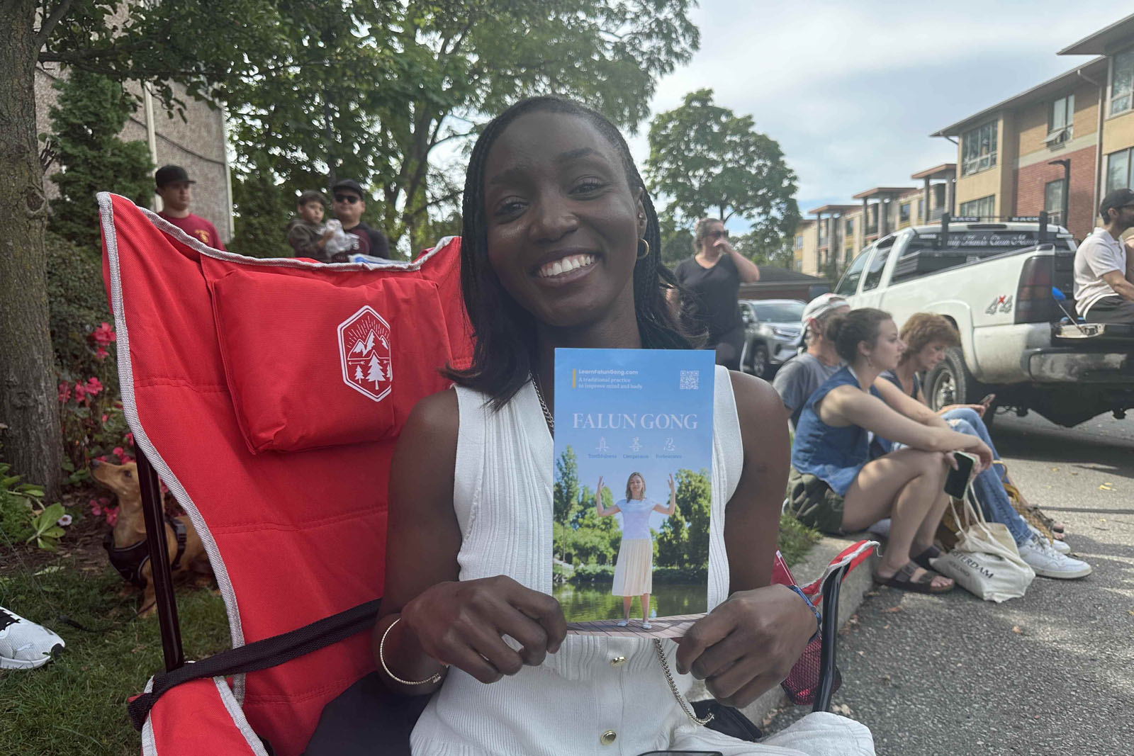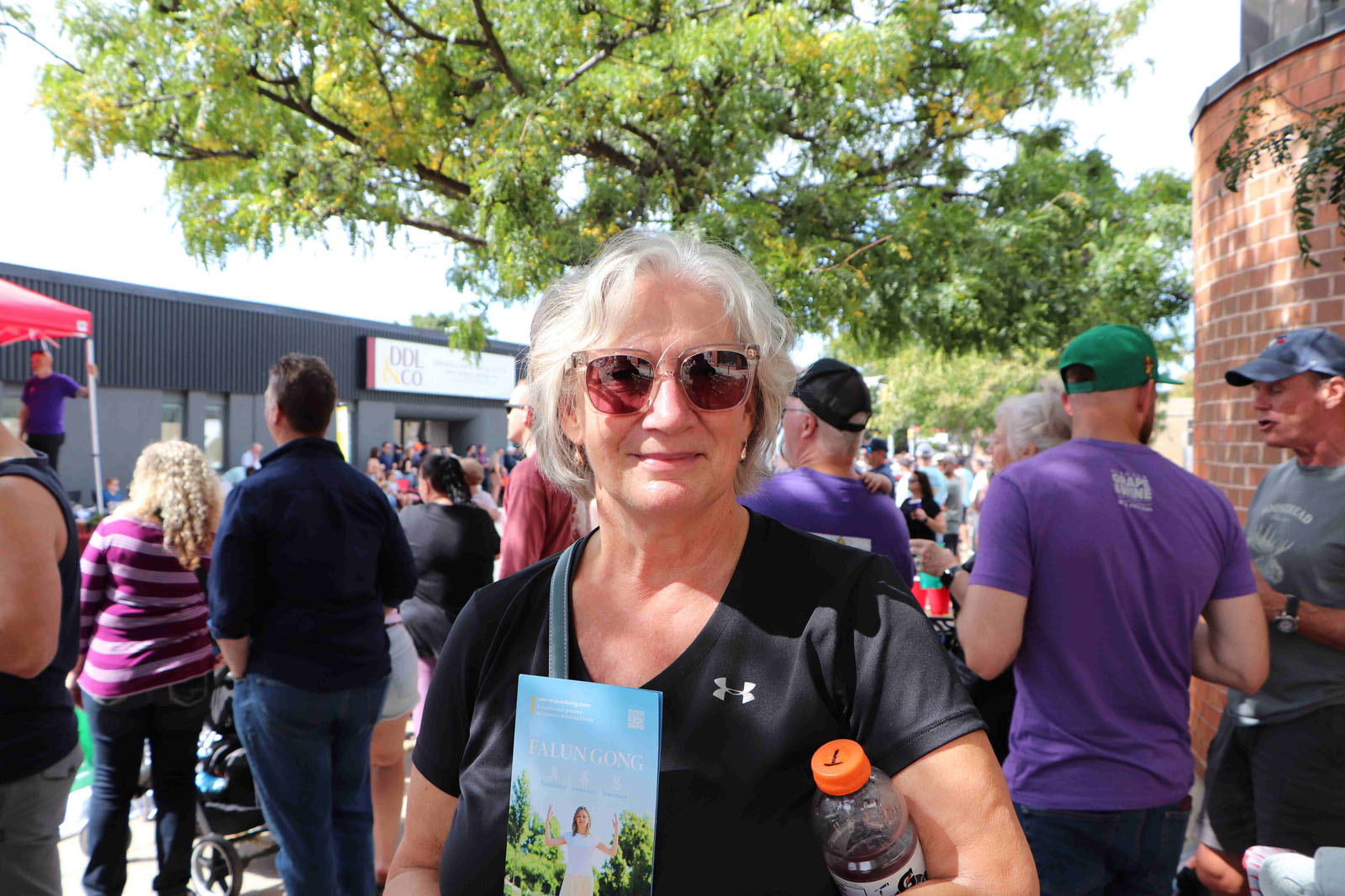 特裏什(Trish)表示自己是第一次看到法輪功團隊,她說:「我非常喜歡他們的演奏,也跟著他們的音樂在鼓掌,太棒了!」她還表示:「我覺得(法輪大法)不僅能有利於身體健康更能改善心理健康,他們遵循的真、善、忍更能對世界的展現有益處。」