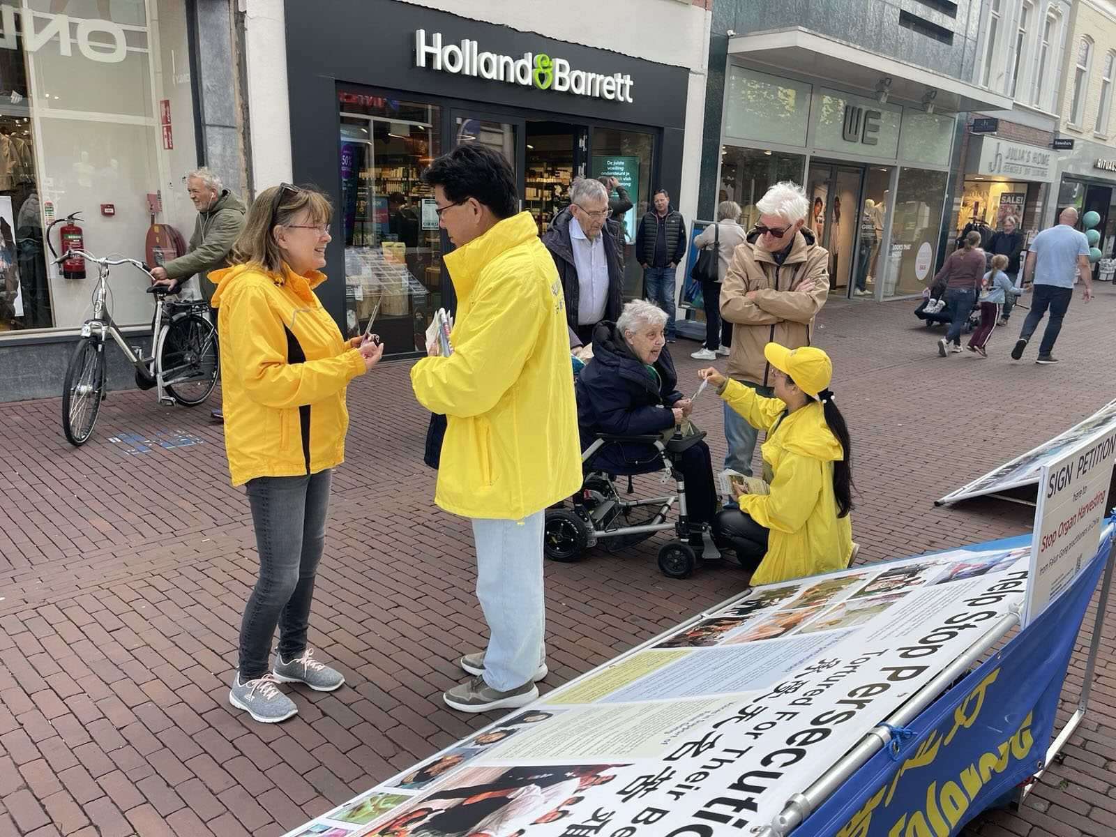 在遊行隊伍準備出發時,法蒂瑪(Fatima)正好路過,在與學員的交流中她了解到了中共迫害法輪功學員的罪行。她表示自己完全反對中共活摘法輪功學員器官,以及跨國鎮壓海外法輪功學員。「加拿大是自由的國度,不可以發生威脅加拿大民眾的事情。」她認為中共威脅神韻藝術團的演出,是因為演出中揭露了中共迫害法輪功學員的真相。她還表示自己要在請願書上簽字,呼籲加拿大政府制止中共的跨國鎮壓行徑。