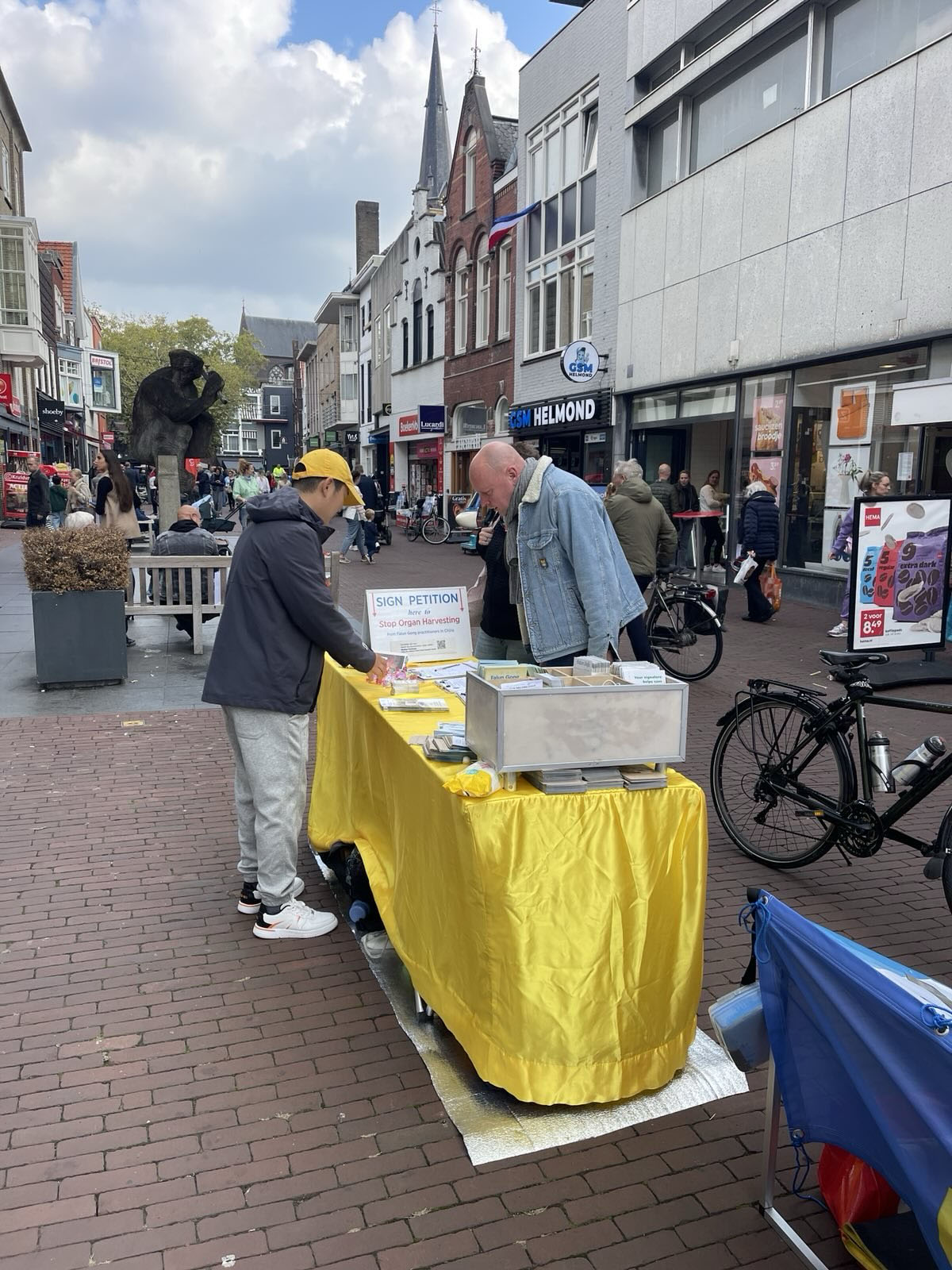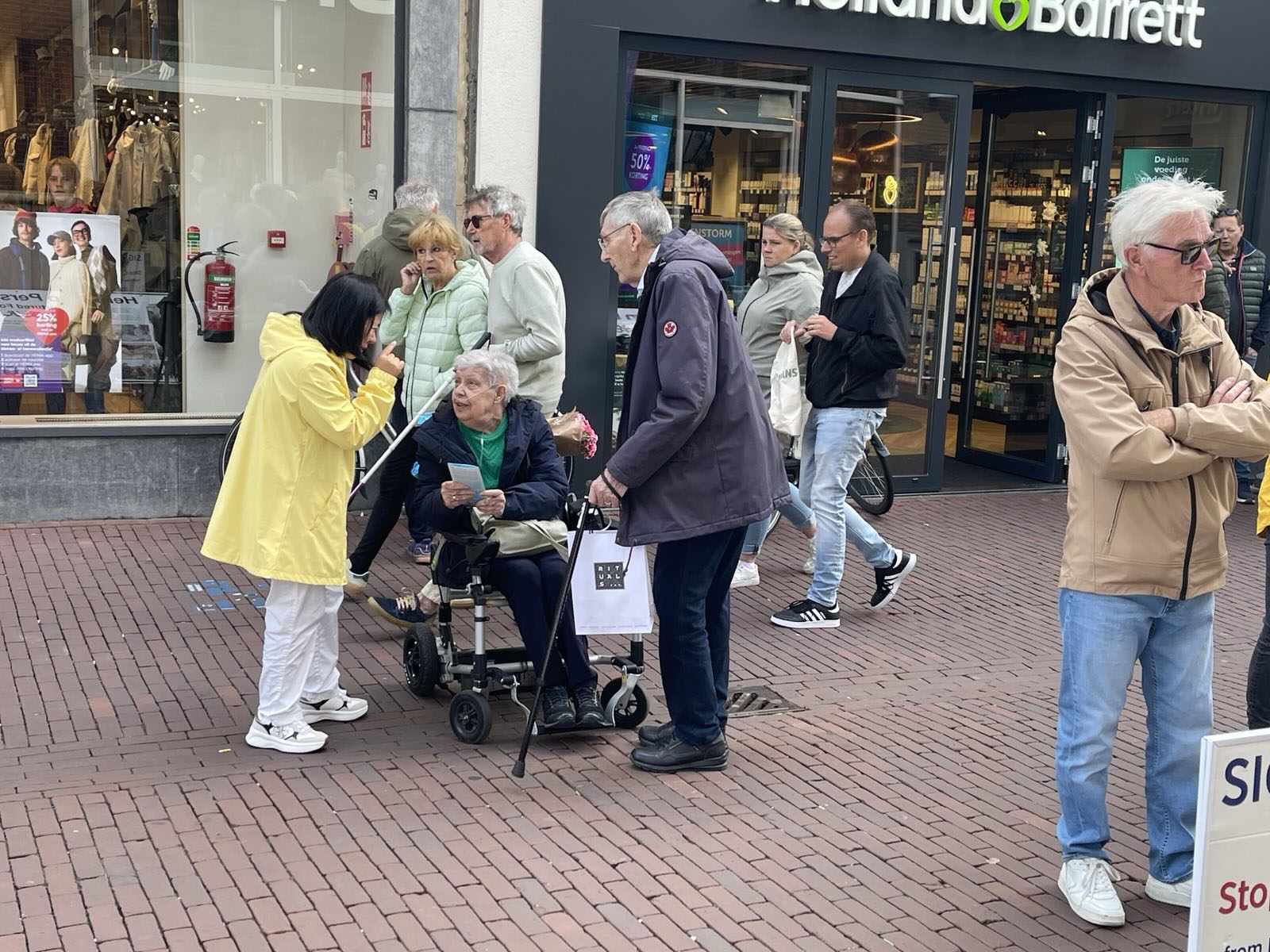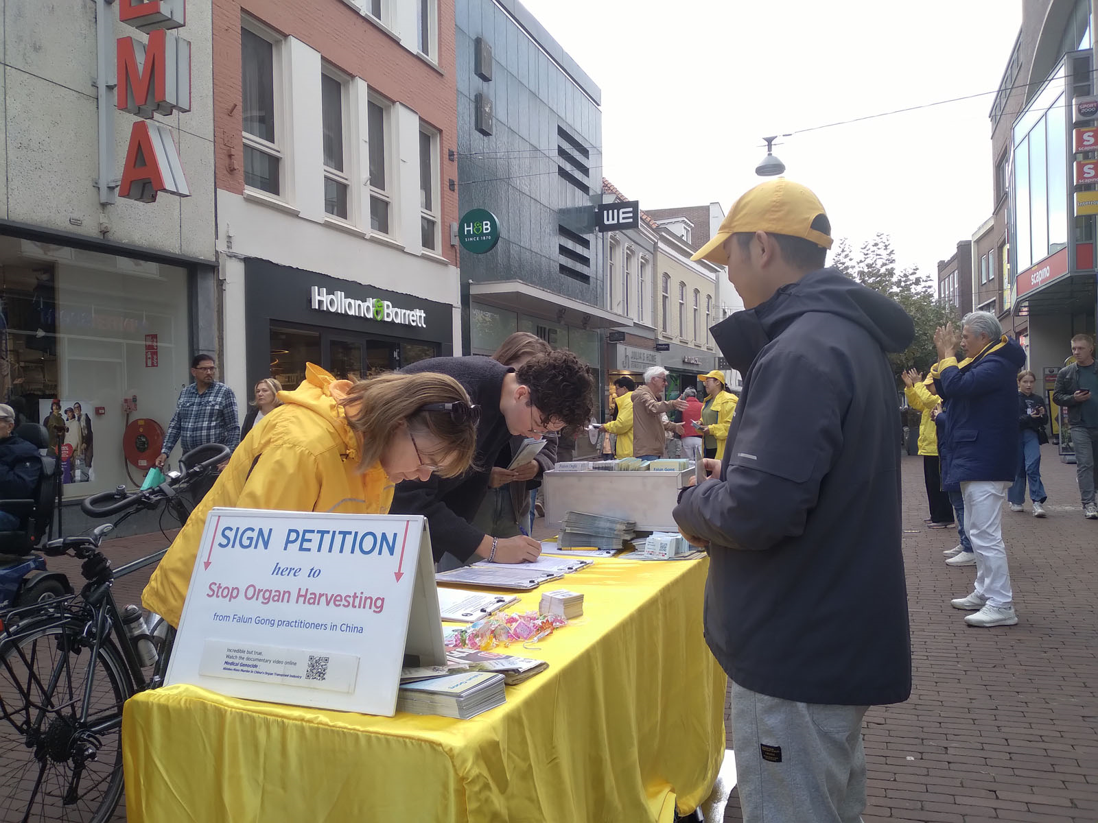 在兩天的擺街會活動中,有不少民眾在「制止中共活摘法輪功學員器官」徵簽表上簽名。還有的在現場學煉法輪功功法。