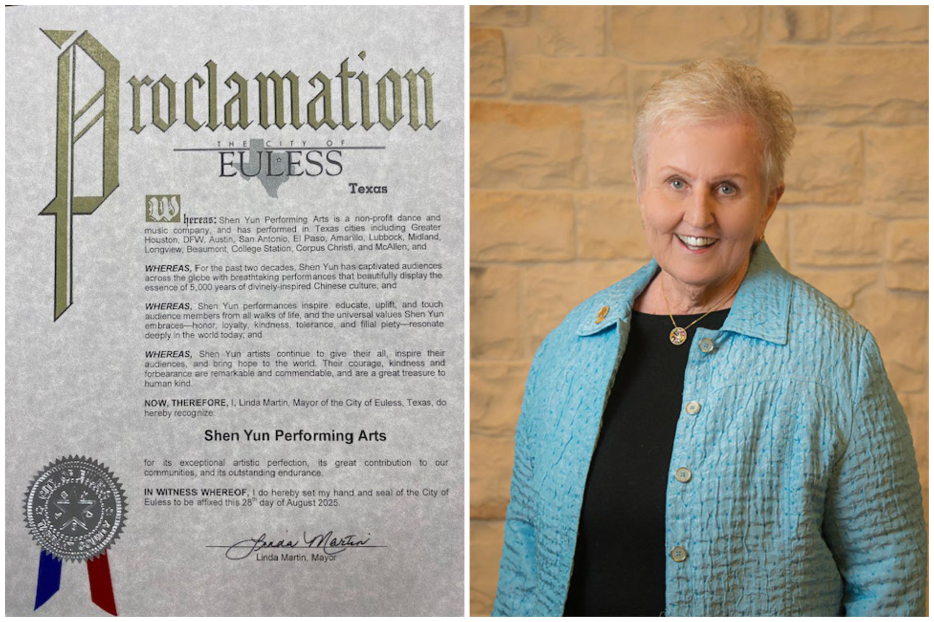 【明慧網二零二五年九月三十日】二零二五年八月二十八日至九月二十二日,美國德克薩斯州棕櫚景市(Palmview)、唐納市(Donna)、蘭卡斯特市(Lancaster)、尤勒斯市(Euless)、西戈維爾市(Seagoville)和吉丁斯市(Giddings)六座城市的市長和市議會為神韻藝術團頒發褒獎,他們稱讚神韻演出富有啟迪、教育人心、令人振奮,用美麗與優雅造福社區和國家。