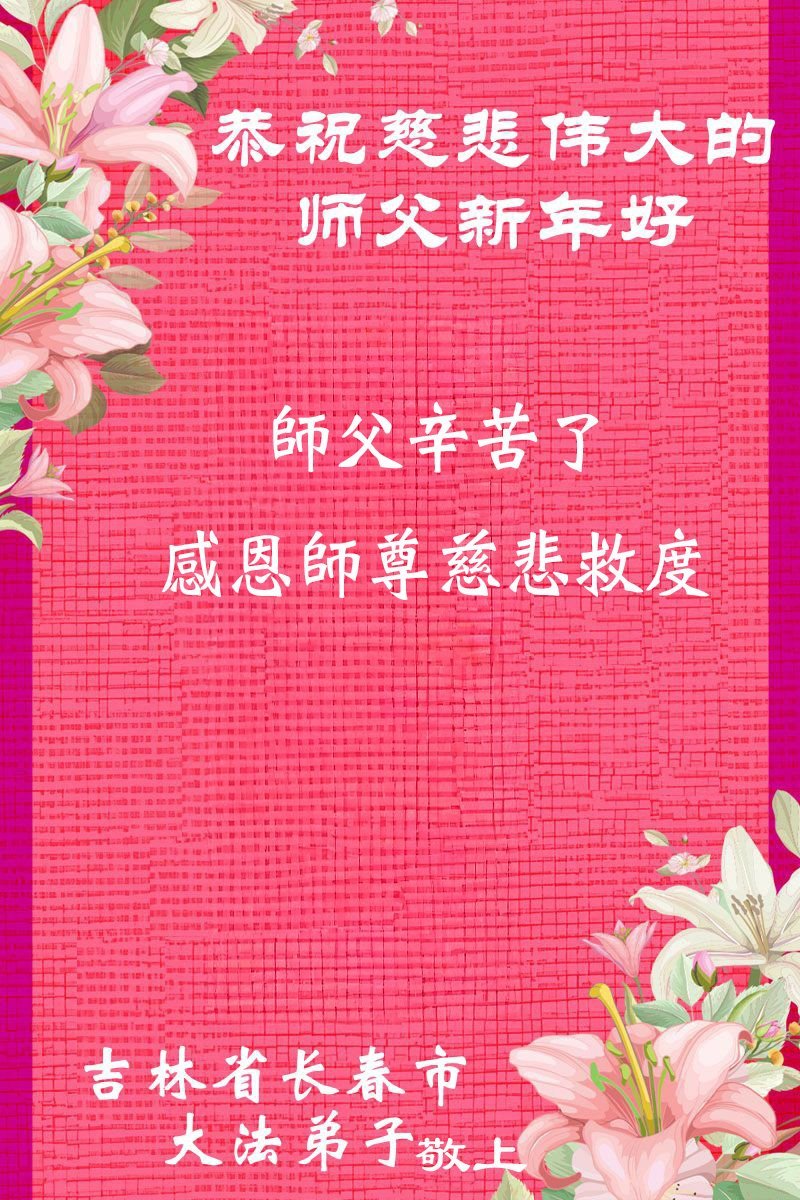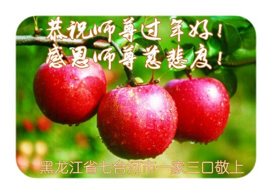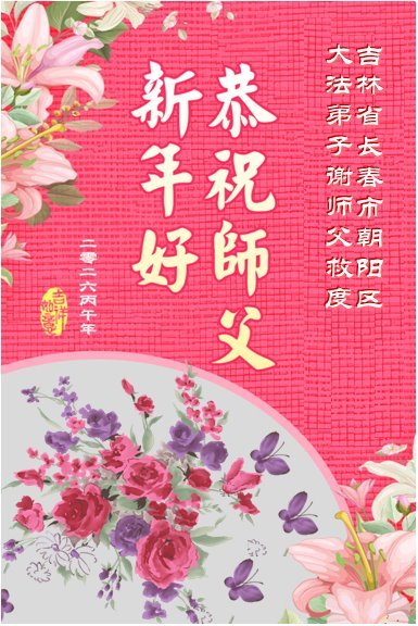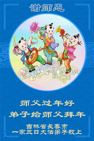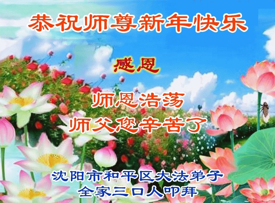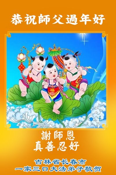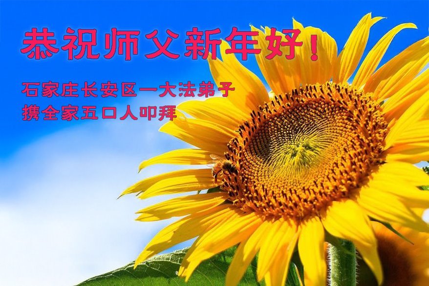 感恩師父多年來對我們全家人的保護!在師父的護佑下,這些年我們全家人都健康、平安、幸福、事事順利!我雖然沒有修煉,但我堅信大法好!天天誠心誦念:「法輪大法好,真善忍好」。新年之際,我代表全家人給師父拜年!師父過年好!師父辛苦了!