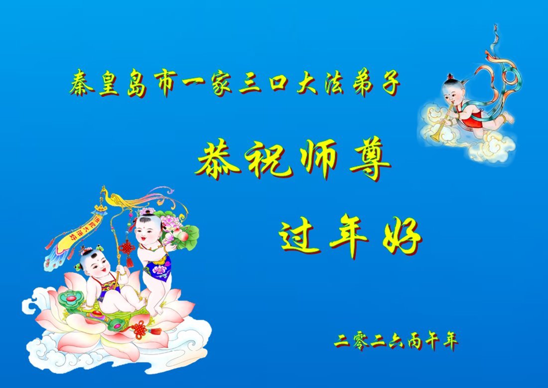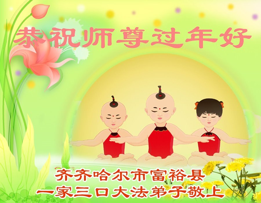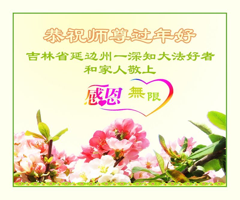 我們作為大法弟子的家屬給您拜年了,恭祝李大師過年好!您為世人的安危操盡了心,吃盡了苦頭,我們大法弟子的家屬是親身受益者,也是見證者,真是用盡千言萬語也表達不了對您的感恩!今生我們能成為大法弟子的家屬感到萬分榮幸,我們只有繼續支持家人修煉,理智、智慧地講真相、多救人,希望更多的家庭像我家一樣得到李大師的護佑,平平安安的度過這不平凡的一年又一年。感謝李大師的護佑!