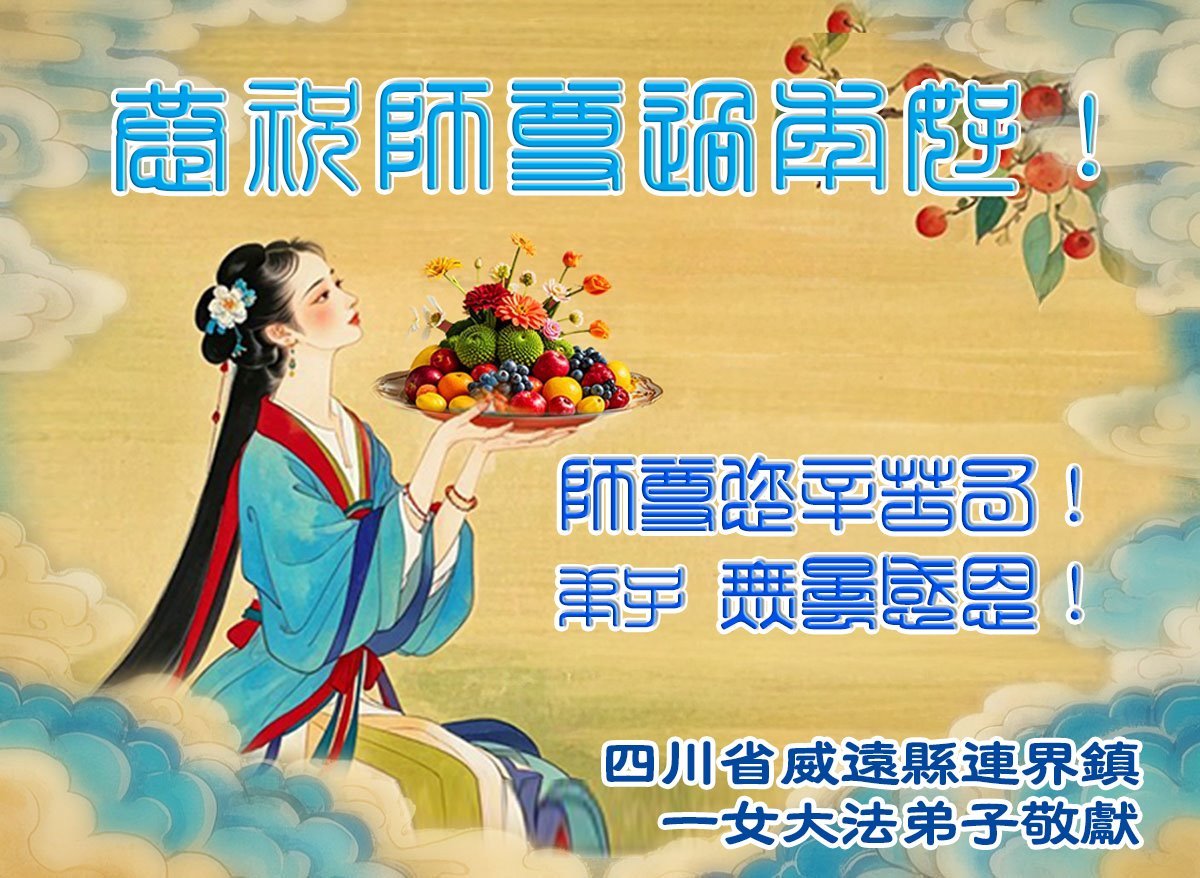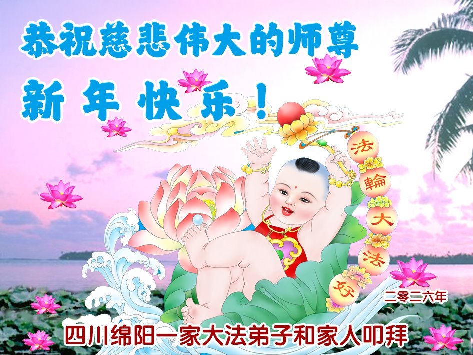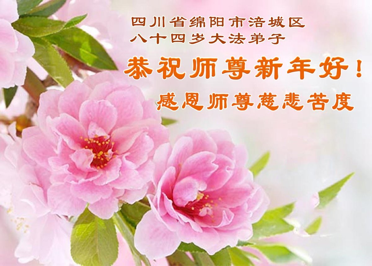 近年我來到綿陽做生意,有幸遇到您的弟子,您的弟子用善心感動著我,用真誠幫助了我,我從心底裏佩服您的弟子的為人。您的弟子教我默念「法輪大法好、真善忍好」,我的生意變的非常好,福報連連。我的身體也健康了,心情也愉快了,家庭和睦了。以前我常常抱怨丈夫這不對、那不對,在您弟子的勸勉下,我也學會了善待家人。再次真誠的感謝李大師!恭祝李大師新年快樂!