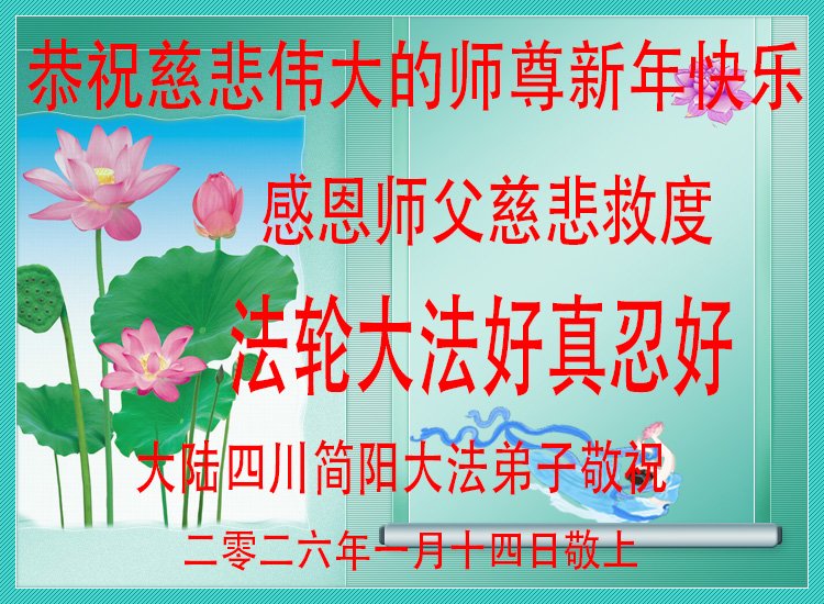 在丙午年中國傳統新年即將來臨之際,沐浴在大法洪恩中的善良百姓,懷著最真摯的心意,向李洪志大師表達他們深深的感恩與祝福。