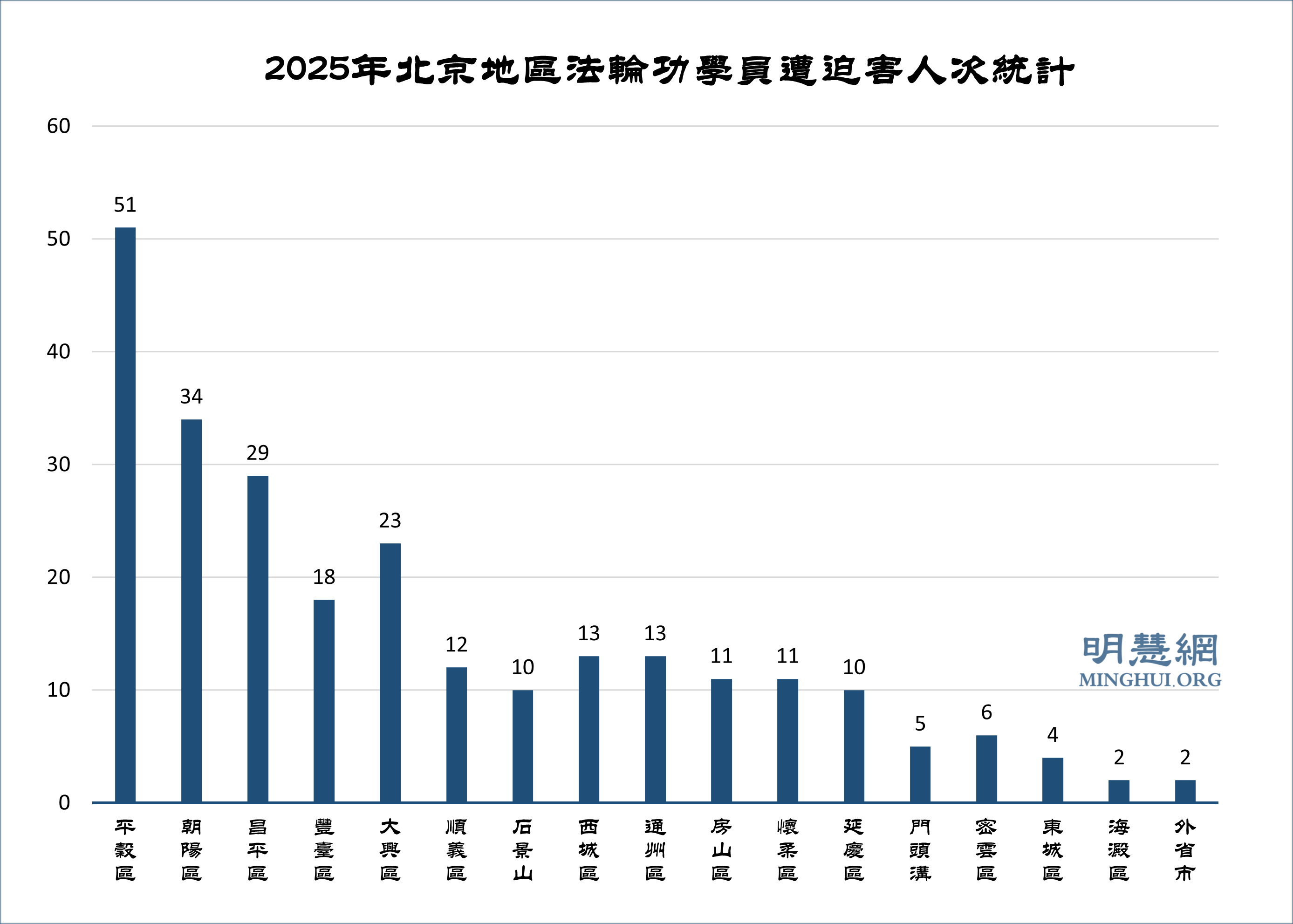 根據明慧網報導統計,二零二五年北京地區被中共迫害的法輪功學員至少254人次。