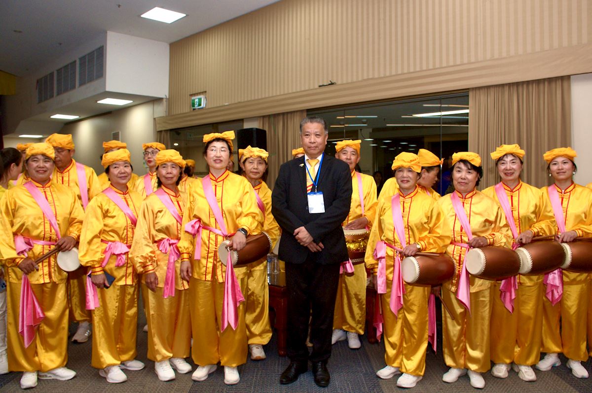 ![]() 圖3:澳洲越南社區協會(VCA)維州分部主席阮維光(Duy Quang Nguyen)先生和腰鼓隊成員合影,感謝學員們的精彩表演,並再次邀請法輪功團體參加其餘慶典。 |