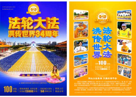 世界法輪大法日海報:法輪大法洪傳世界34週年